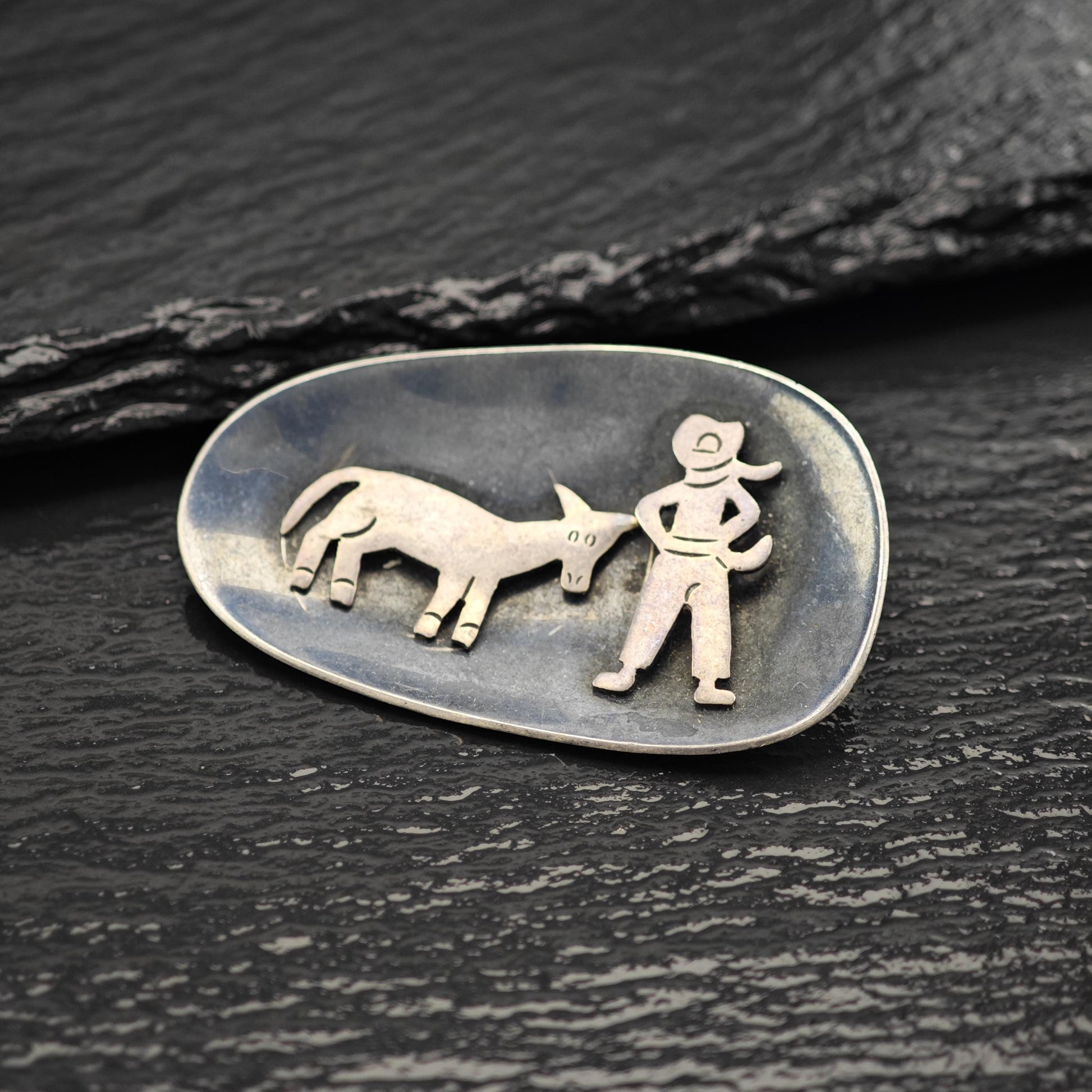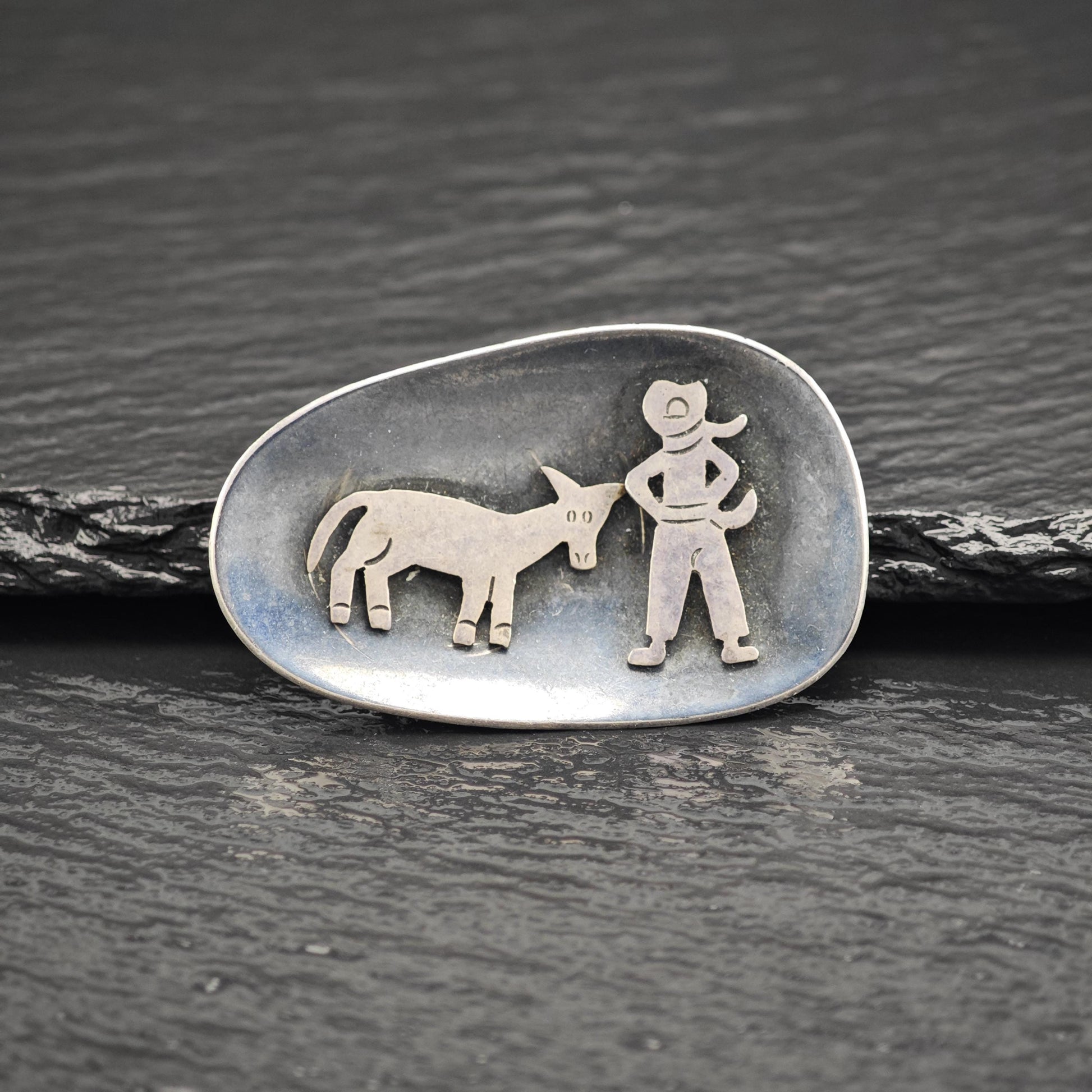 Taxco Cowboy, Donkey Sterling Silver Brooch