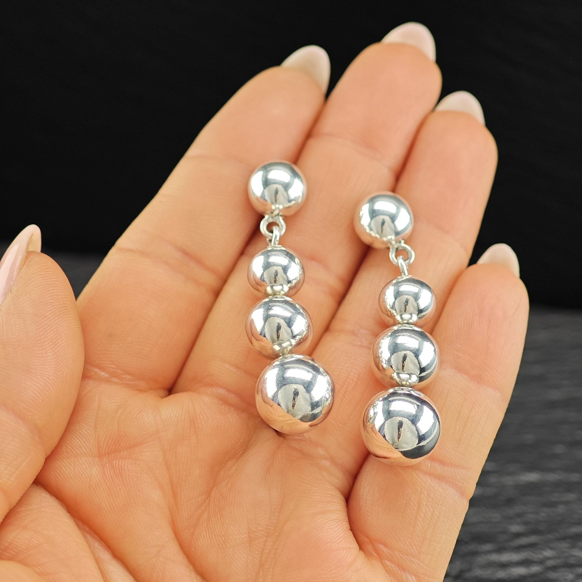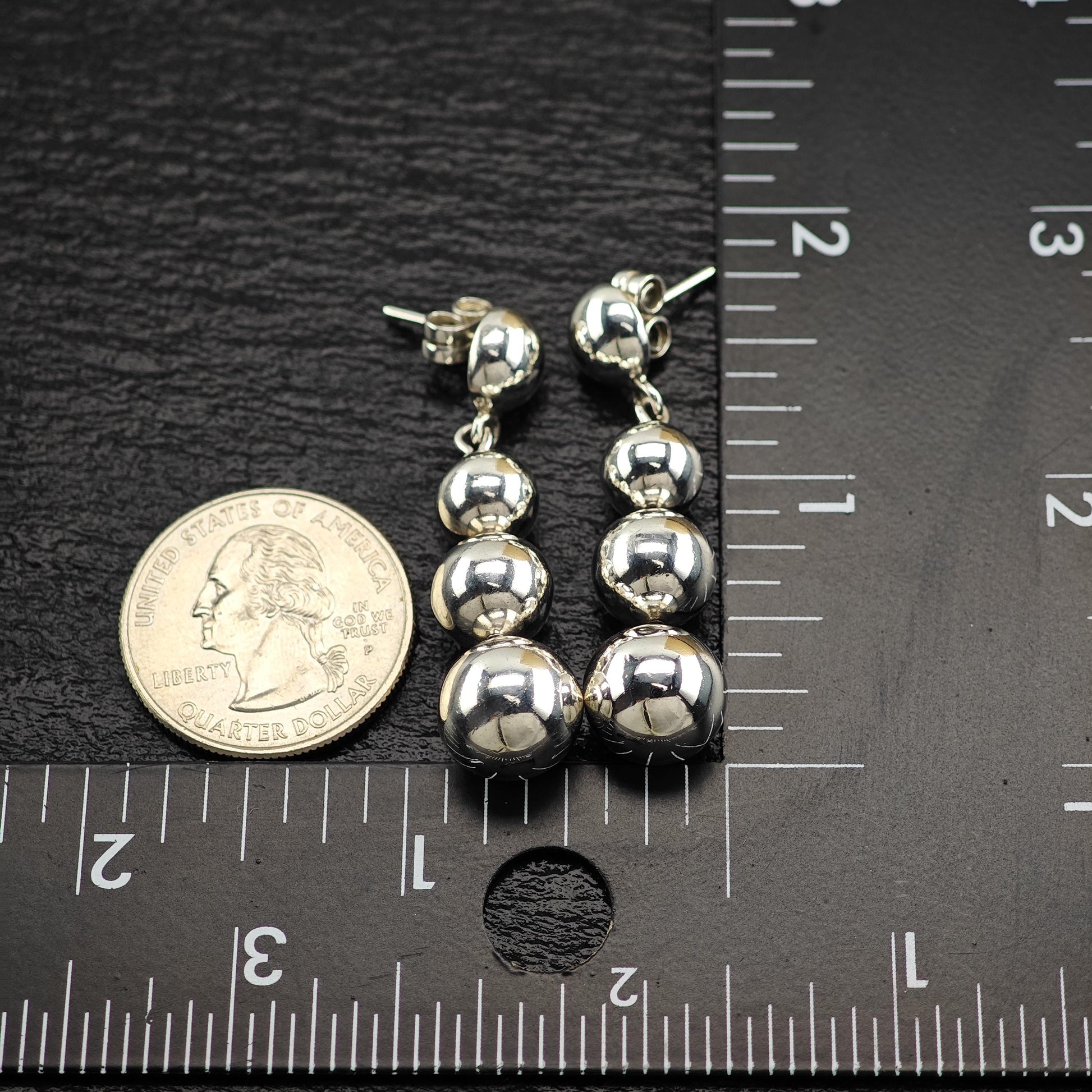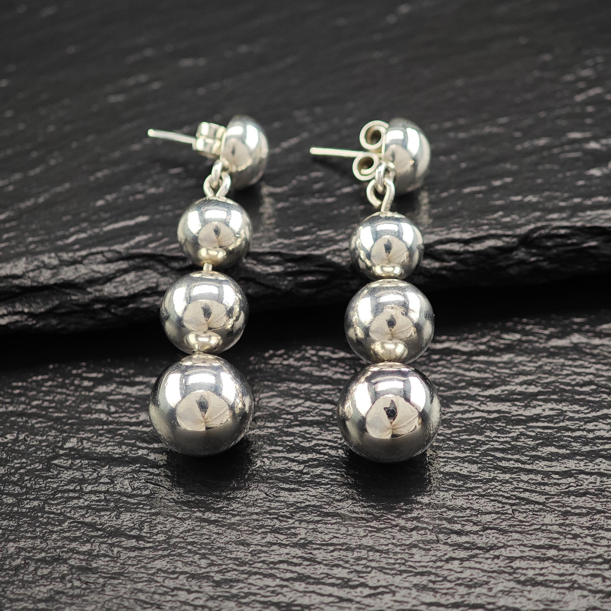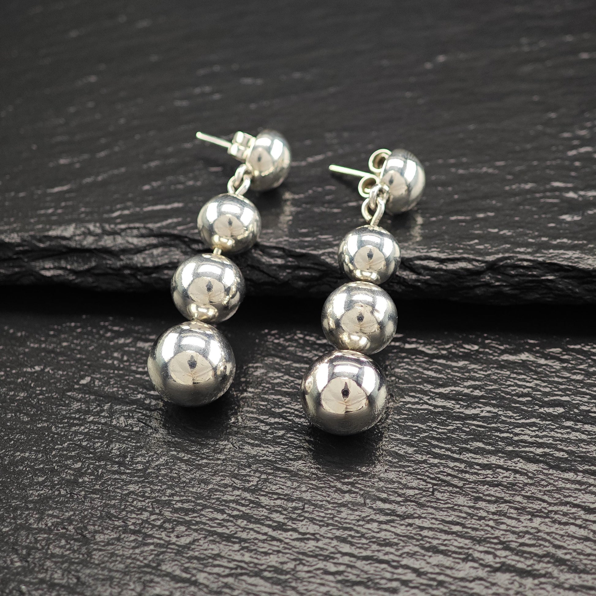 Taxco Graduated Beaded Stud/Dangle Earrings Sterling Silver