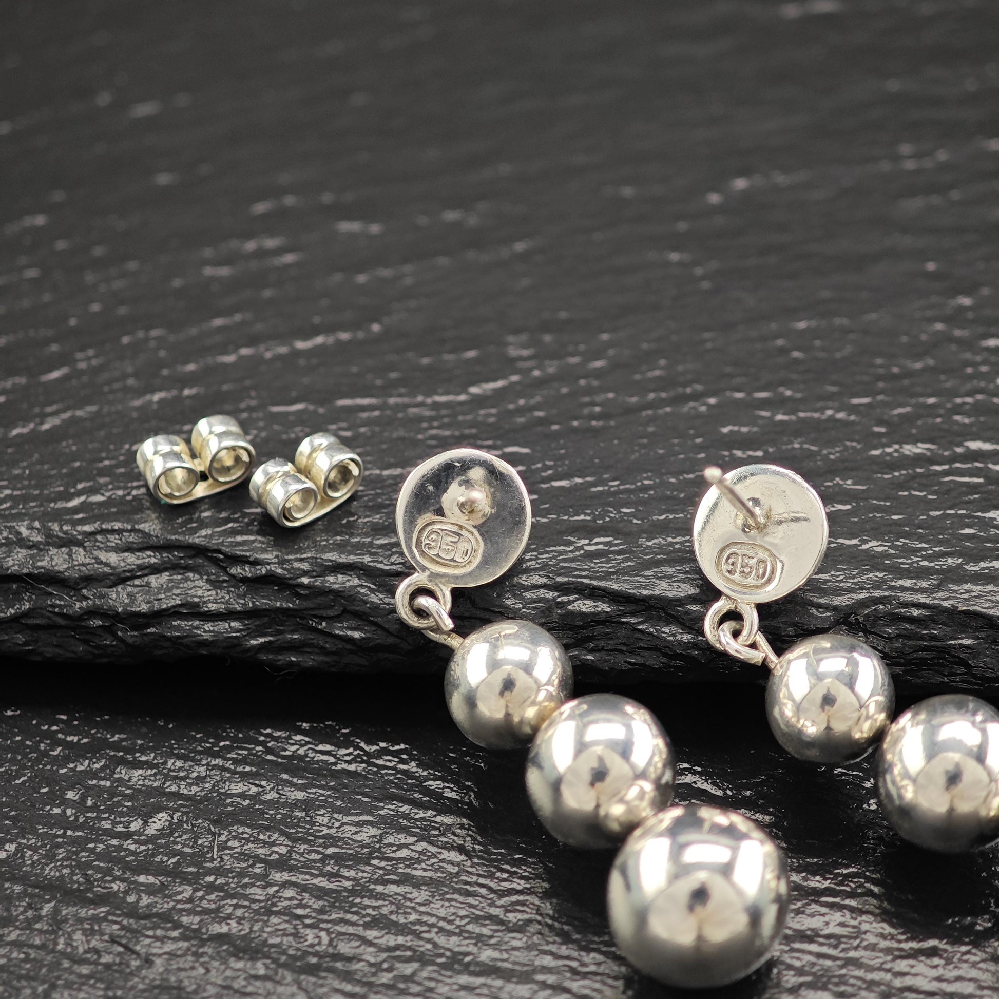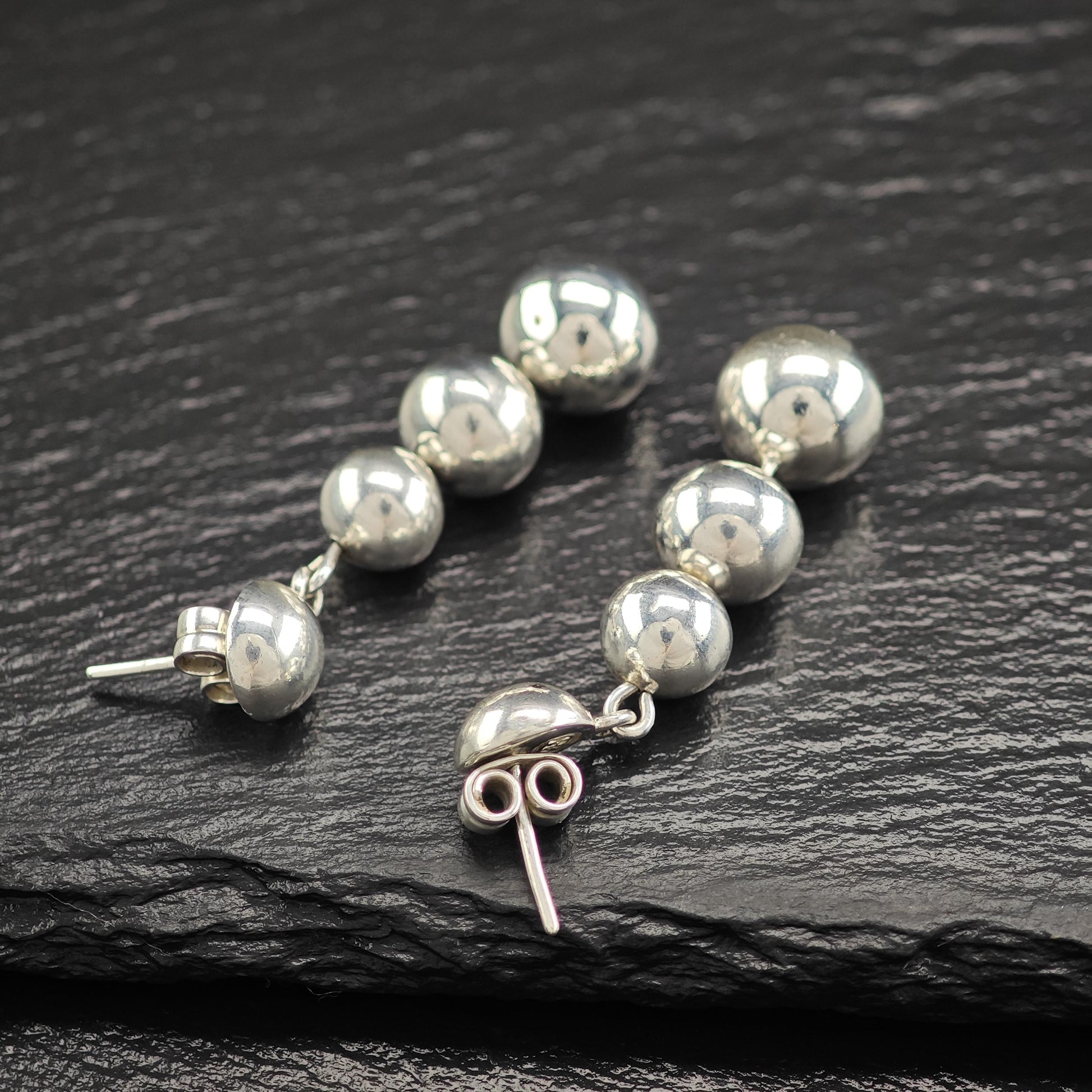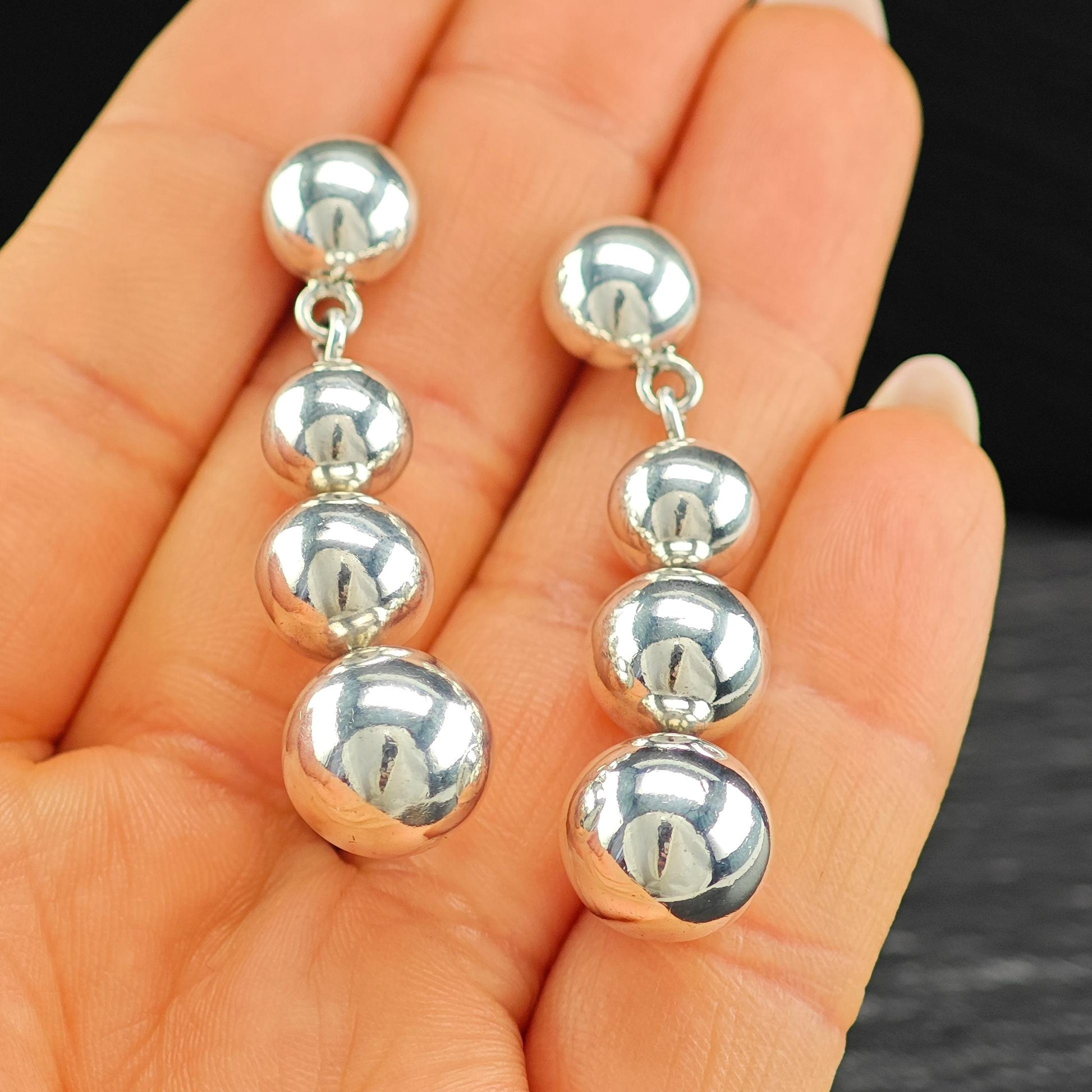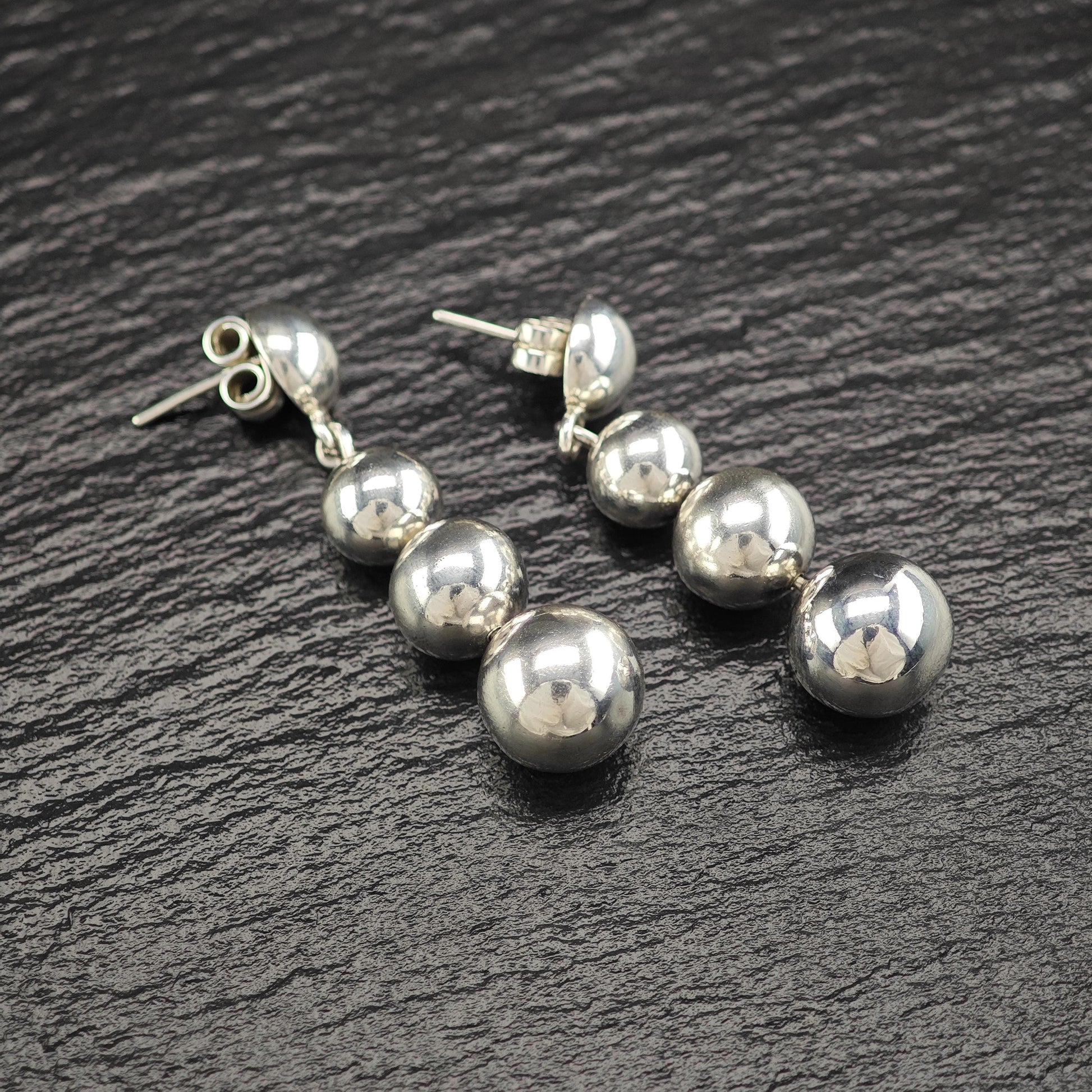 Taxco Graduated Beaded Stud/Dangle Earrings Sterling Silver