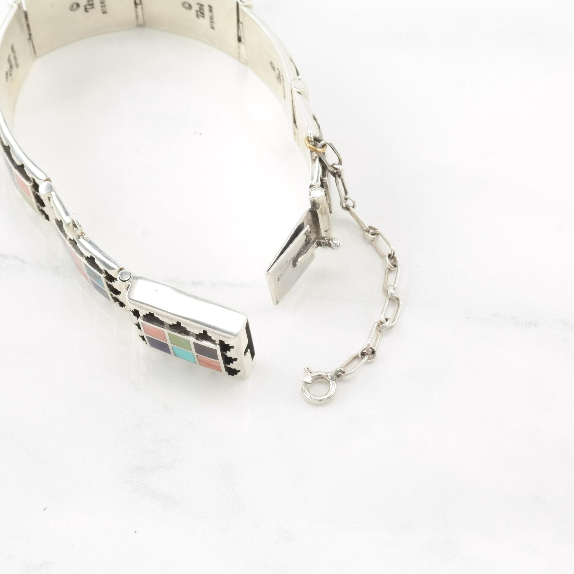 Teme Inlay Sterling Silver Bracelet Turquoise Coral Lapis Shadow Box