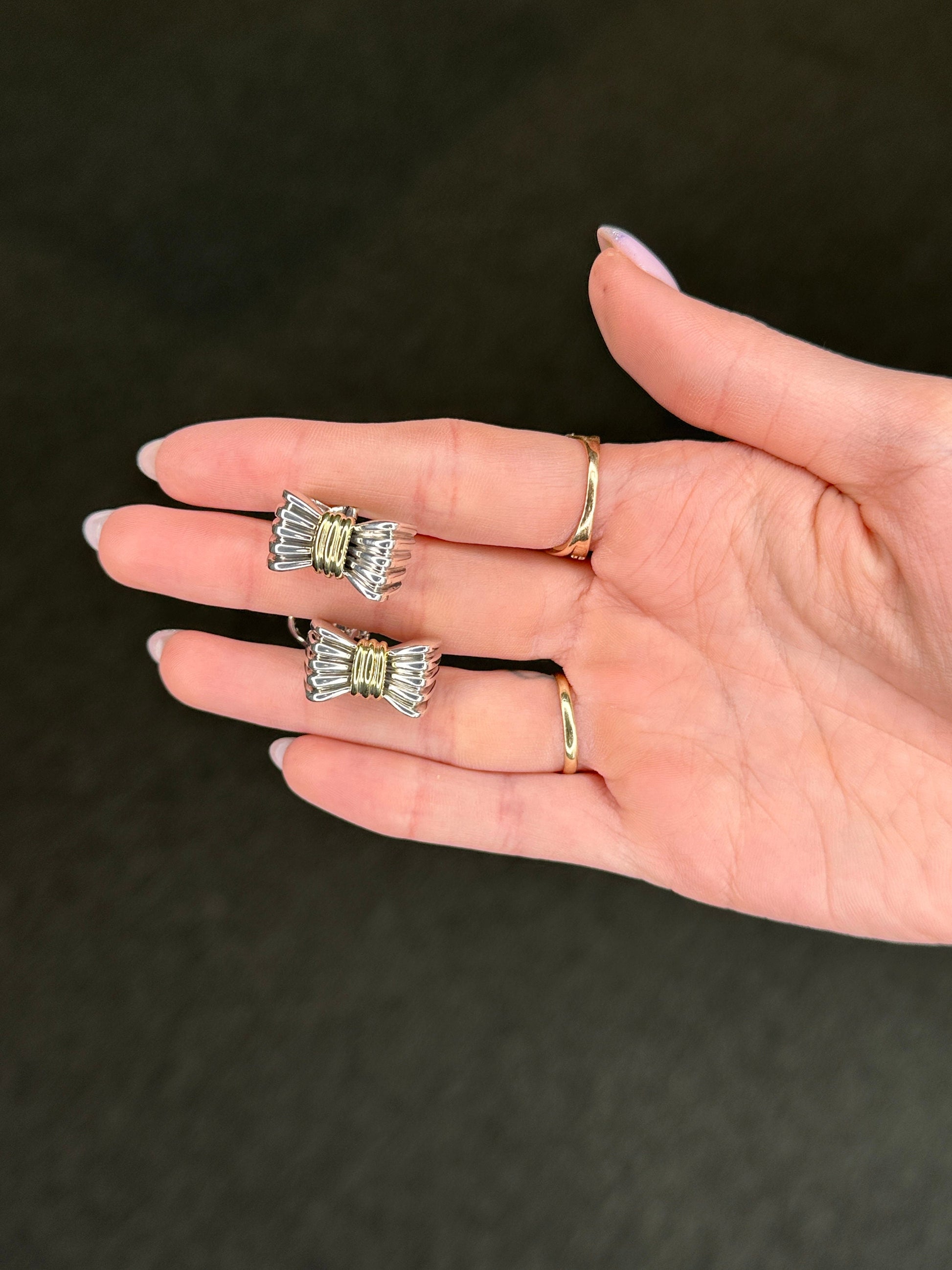 Tiffany and Co Sterling Silver Gold Silver 18K Gold Accent Bow Earrings Omega back