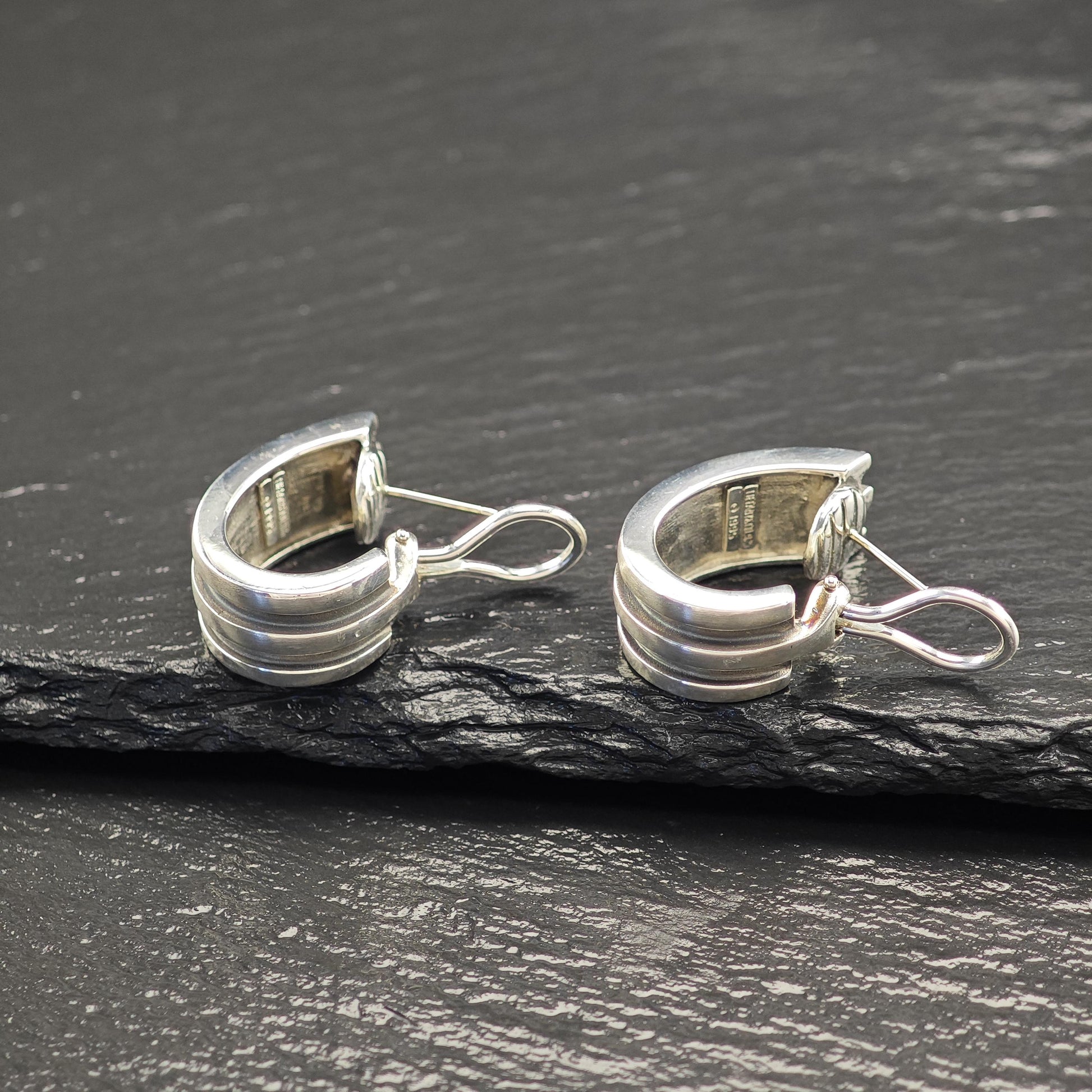 Tiffany Atlas 1995, Incise Omega Back Earrings Sterling Silver