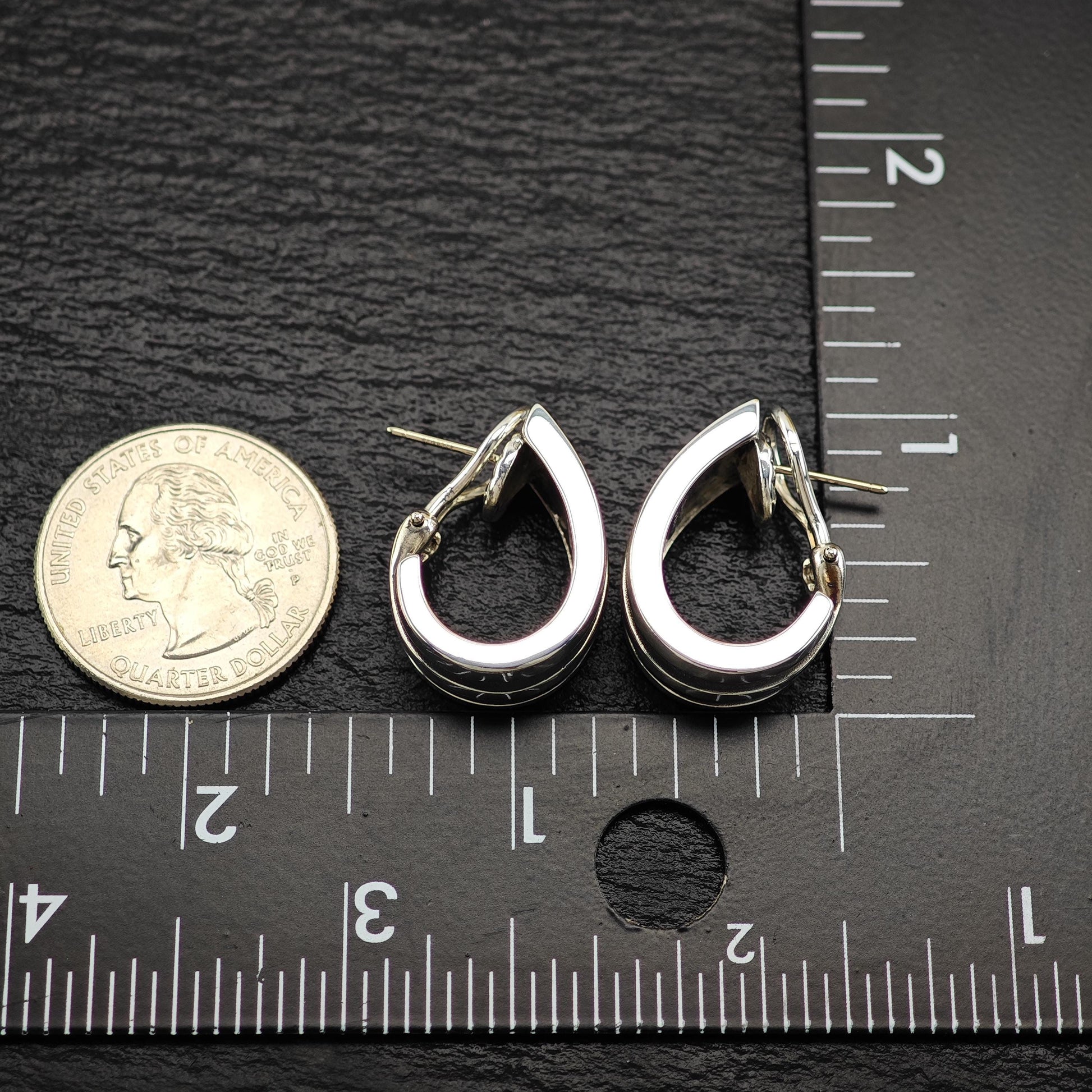 These estate earrings are in great condition, having been cleaned and polished to a like-new shine. They exhibit a moderate patina and show age-appropriate wear, adding to their vintage charm. Circa 1990, these earrings are a timeless addition to any jewelry collection.
