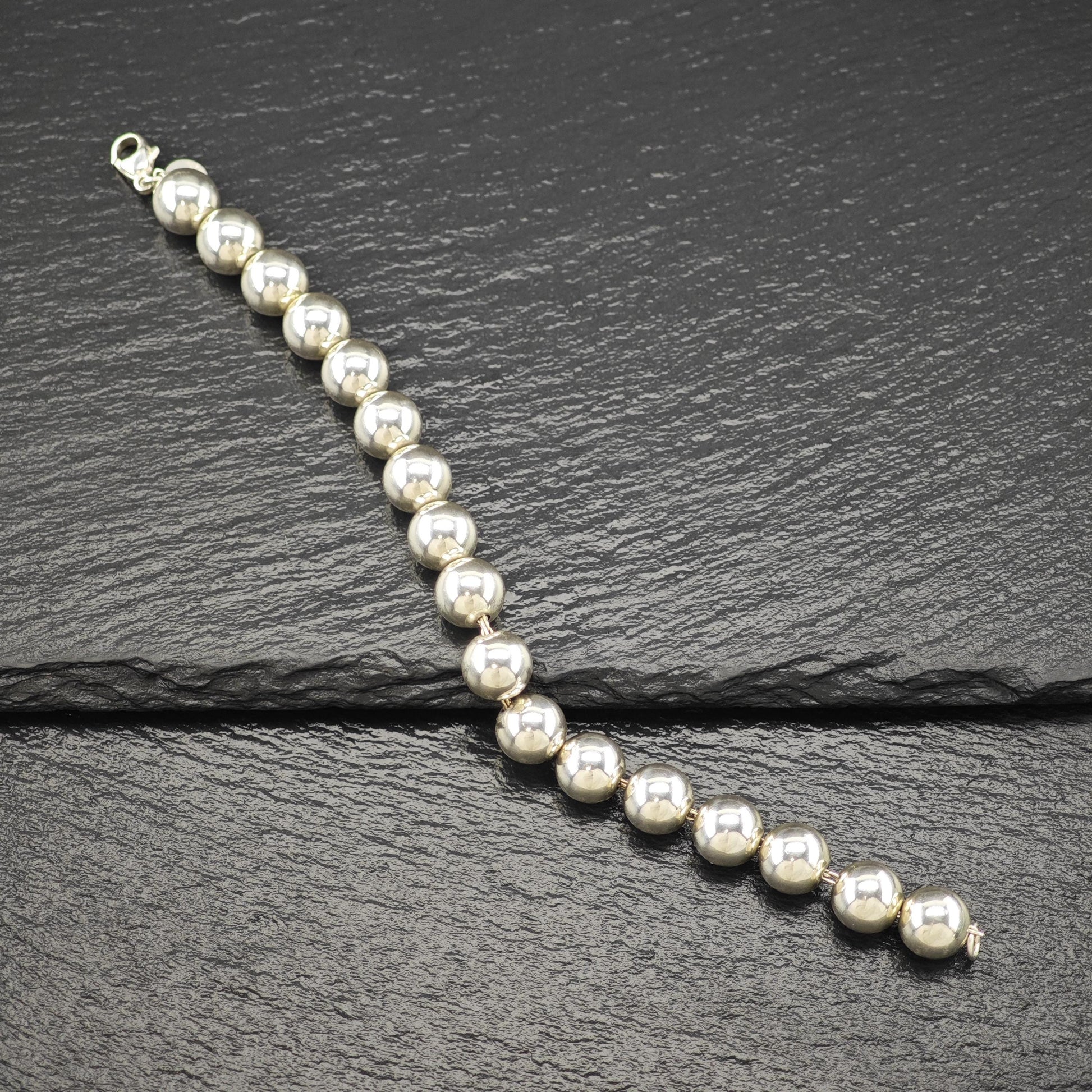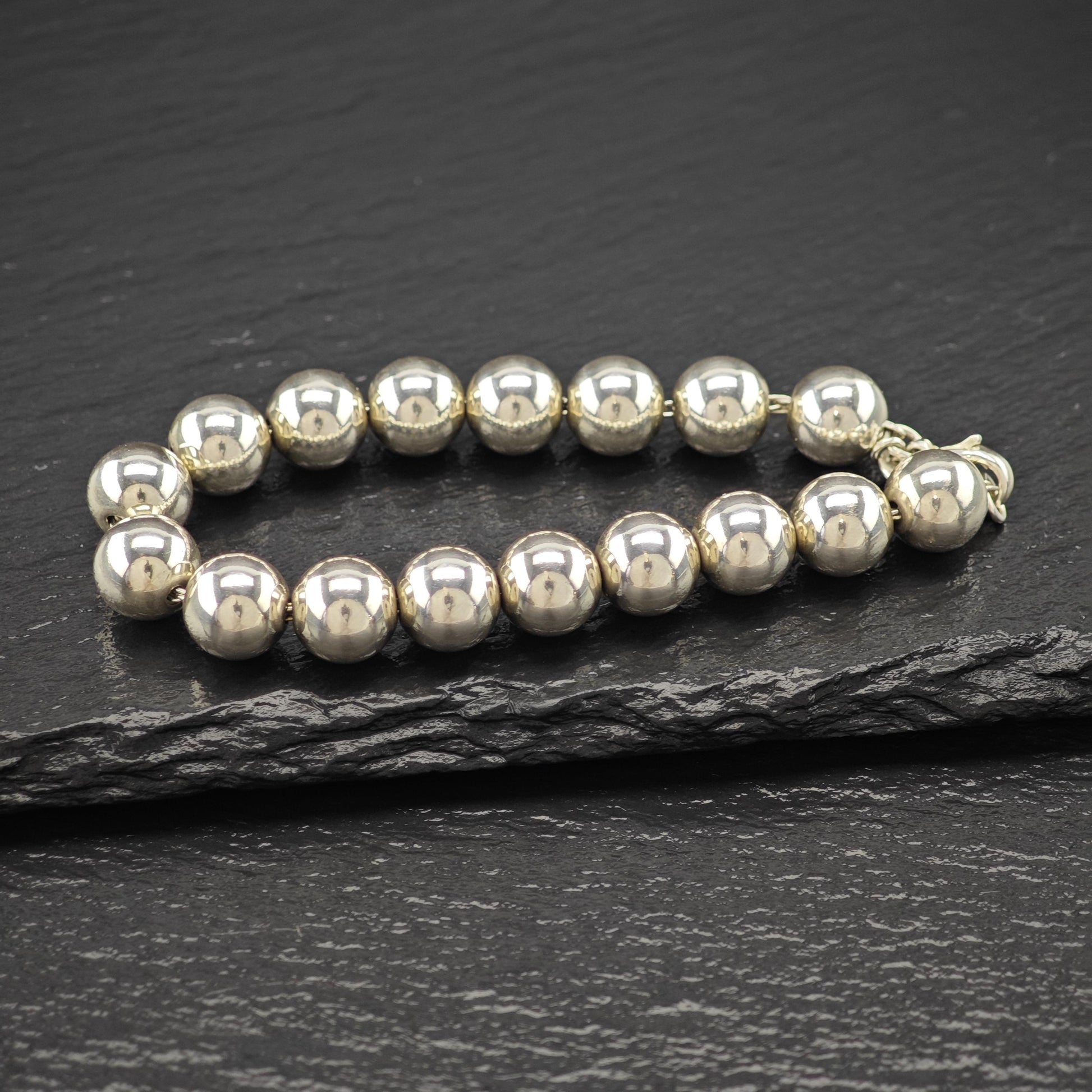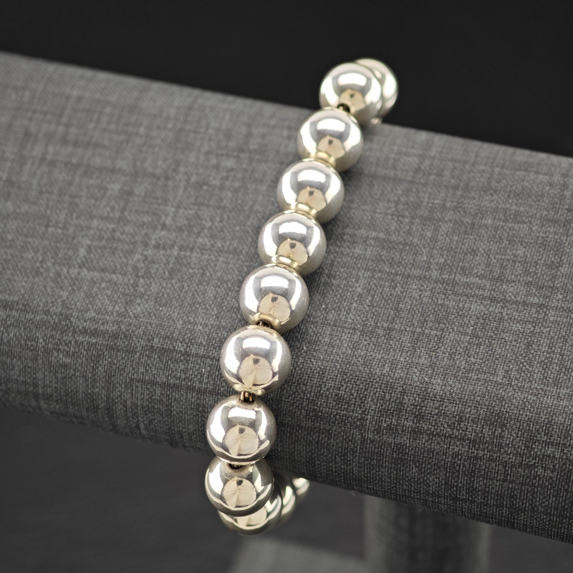Discover the timeless elegance of this sterling silver bracelet, a true treasure for lovers of vintage jewelry and 925 silver craftsmanship. Inspired by Tiffany & Co's iconic HardWear collection, this 10mm ball bracelet blends bold design with subtle sophistication, perfect as a holiday gift or a cherished addition to your own collection. Each link reflects meticulous polishing and age-appropriate patina, celebrating the beauty of well-maintained vintage pieces.