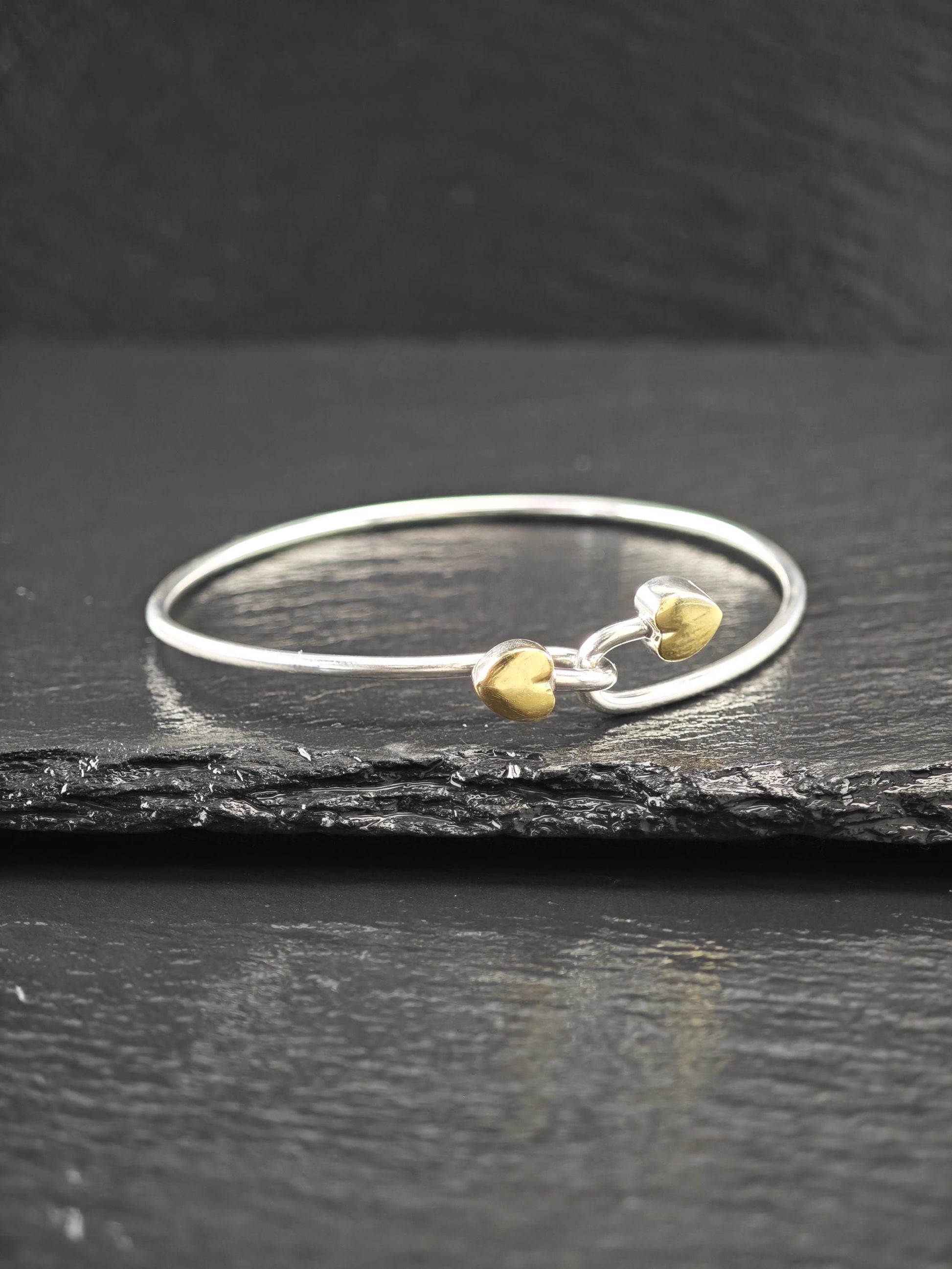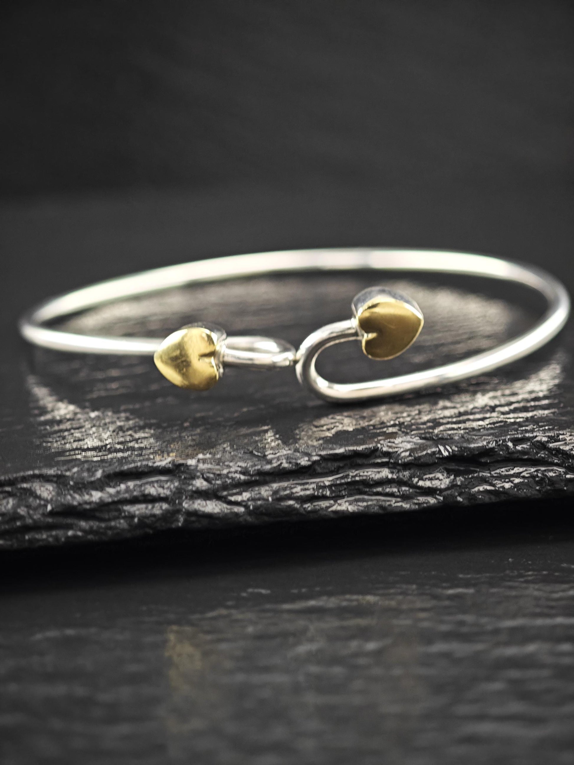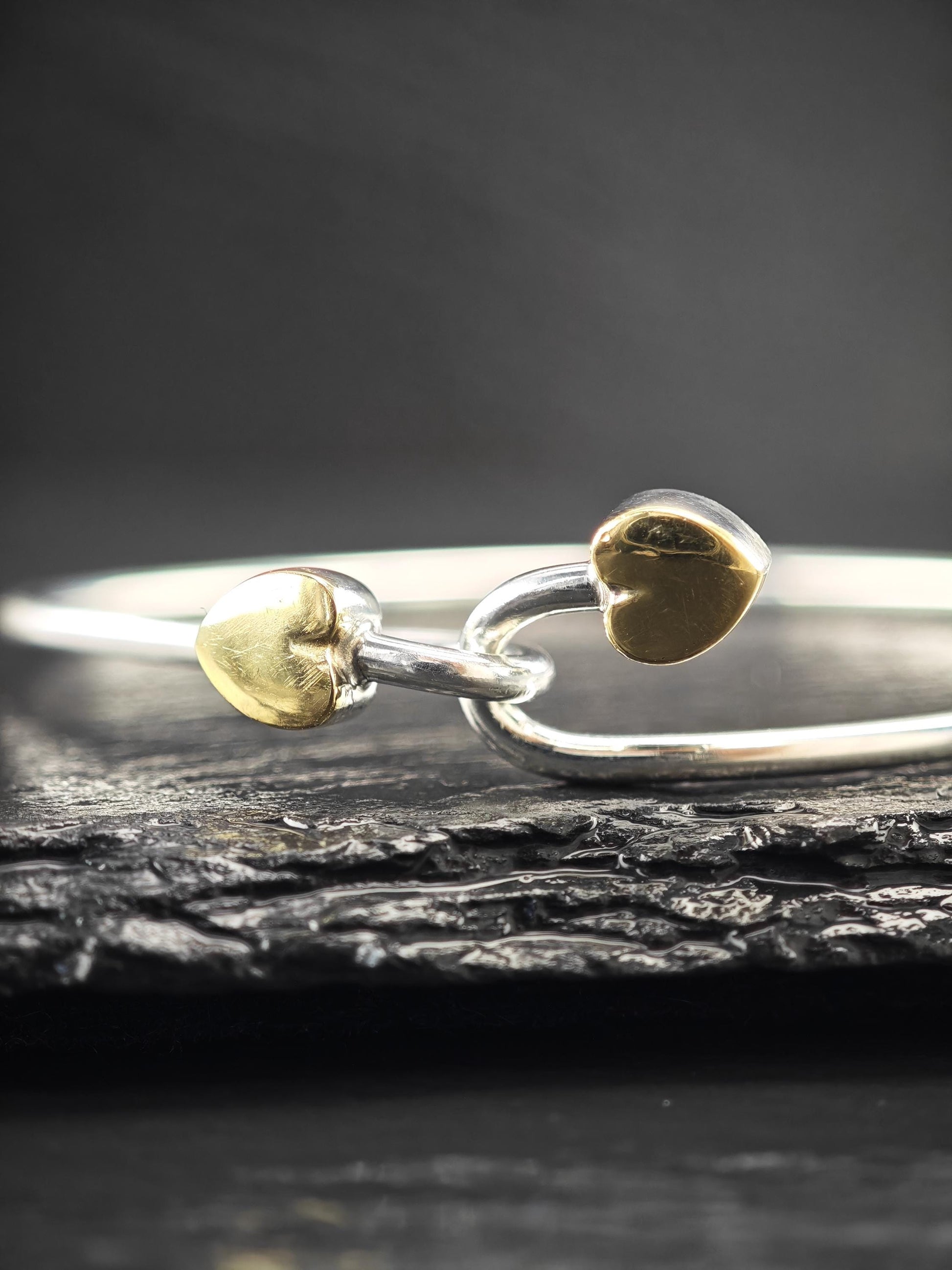Vintage Tiffany & Co. 18K Gold, Heart Bangle Bracelet Sterling Silver