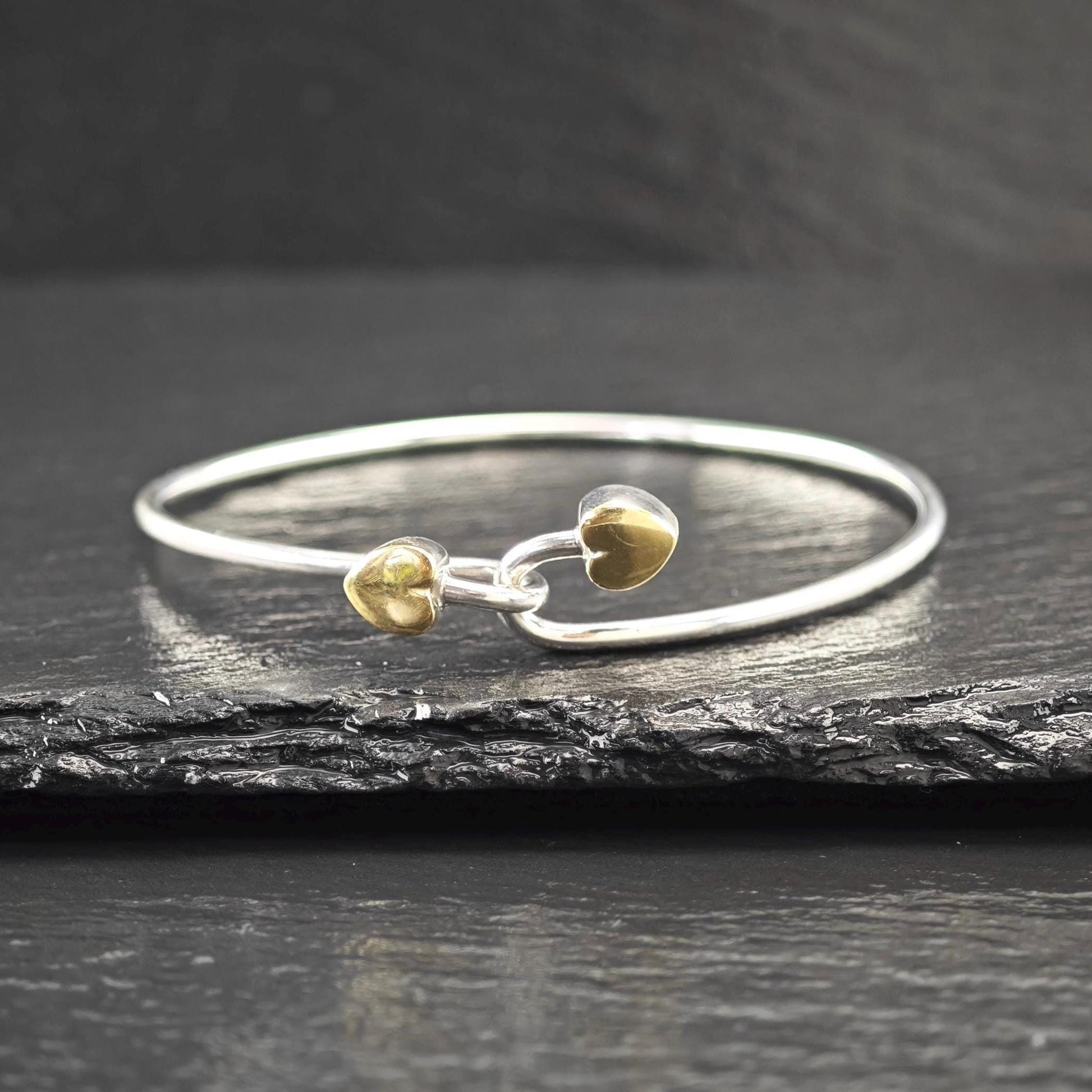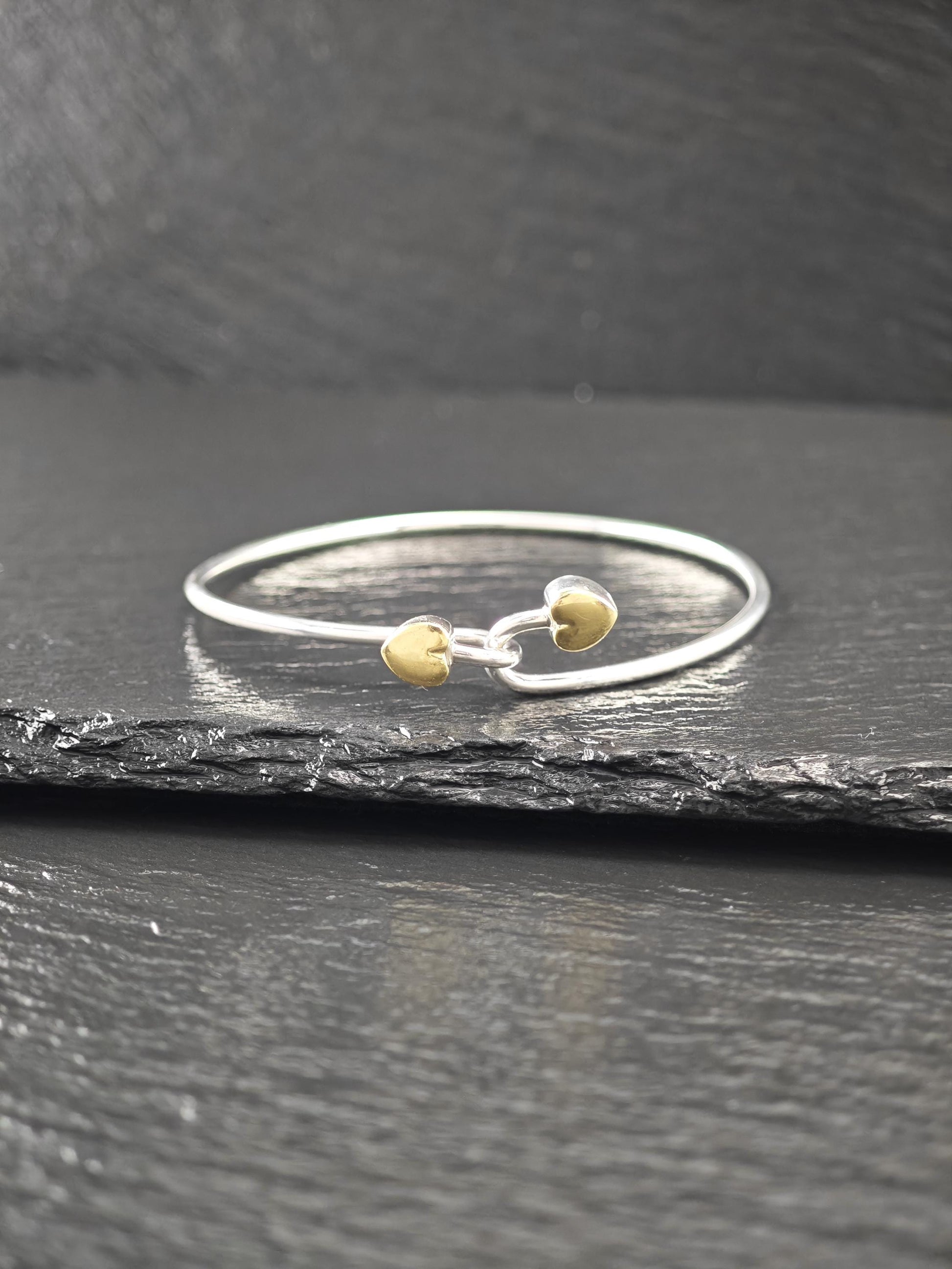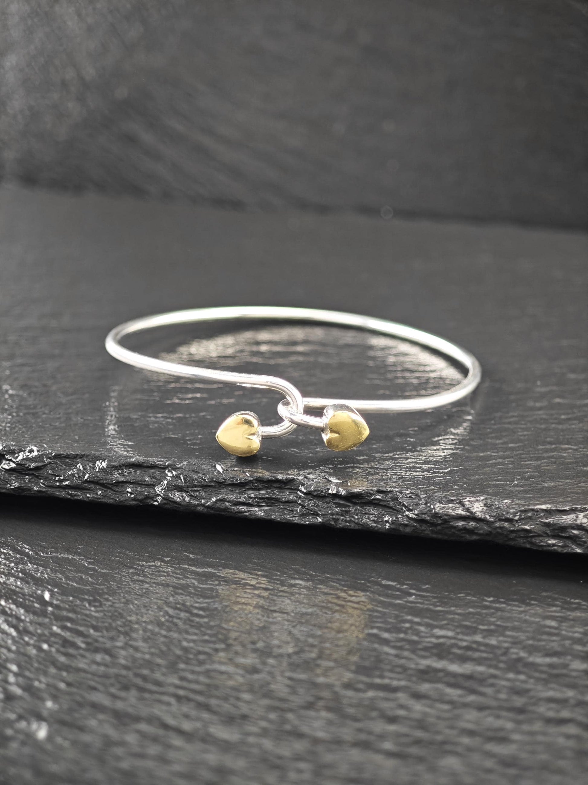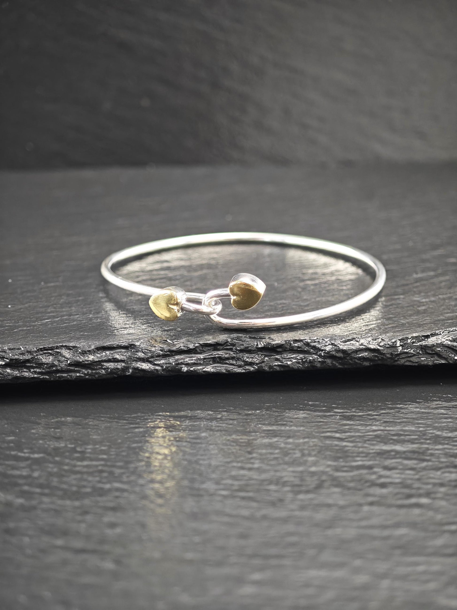 Vintage Tiffany & Co. 18K Gold, Heart Bangle Bracelet Sterling Silver