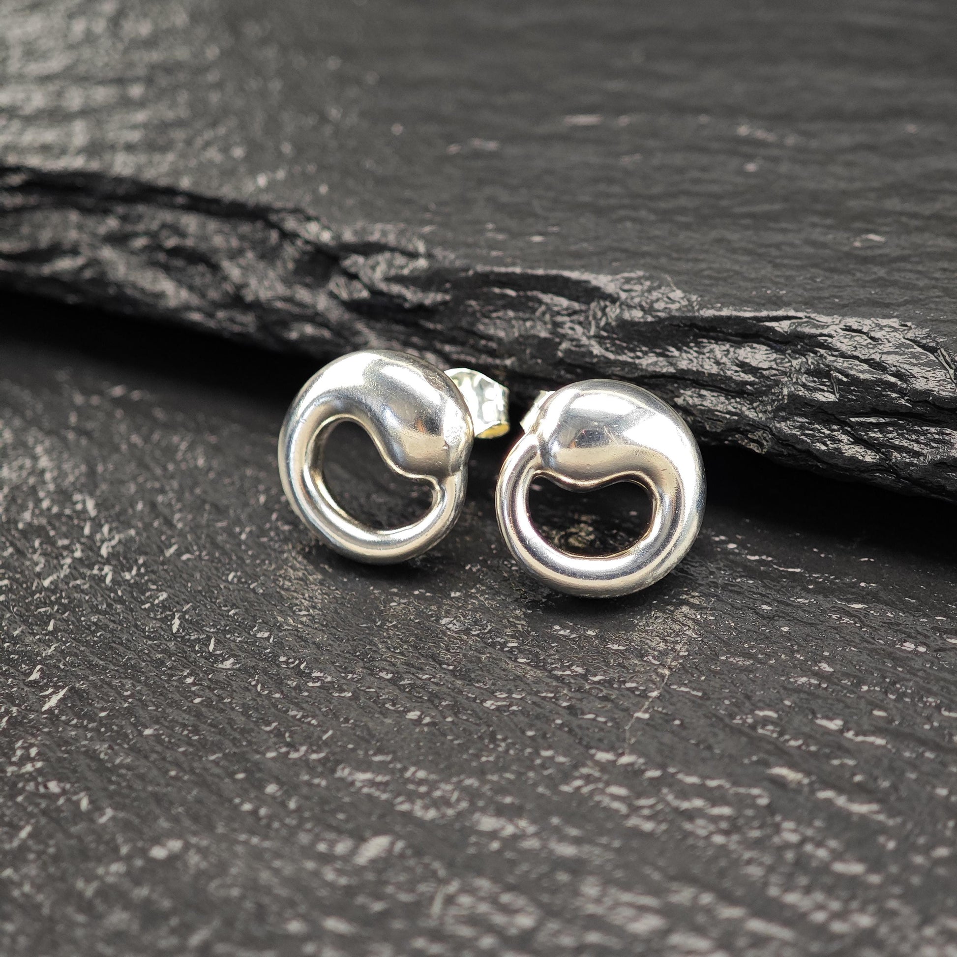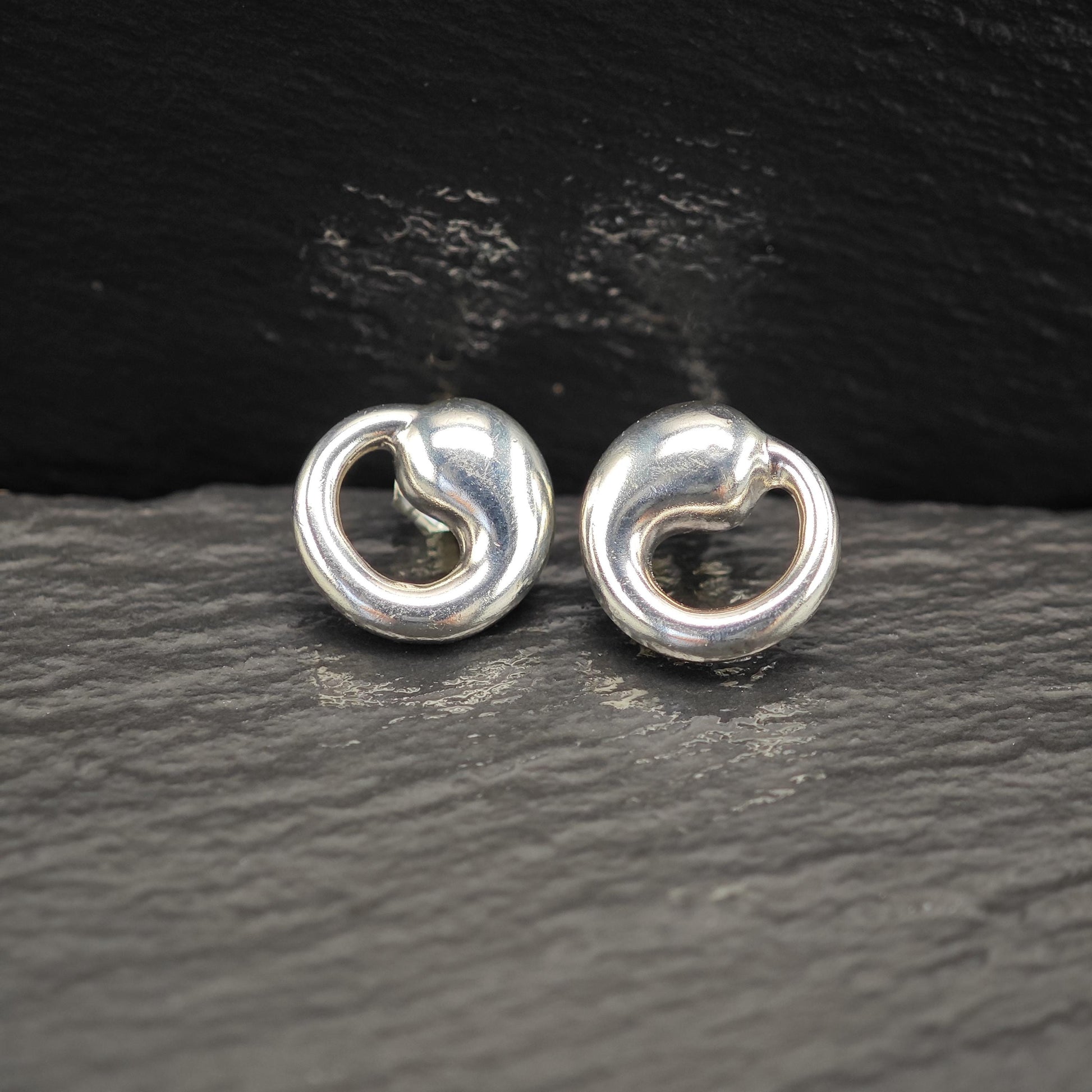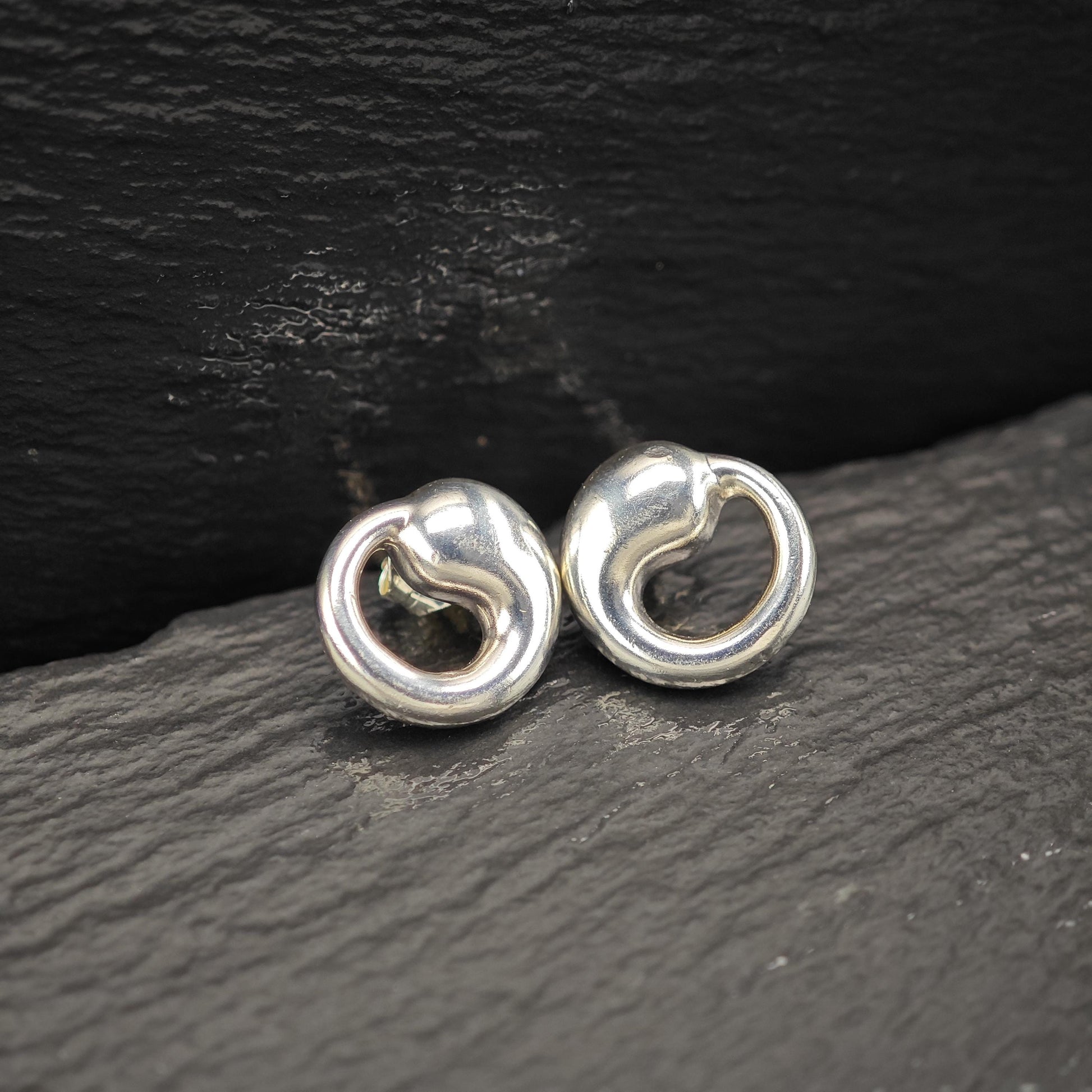 Discover the timeless elegance of these vintage sterling silver Eternal Circle stud earrings from Tiffany & Co. Measuring 1/2 inch in length and width, these minimalist earrings weigh 4.6 grams and showcase a beautifully simple design that embodies sophistication.