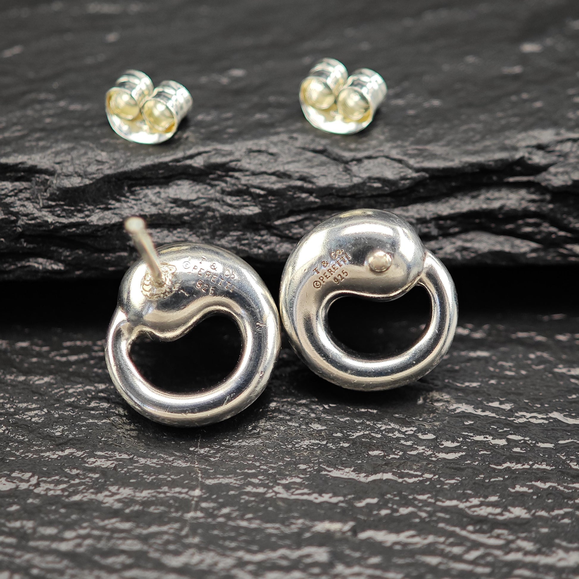 Crafted with care, they feature the iconic markings of T & Co, Copyright, Peretti, and 925, ensuring their authenticity as tested sterling silver. The earrings are in excellent estate condition, having been cleaned and polished to a like-new finish, with only age-appropriate wear, if any.