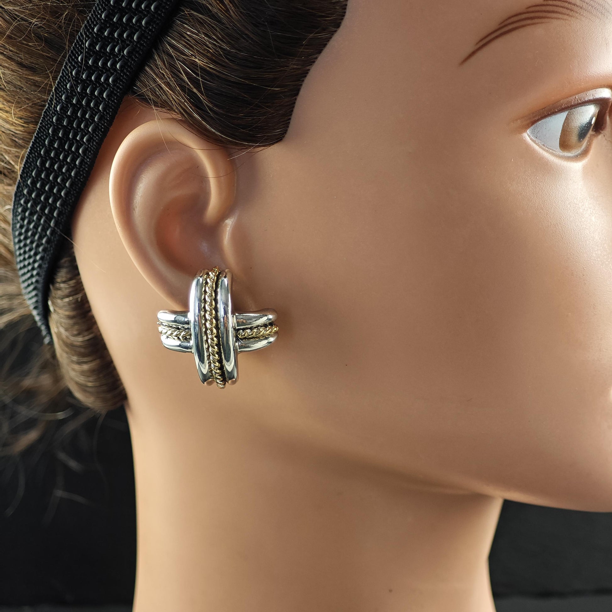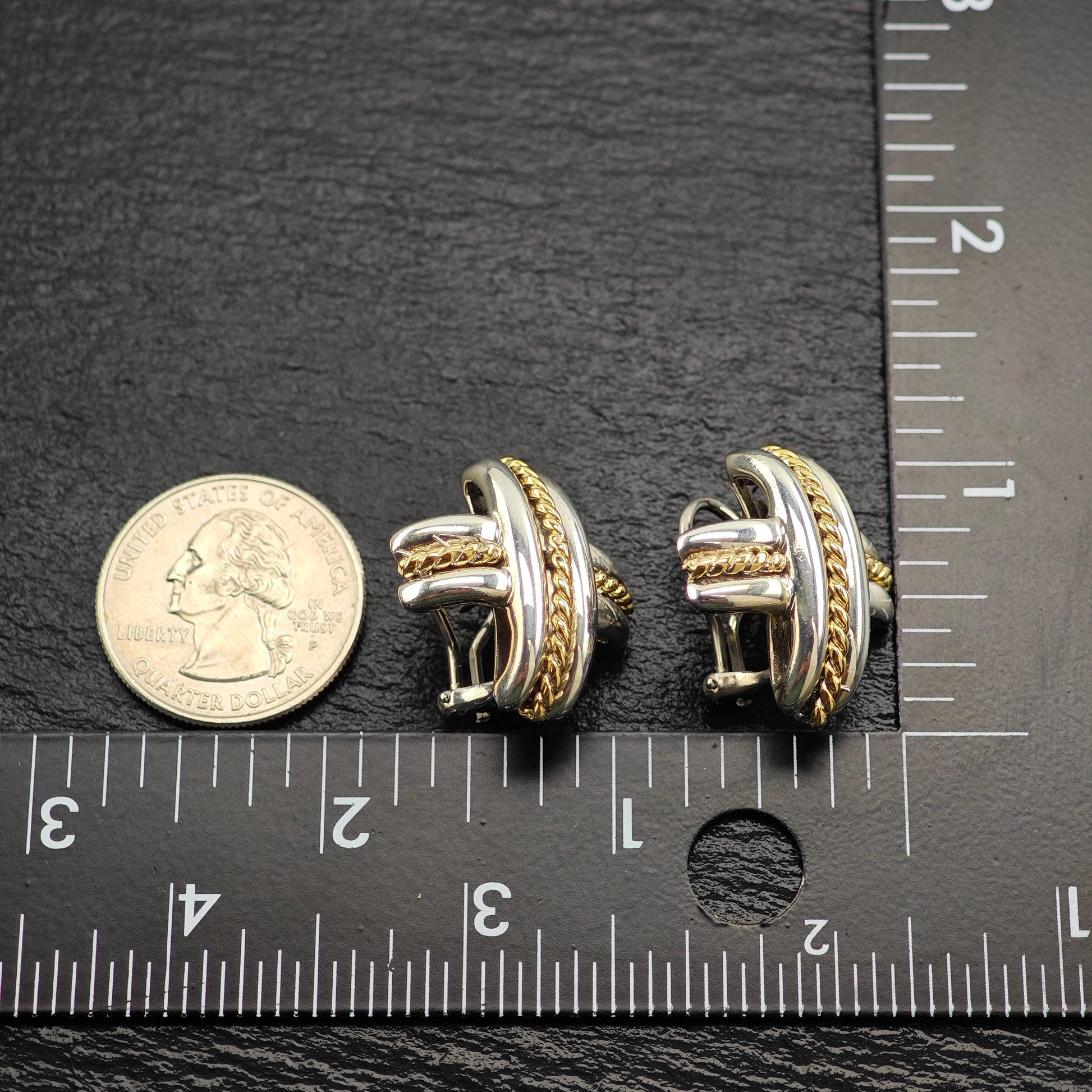 Tiffany Gold Cross, X 18k Gold Accent, Two Tone Omega Back Earrings Sterling Silver