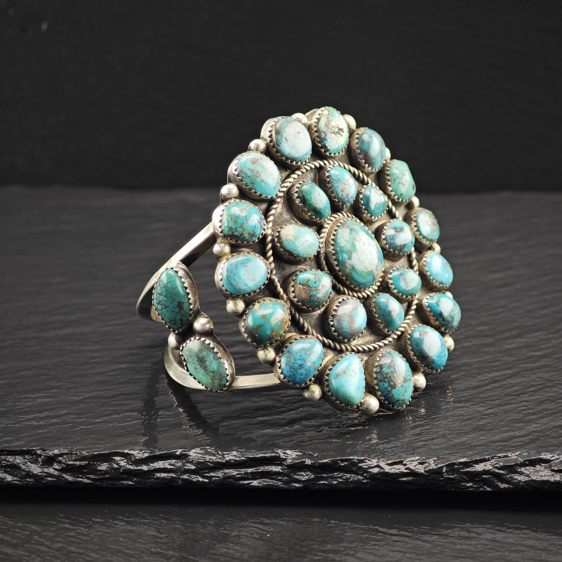 Turquoise Cluster Cuff Bracelet Sterling Silver Native American