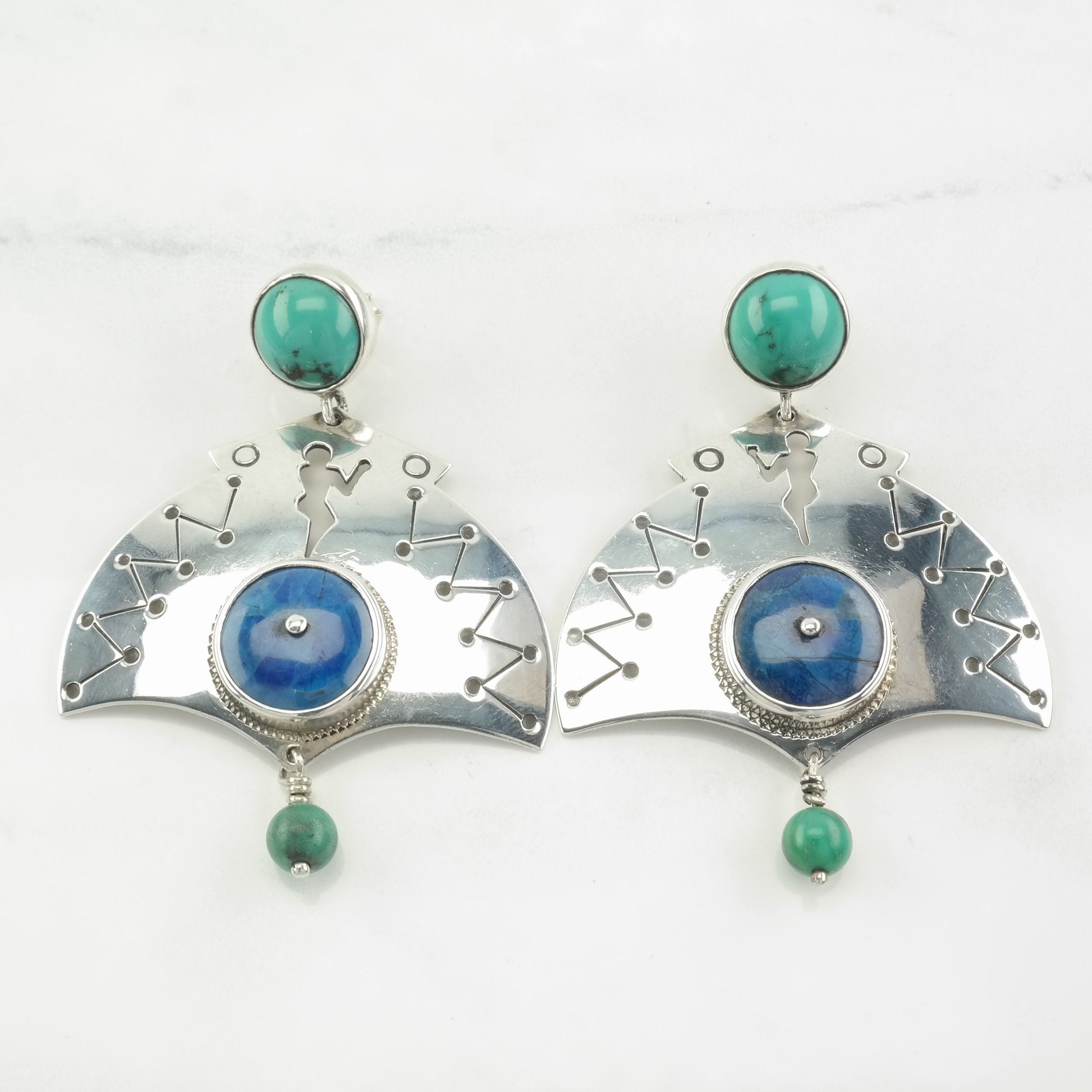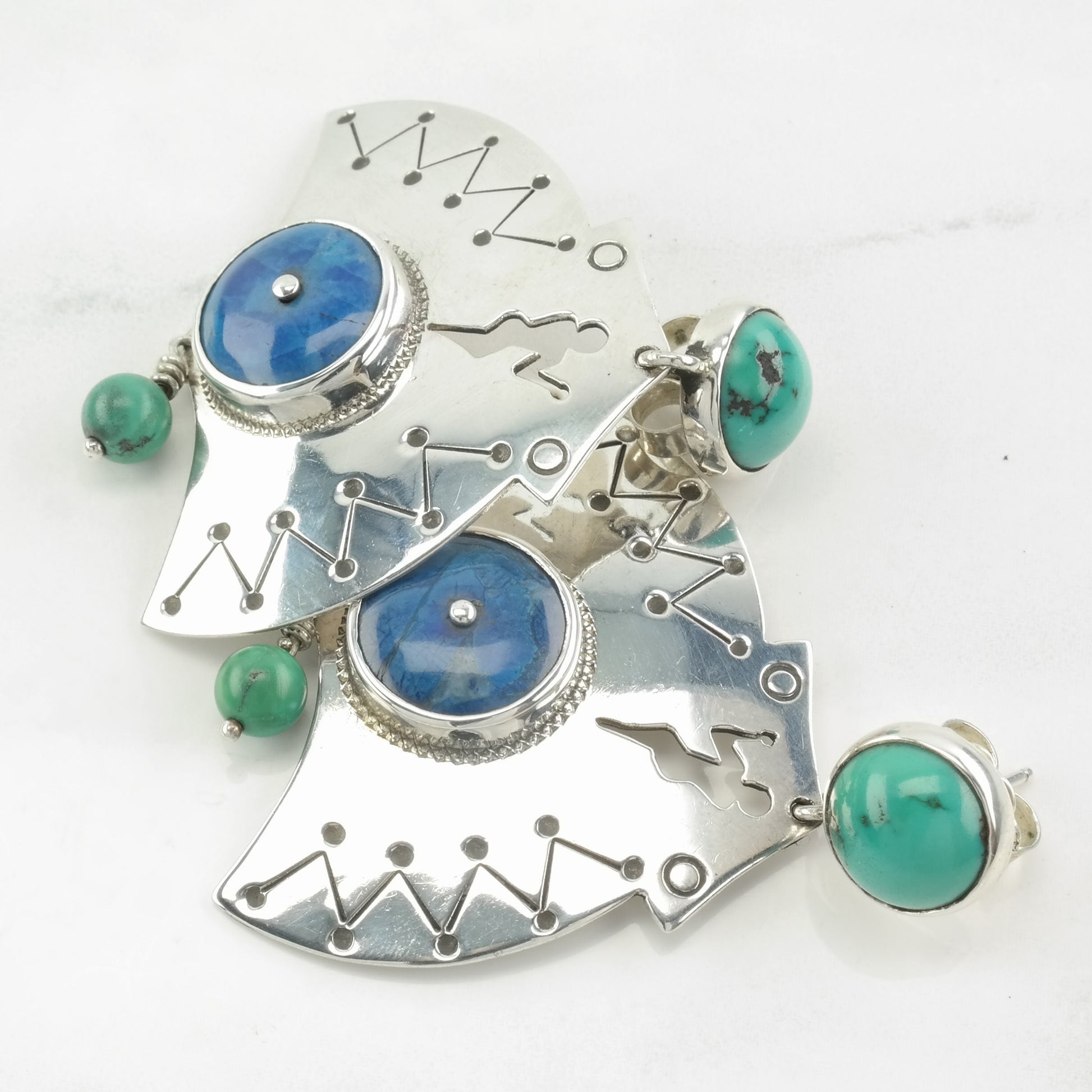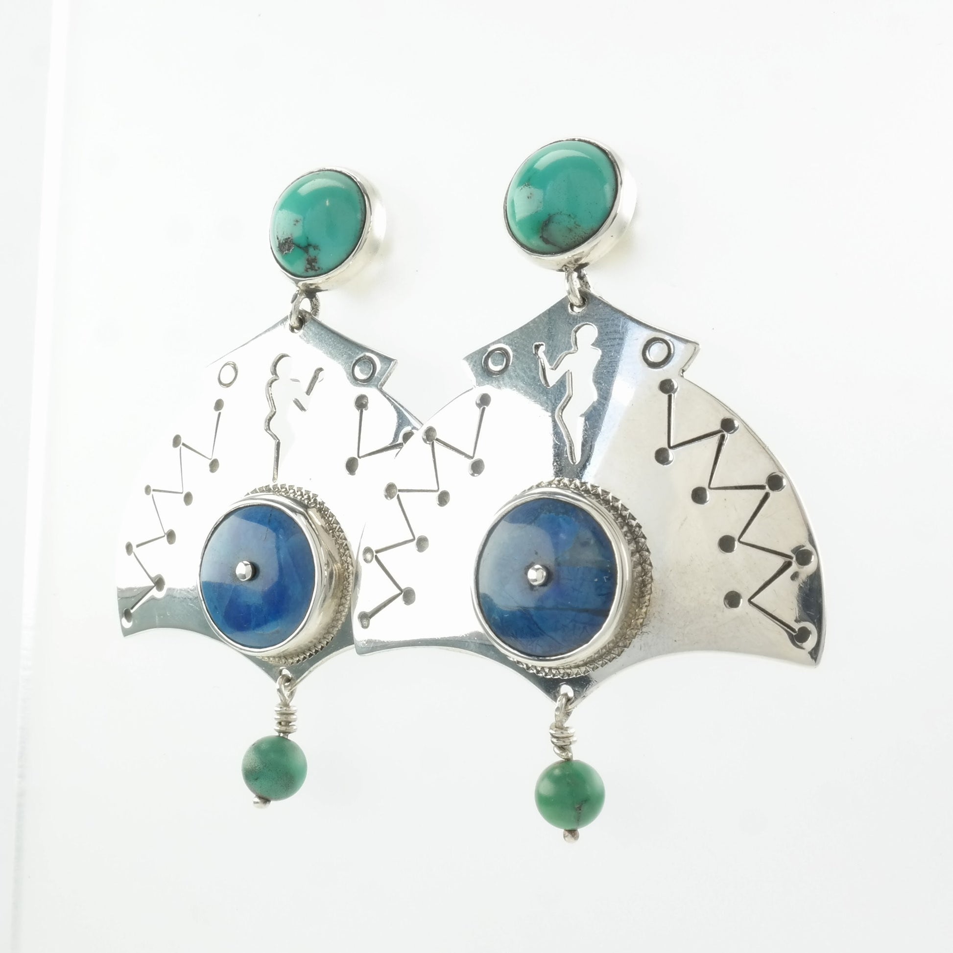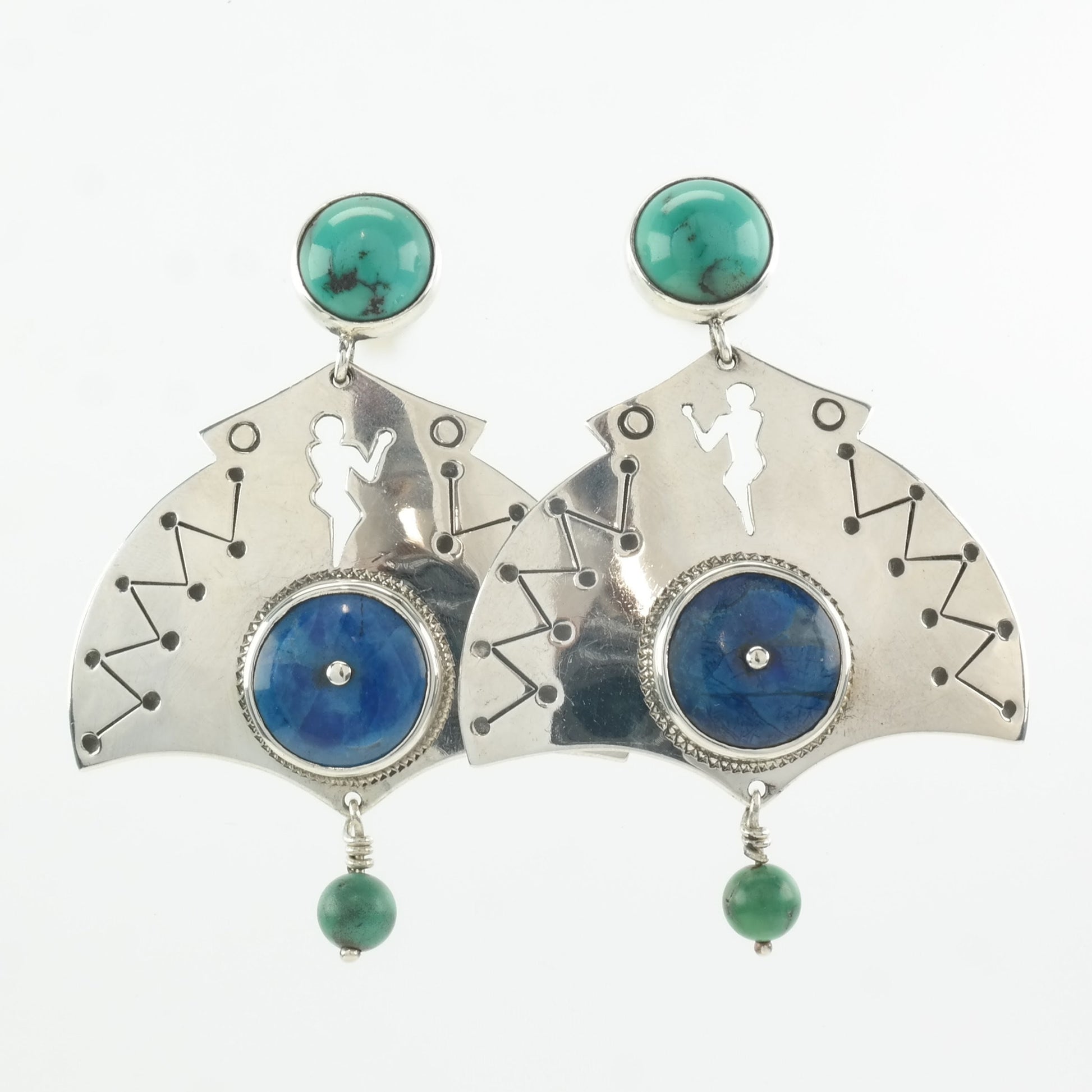 A blend of blues and greens, the lapis lazuli and turquoise stones complement each other against the sterling silver.