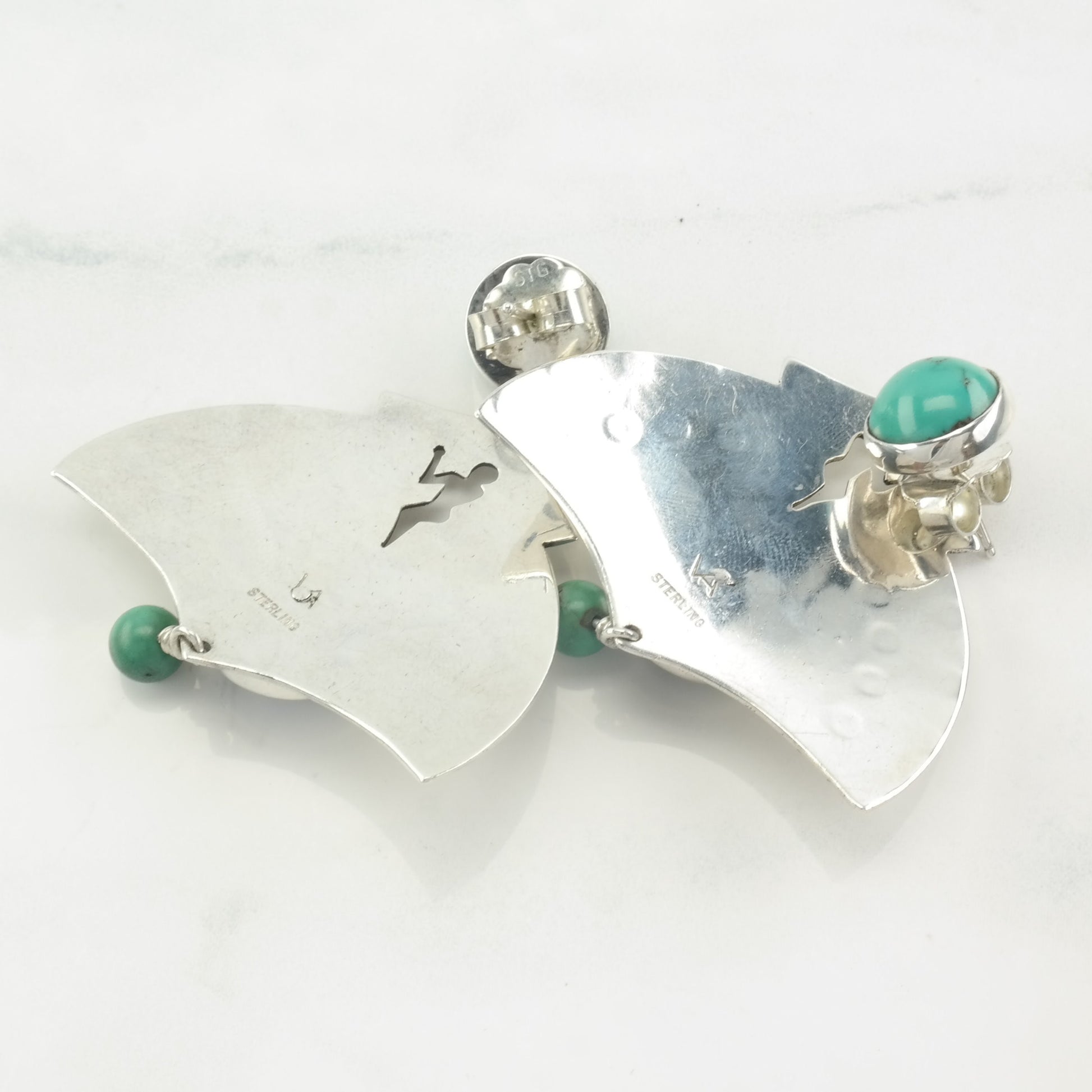 These vintage sterling silver earrings are 2 5/16" long, and 1 11/16" wide