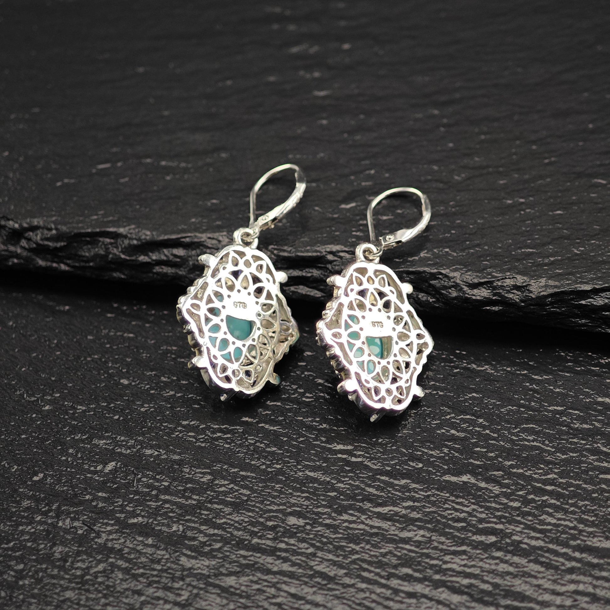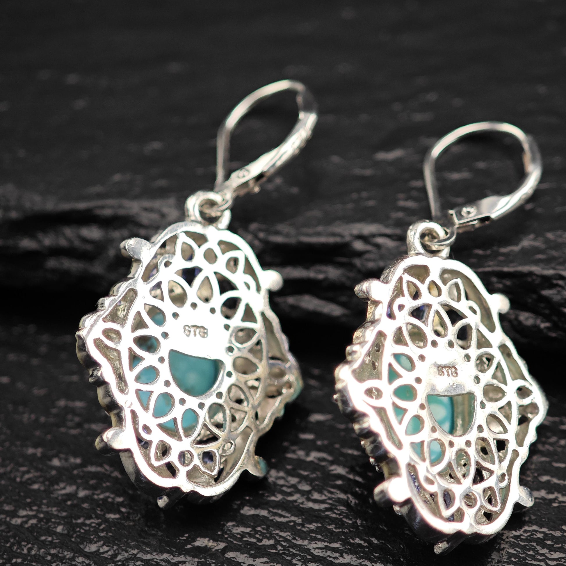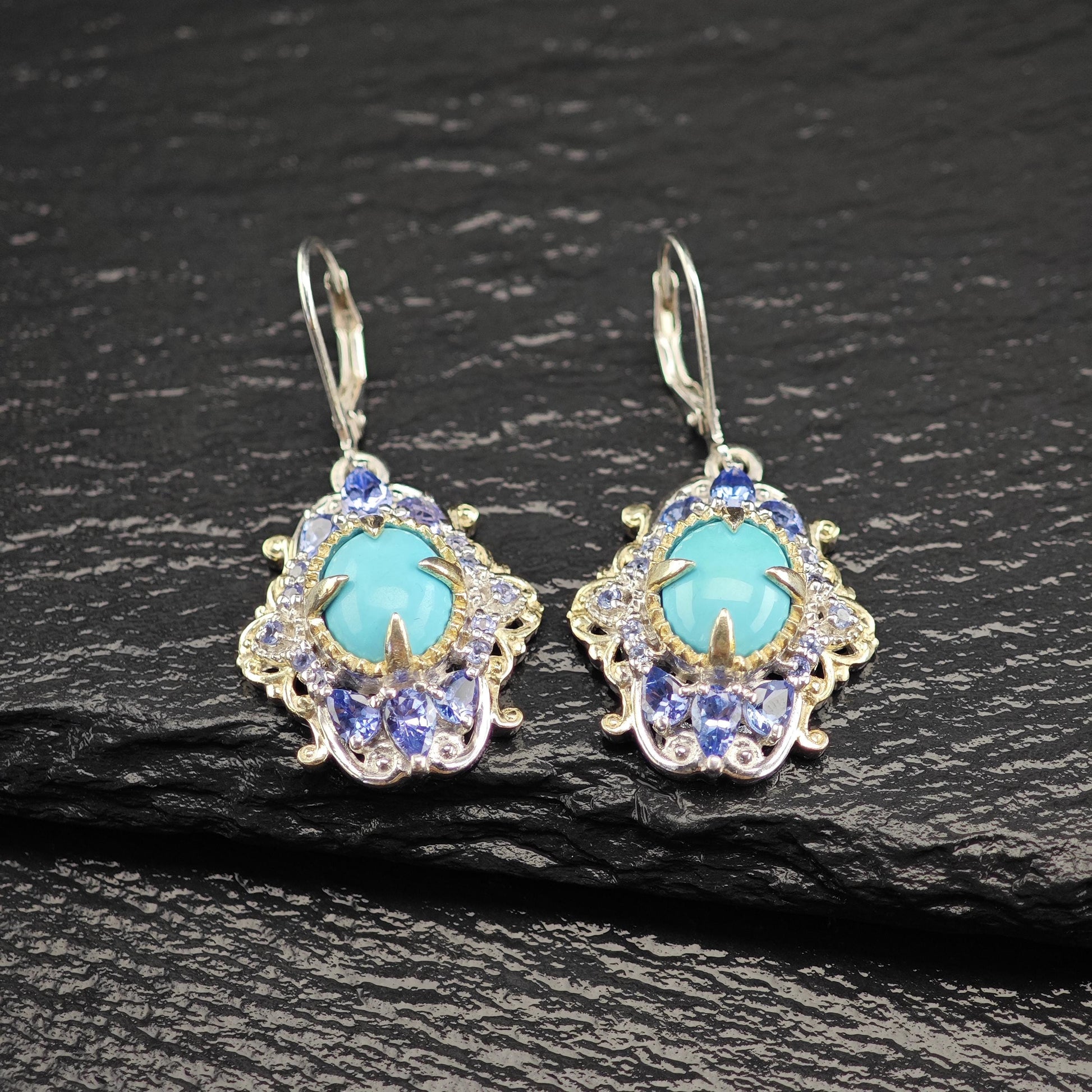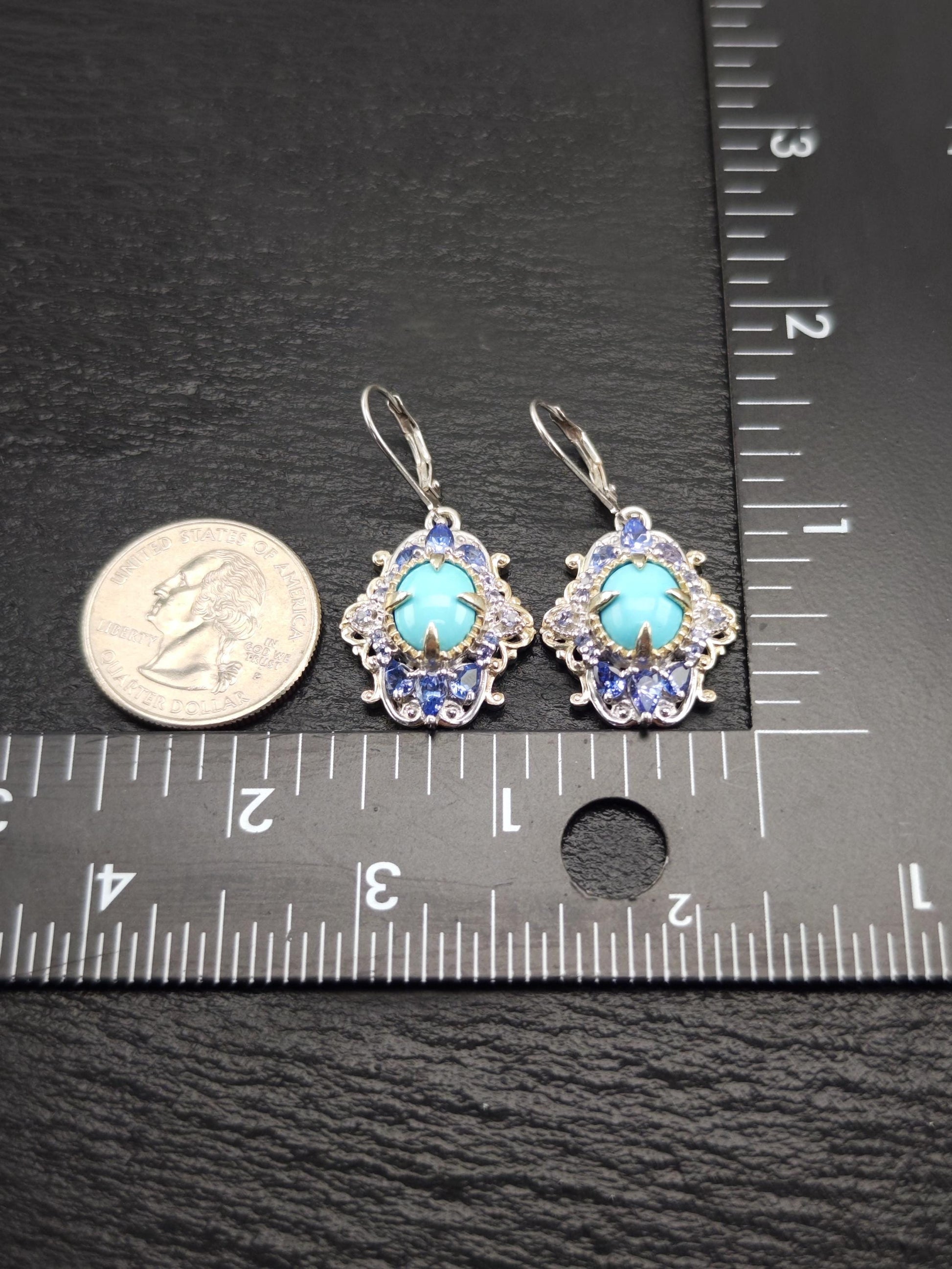 Turquoise Tanzanite Lever Back Earrings in Sterling Silver - Multi-Color Design
