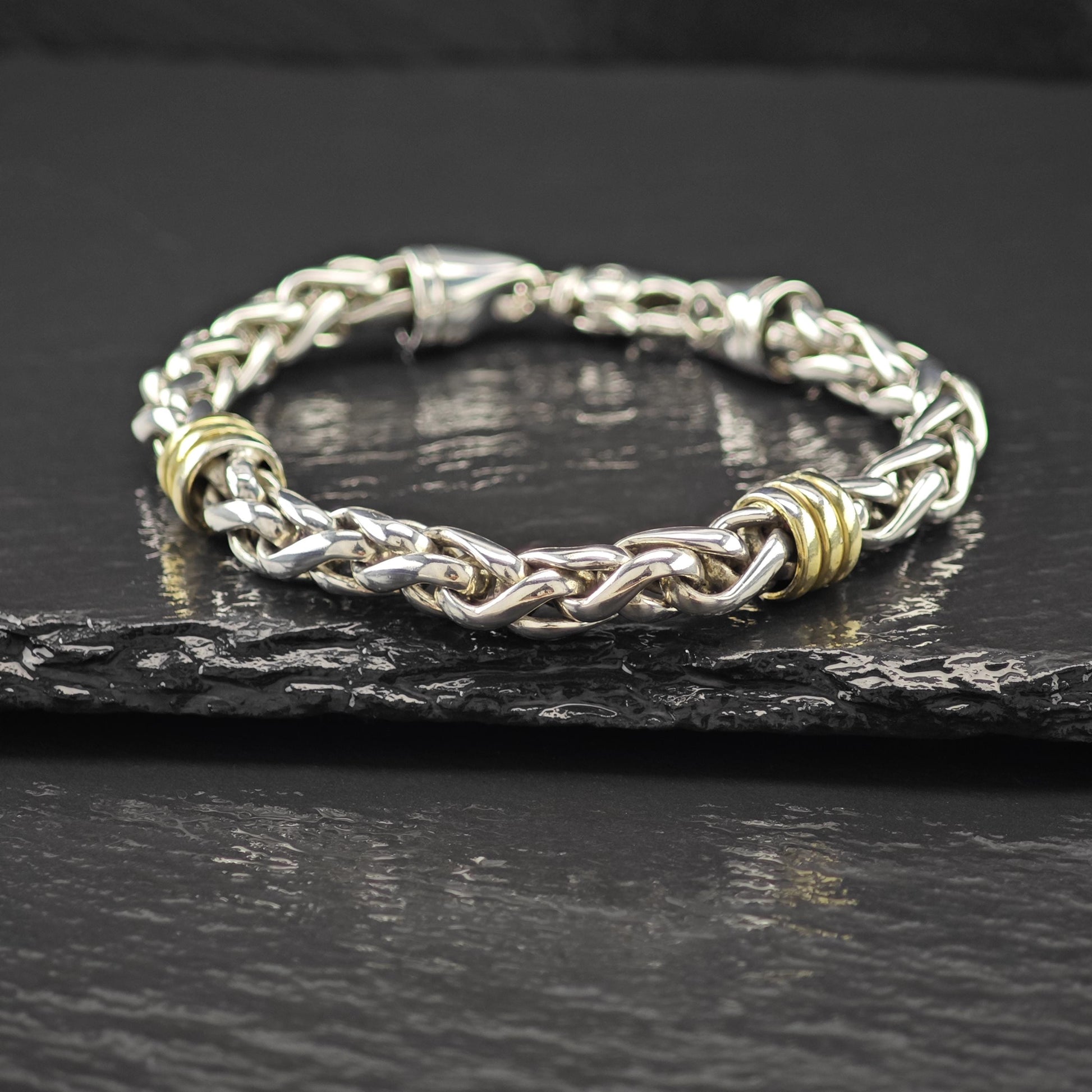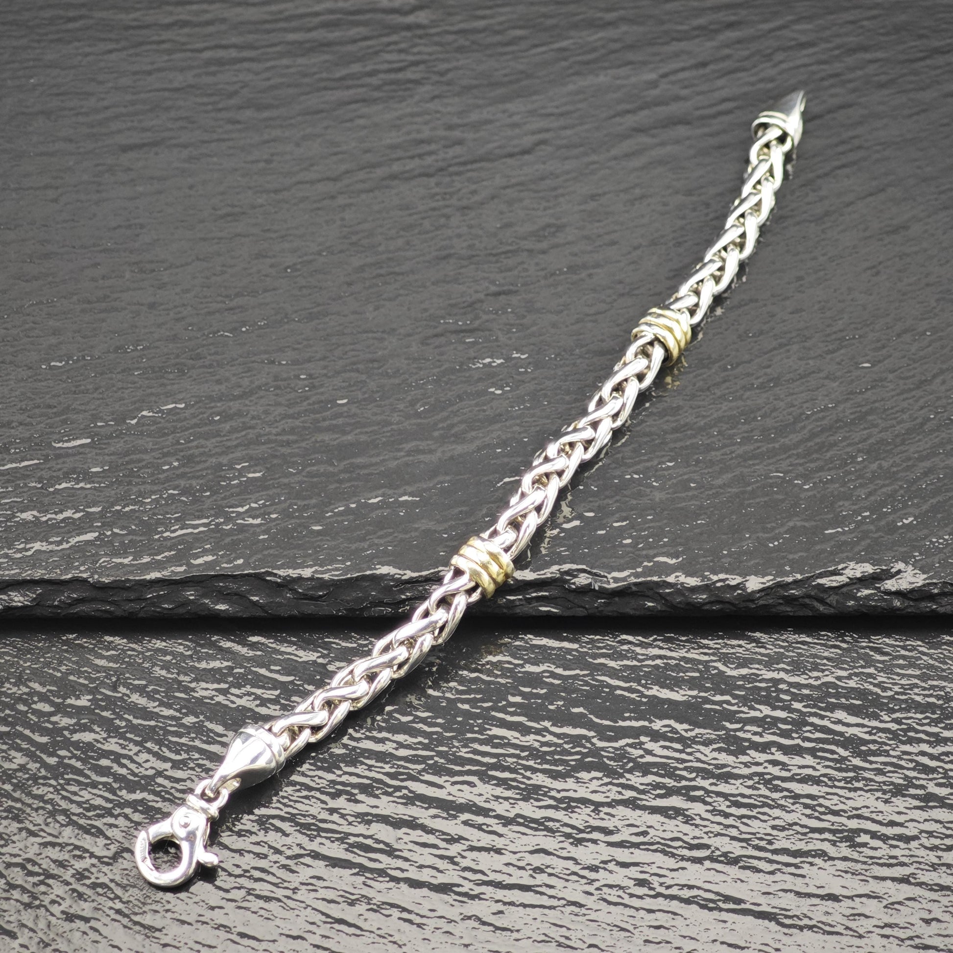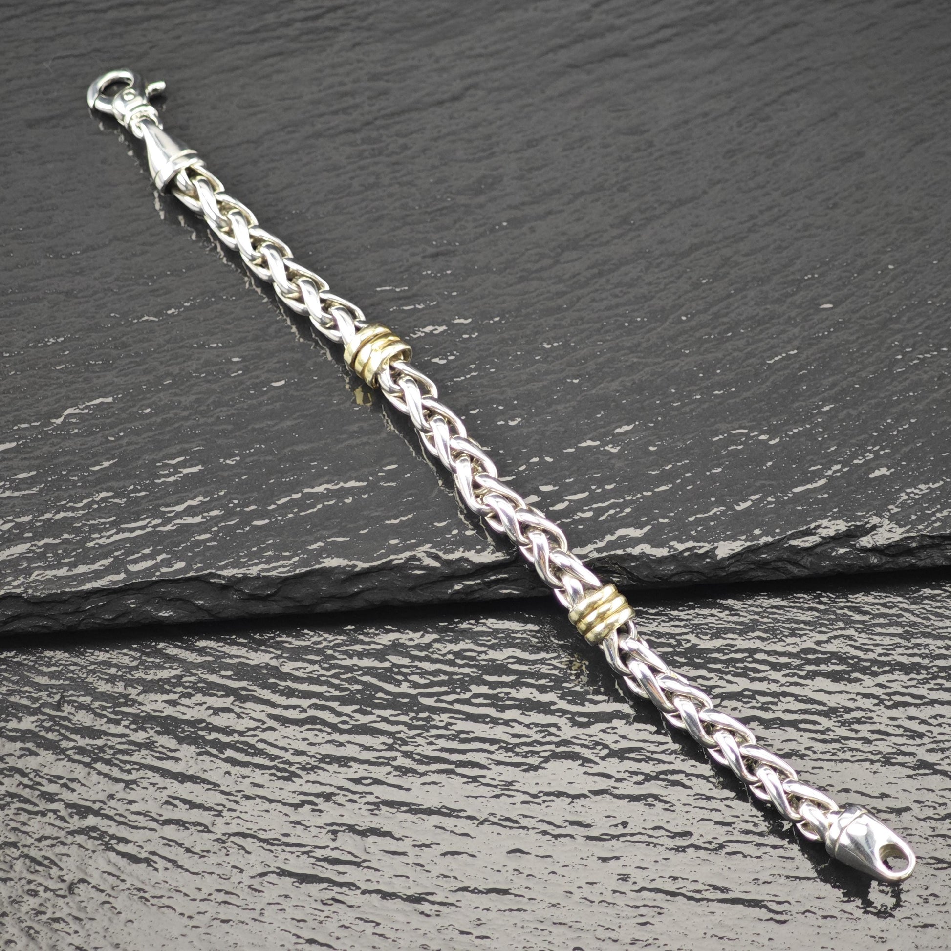 - Features two tone links with subtle gold accents that are lightly faded on the back