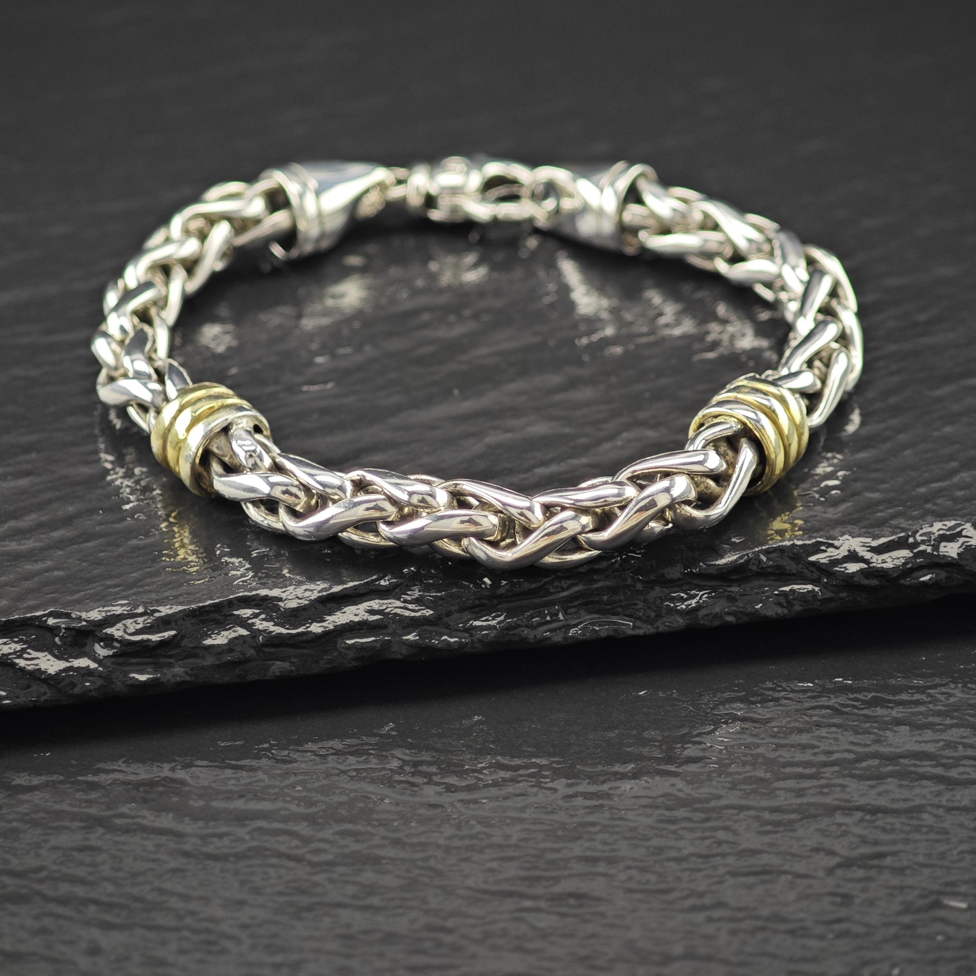 Two Tone Link Bracelet Sterling Silver Size 6 1/2"