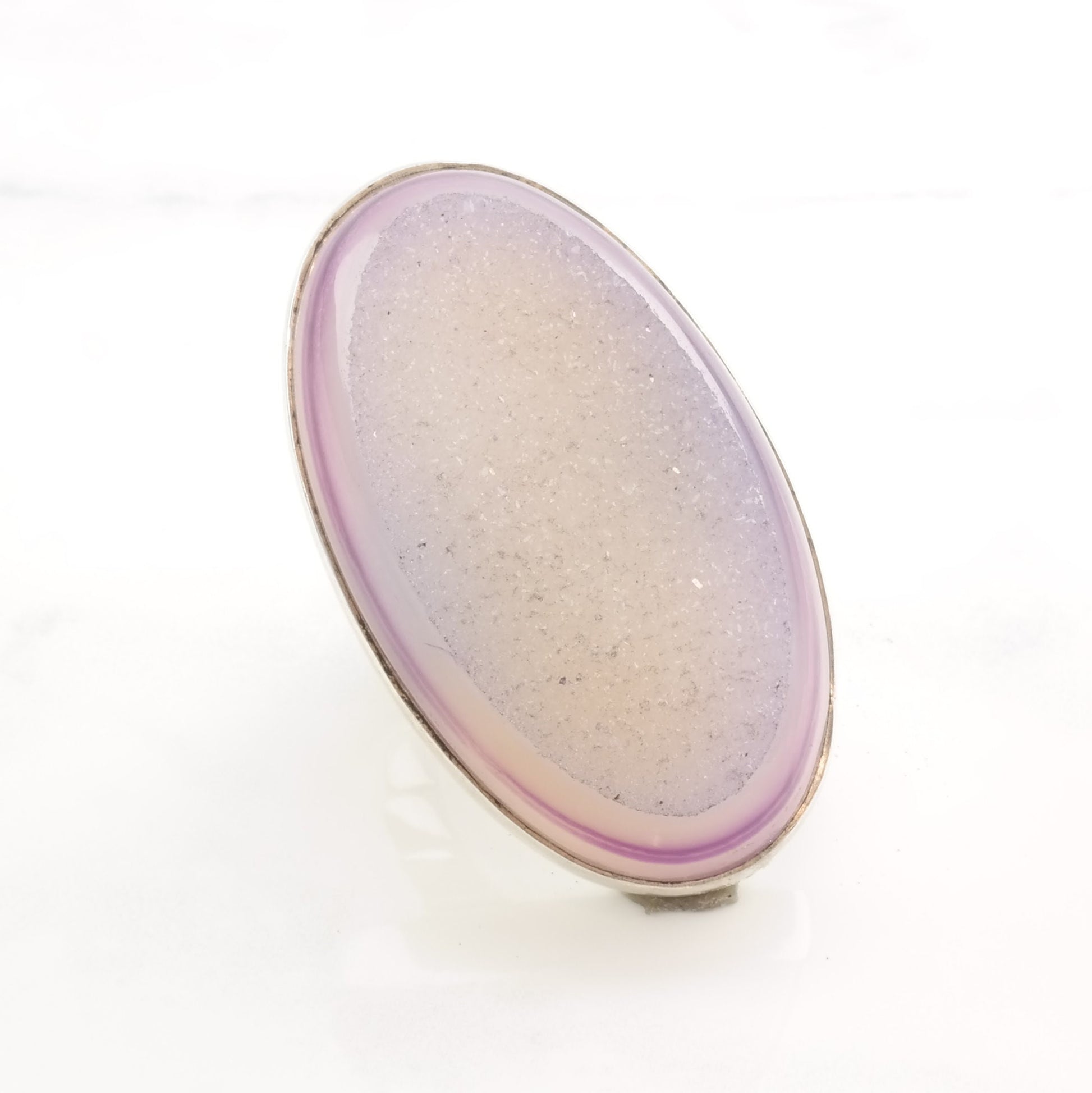 The Stone/Design is Purple, Pink, White Druzy Natural, treatment unknown
