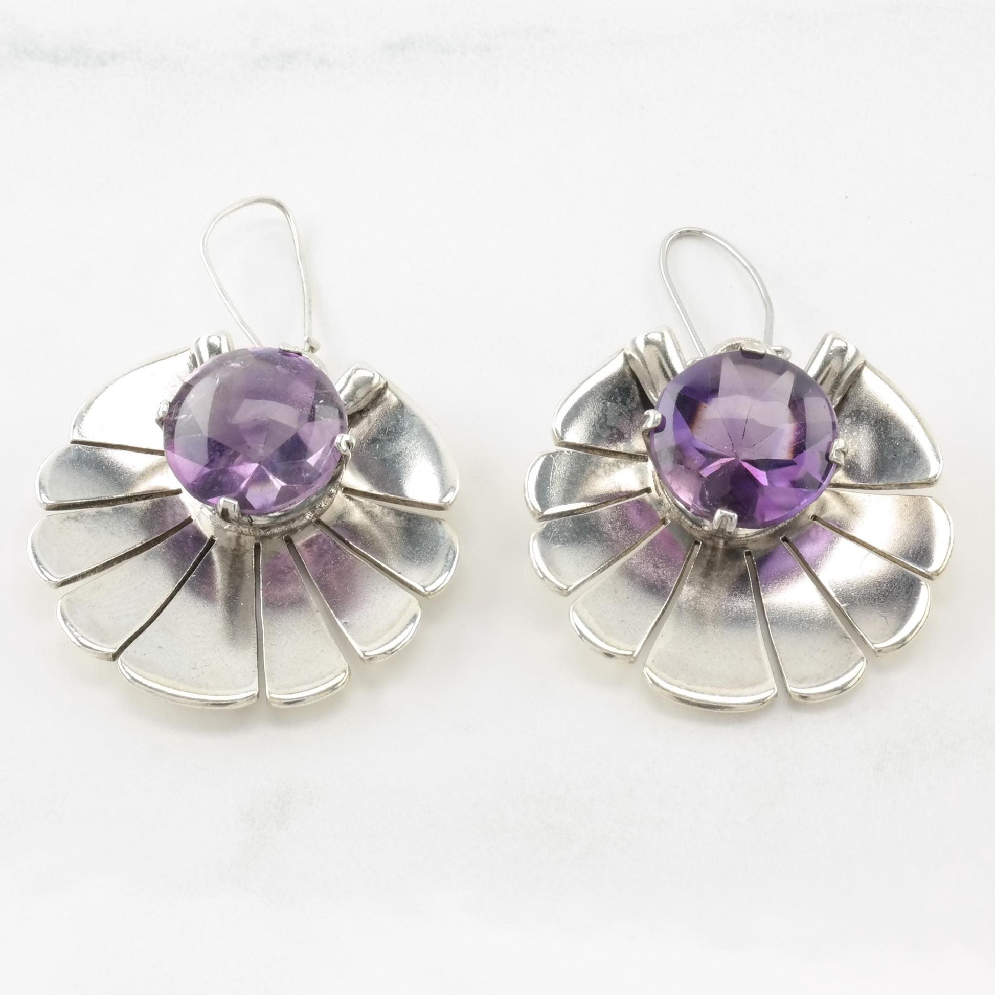 Vintage Amethyst Shell Sterling Silver Kidney Wire Earrings