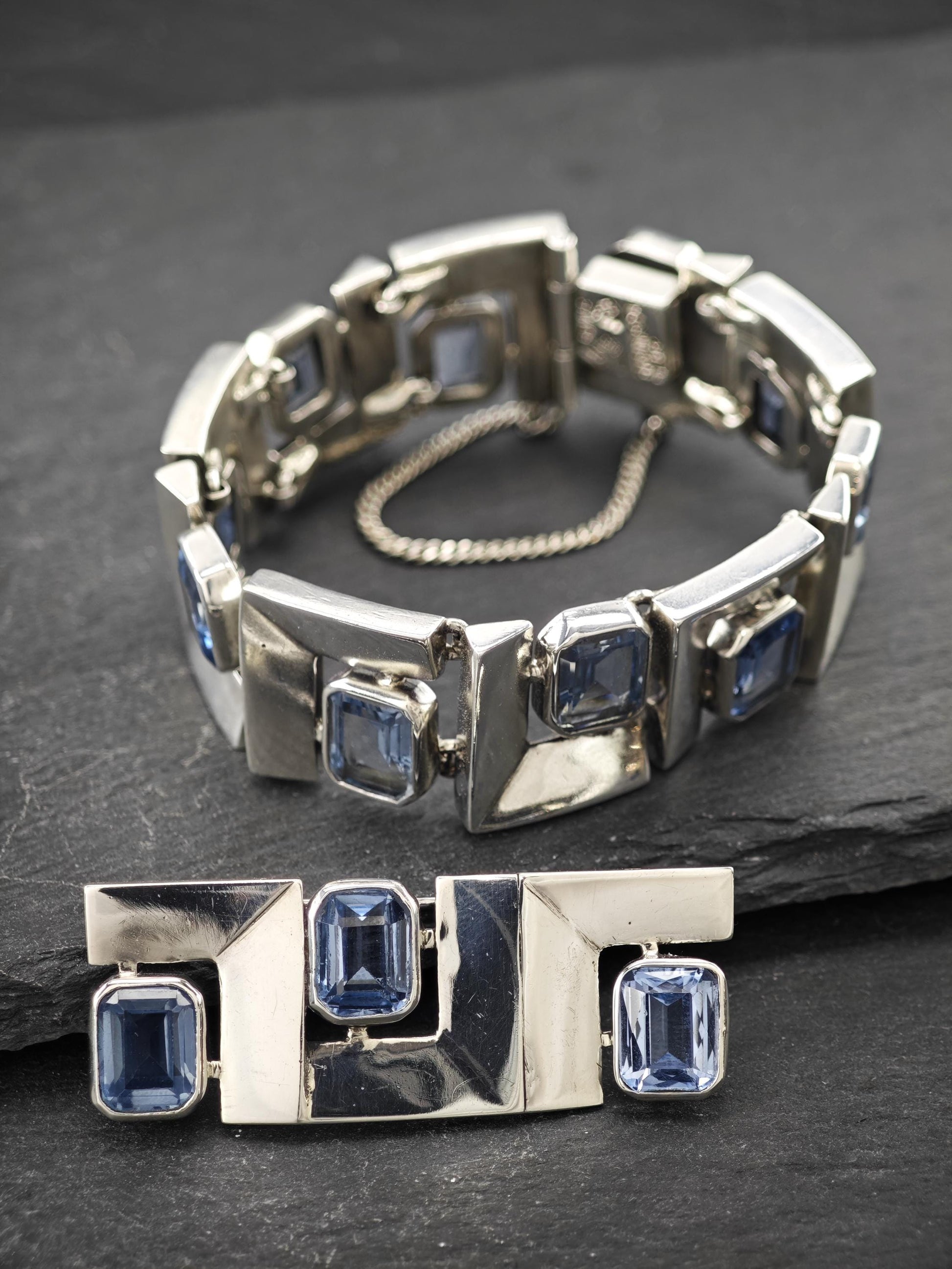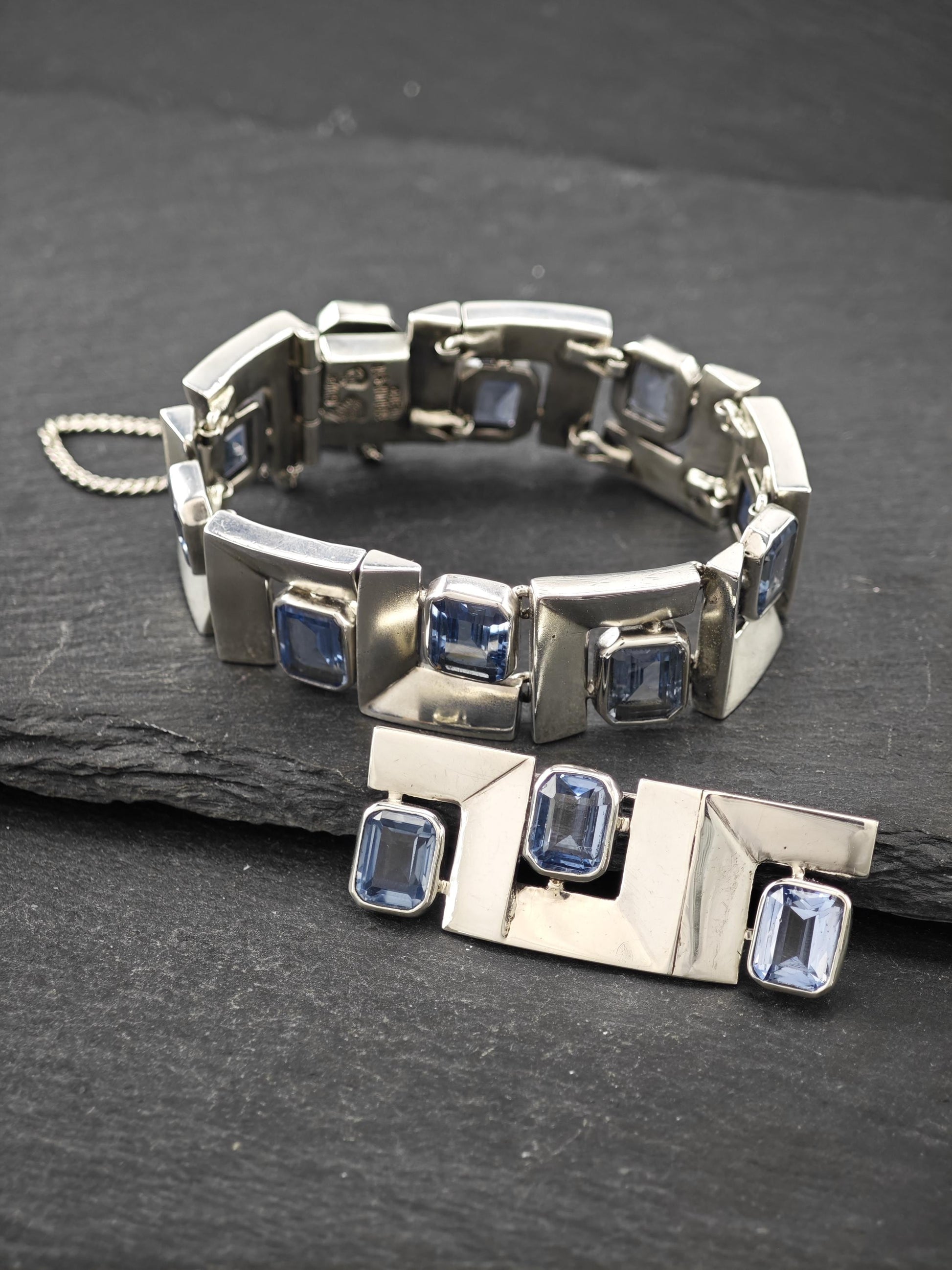 This Antonio Pineda Taxco Bracelet, Brooch Set Sterling Silver With Spinel