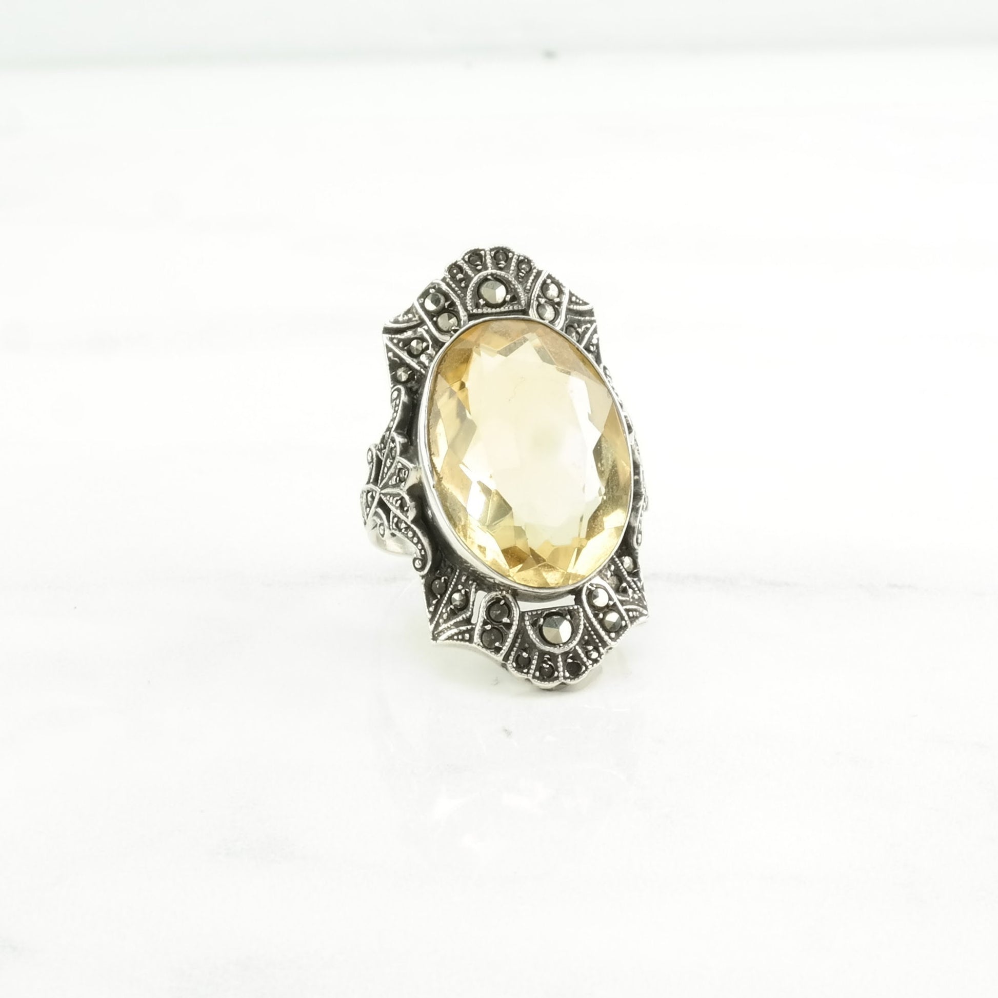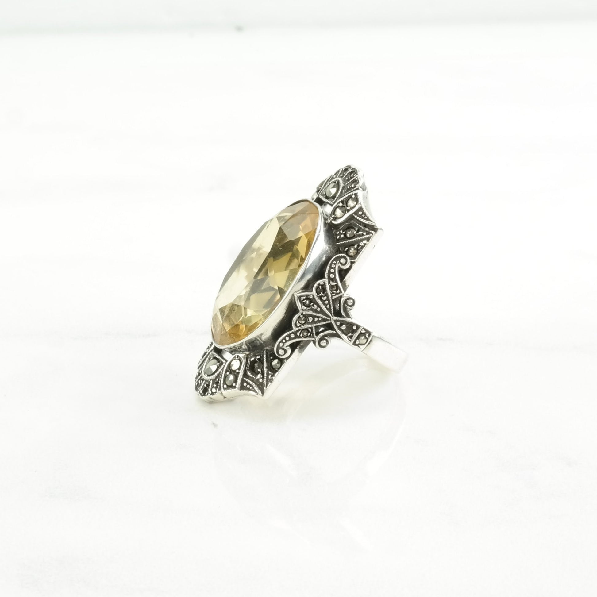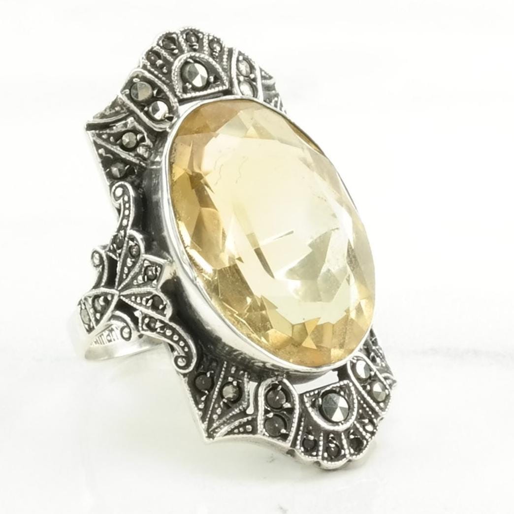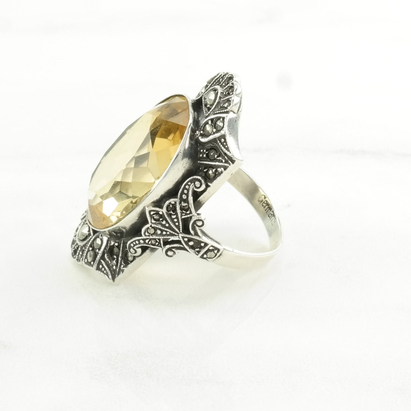 Vintage Art Deco, Germany Silver Ring Citrine Sterling Yellow Size 7 3/4