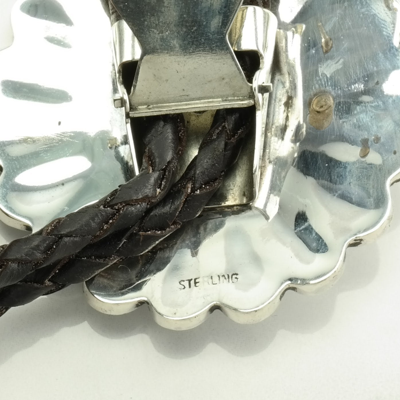 Vintage Bolo Tie Native American Sterling Silver Feather, Sun Inlay Necklace