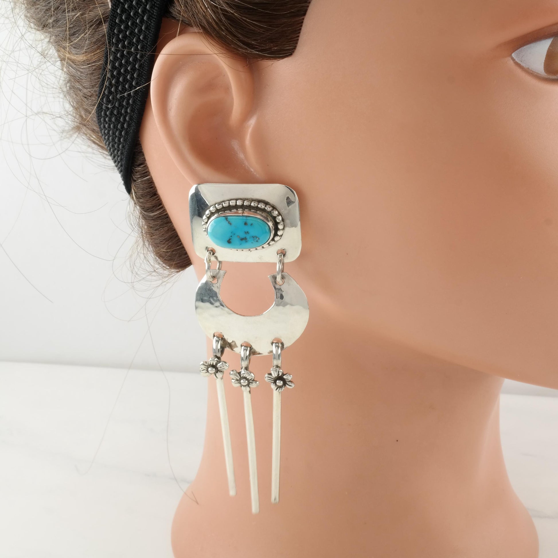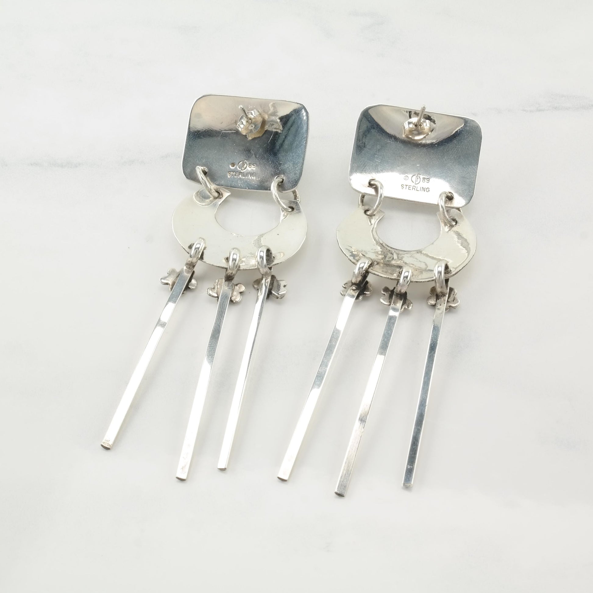 These vintage sterling silver earrings are 3 1/2" inches long, 1 1/8" inches wide
