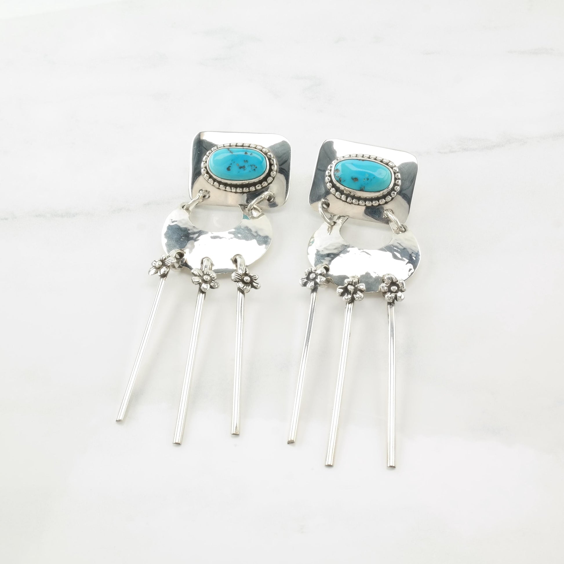 Vintage Carol Felley Sleeping Beauty, Turquoise Hammered Sterling Silver Pierced Earrings