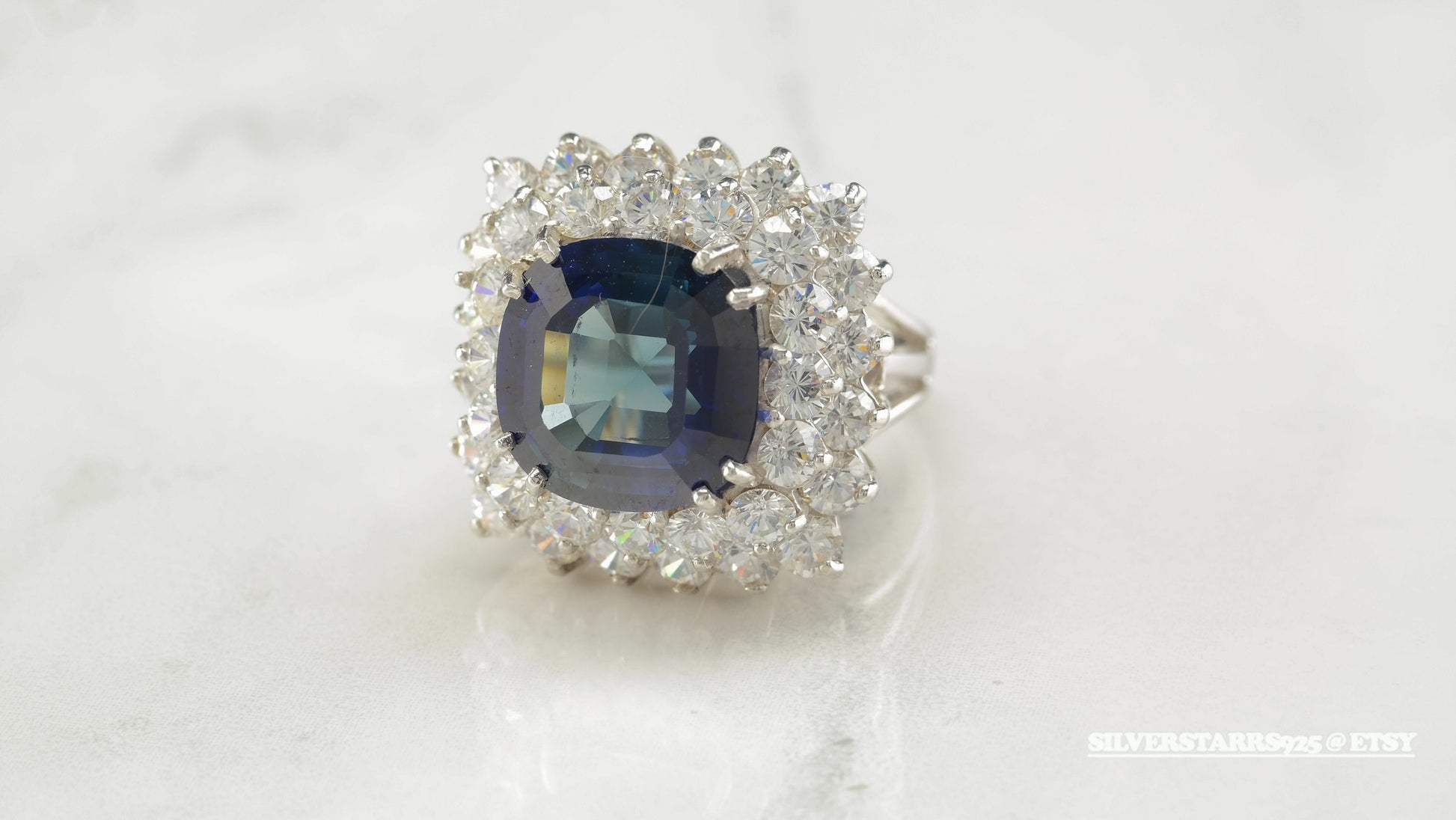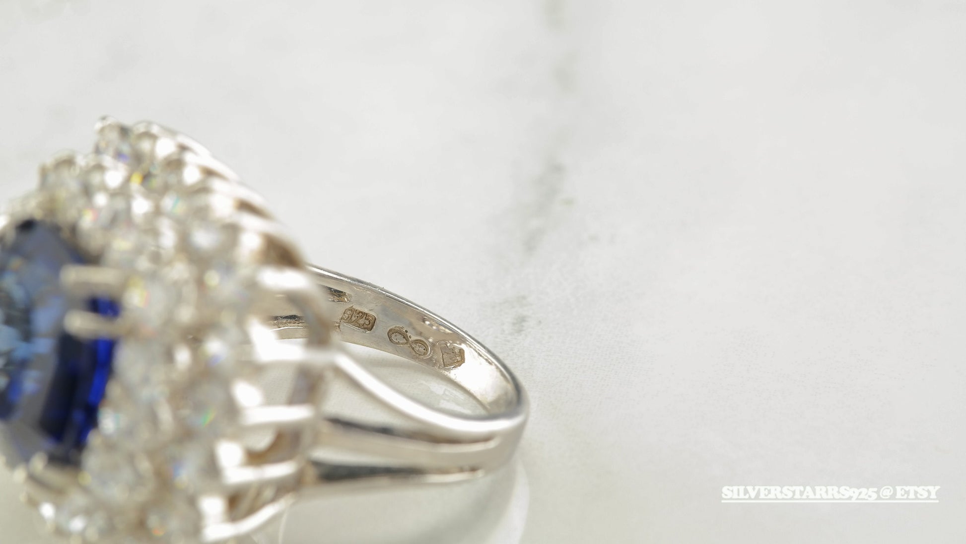 Vintage Cocktail Sterling Silver Ring Size 6.5 Blue Sapphire CZ
