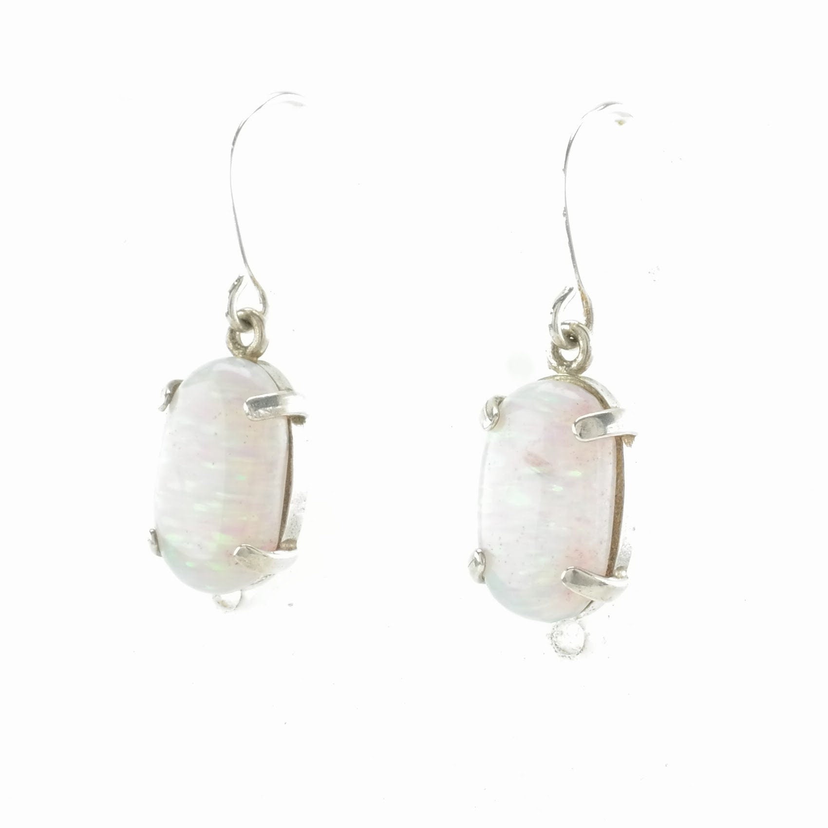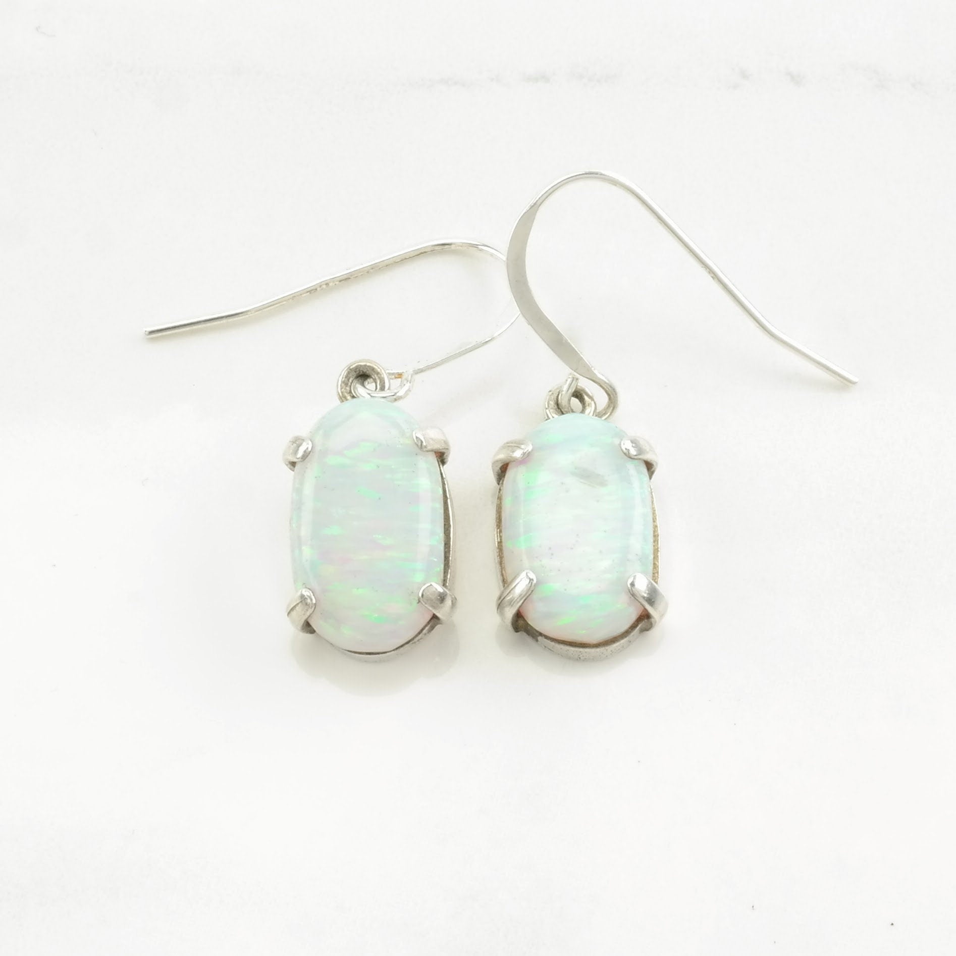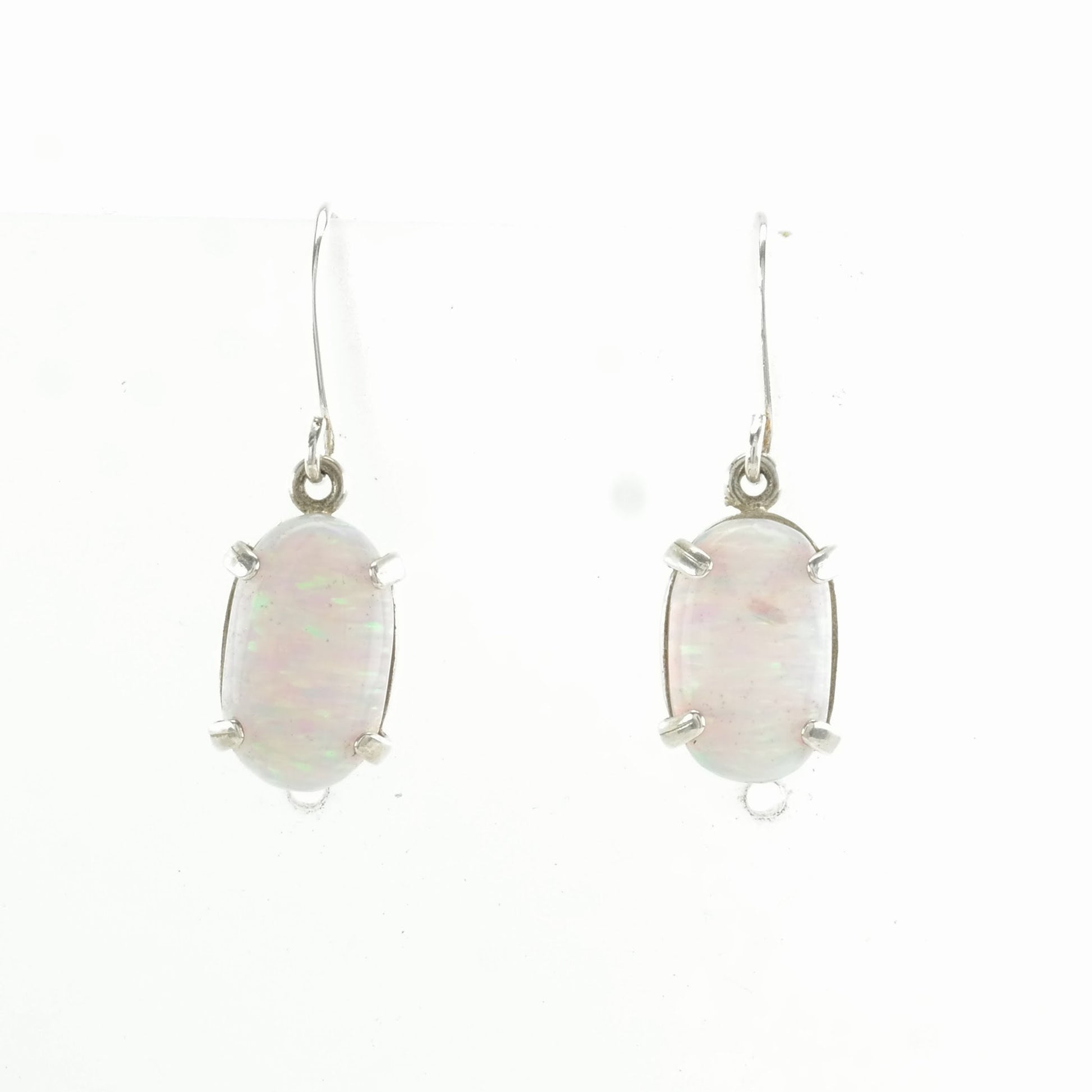 Vintage Created Opal Earrings Sterling Silver Fish Hook
