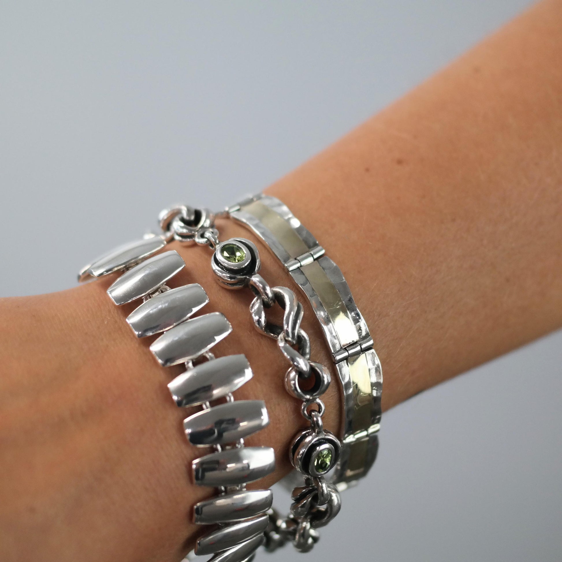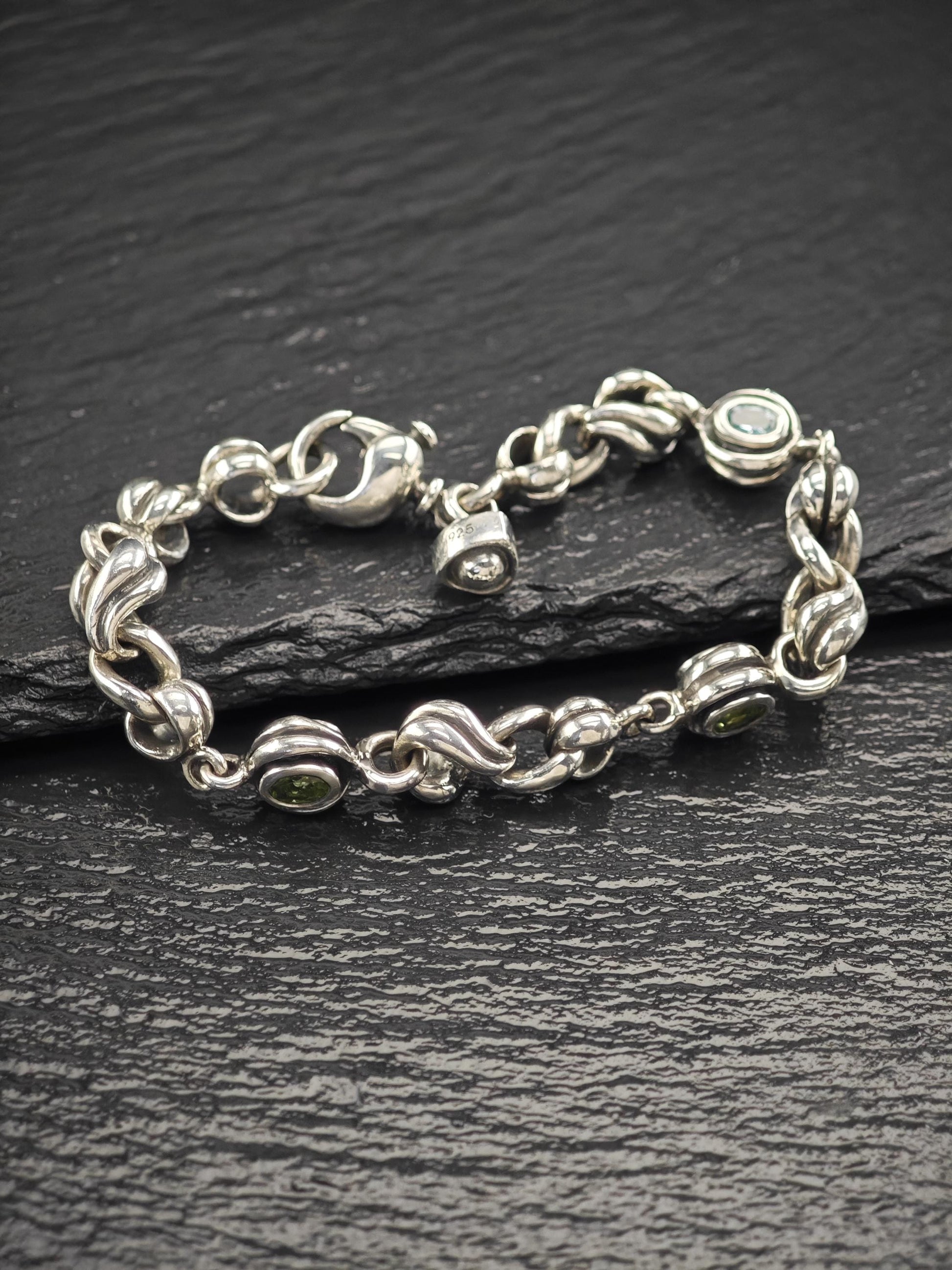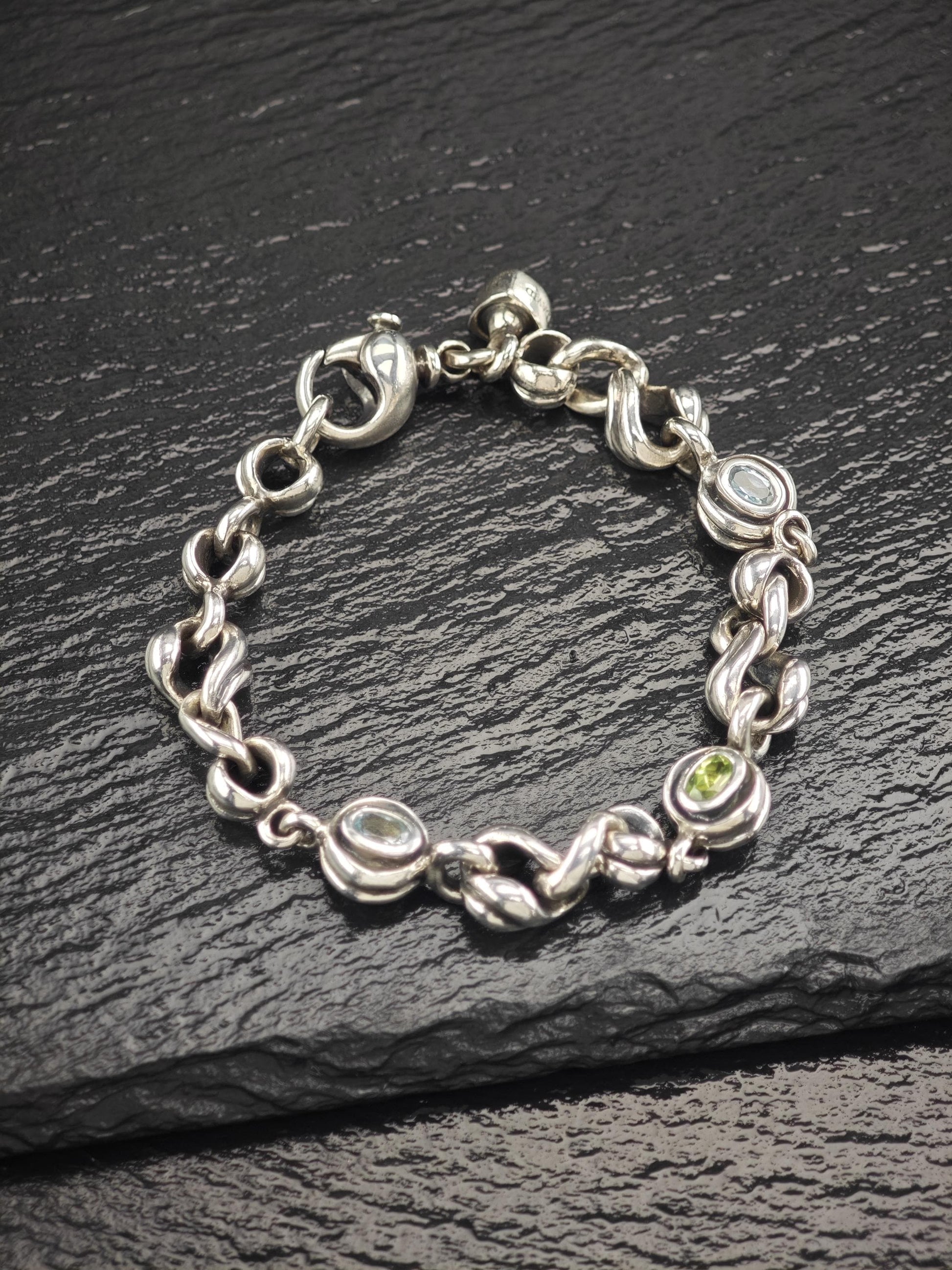 Vintage David Wysor, Topaz, Peridot Reversible Hand Made Bracelet Sterling Silver