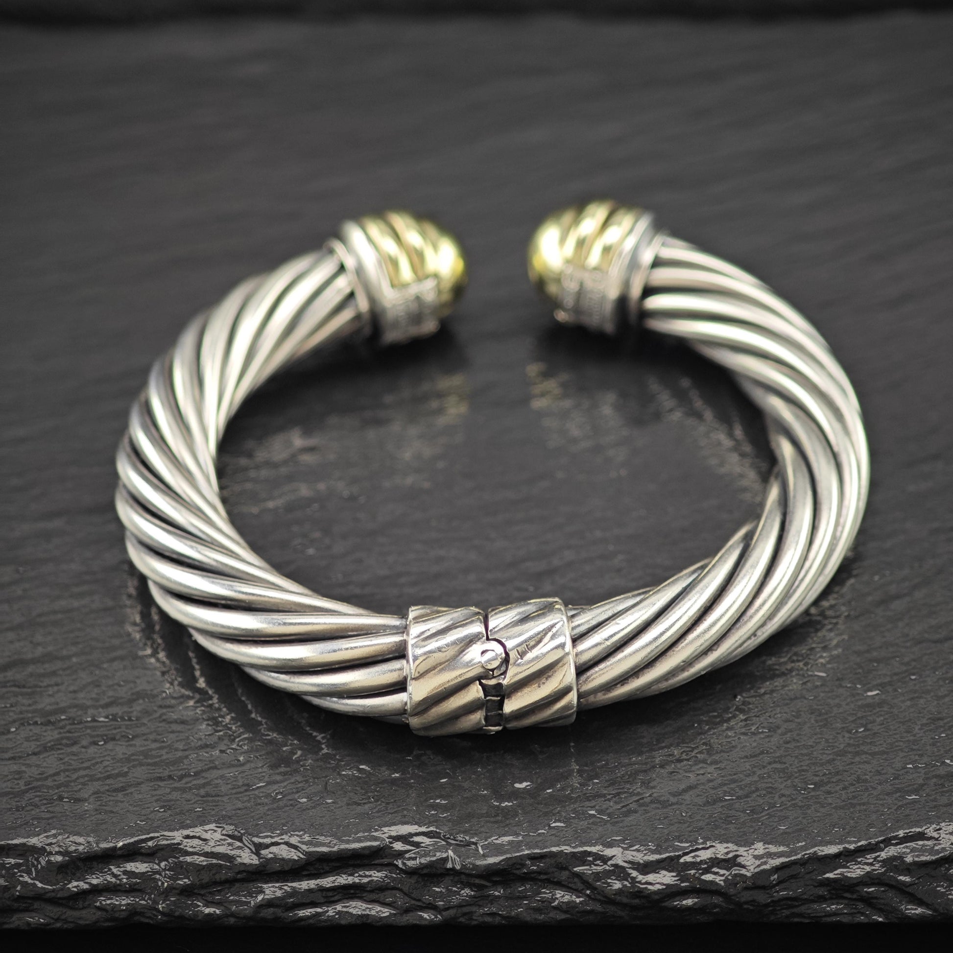 Vintage David Yurman Cable Cuff Bracelet, 14K Gold & Sterling Silver (Size 6.25)