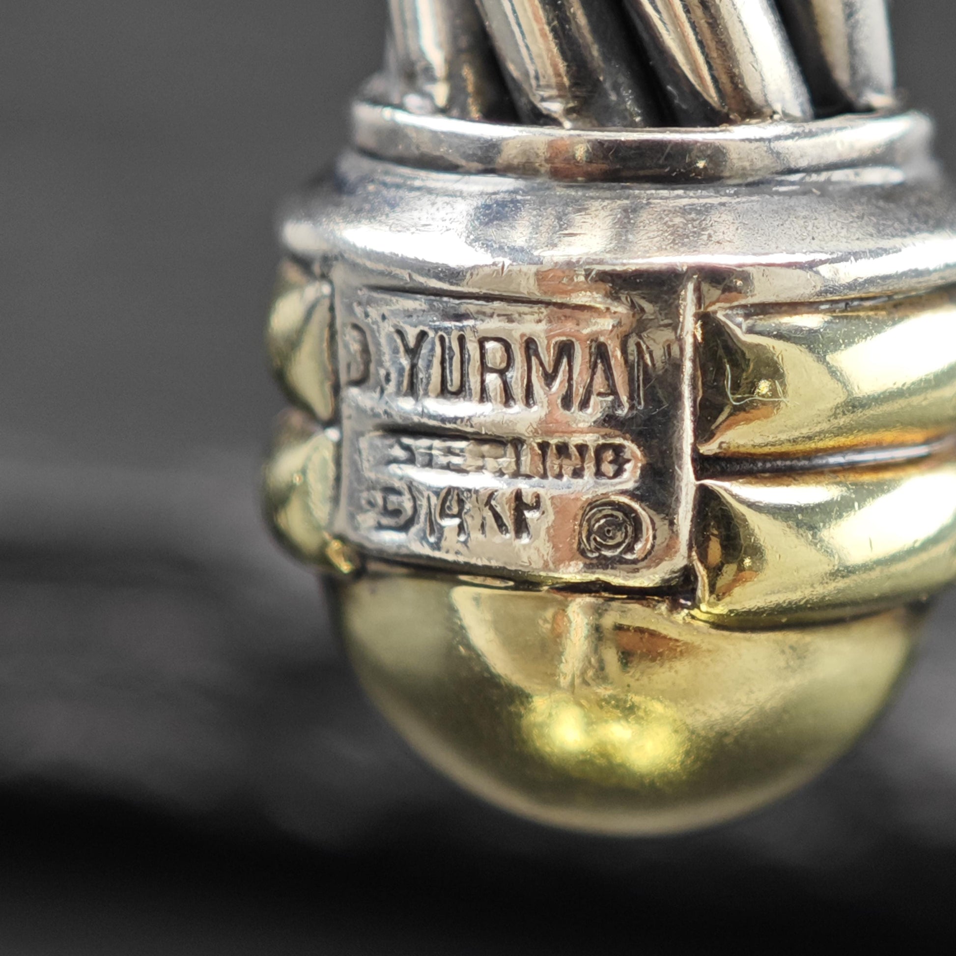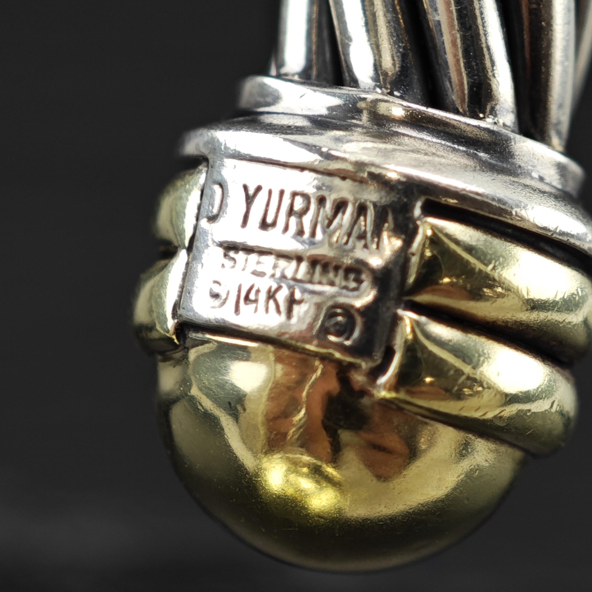 - Crafted from sterling silver stamped with D. Yurman, sterling, copyright symbol, and 14kt gold accents