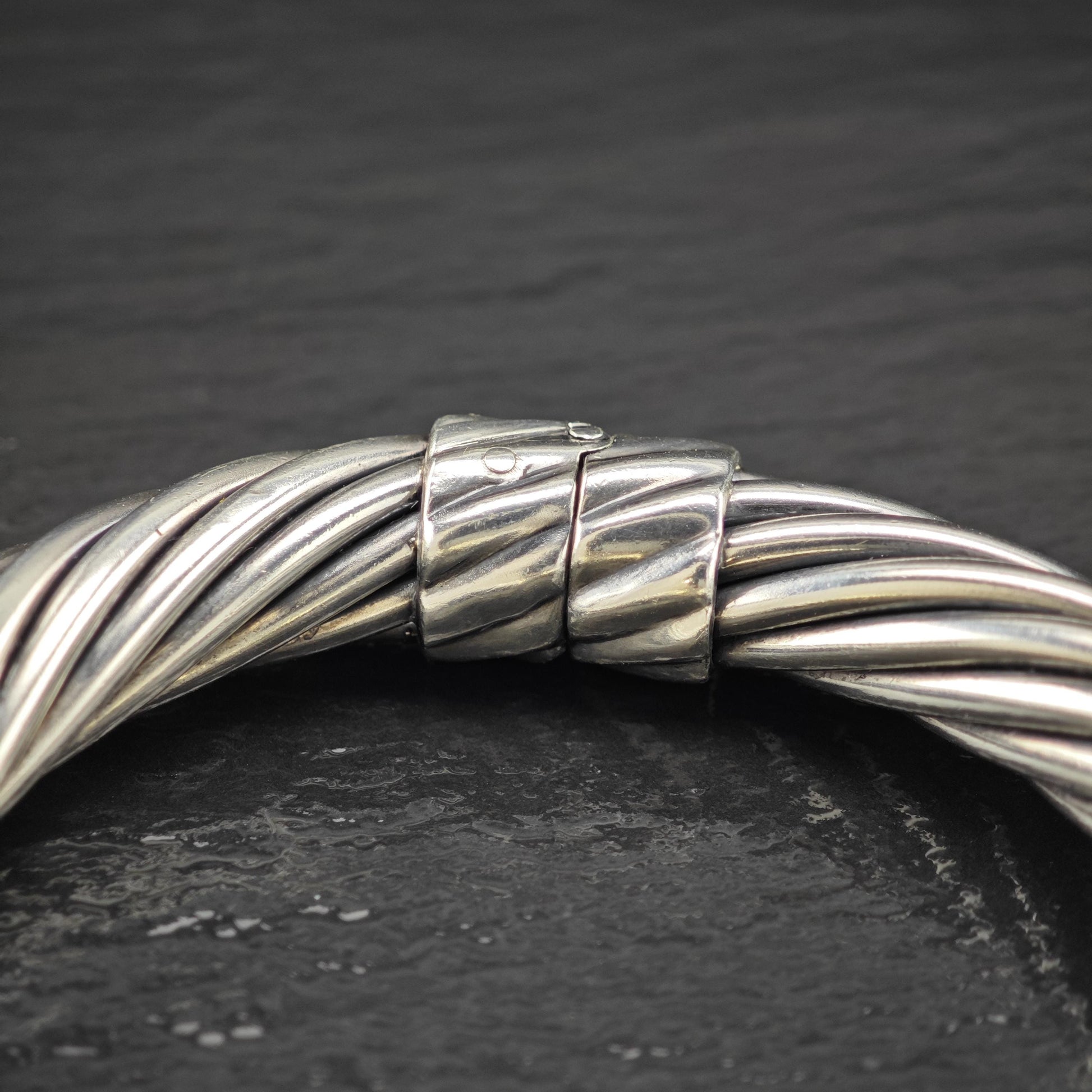 Discover the timeless elegance of this vintage cuff bracelet, a true testament to David Yurman's masterful design. Crafted from sterling silver with a luxurious 14K gold hinged closure, this silver cuff offers both style and comfort for everyday wear or special occasions. Perfect as a vintage jewelry piece or a thoughtful holiday gift, it brings a sophisticated touch to any collection.