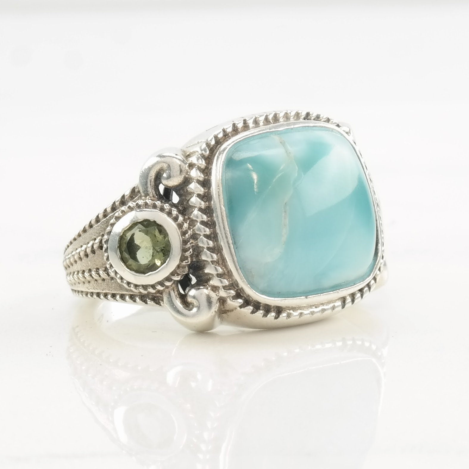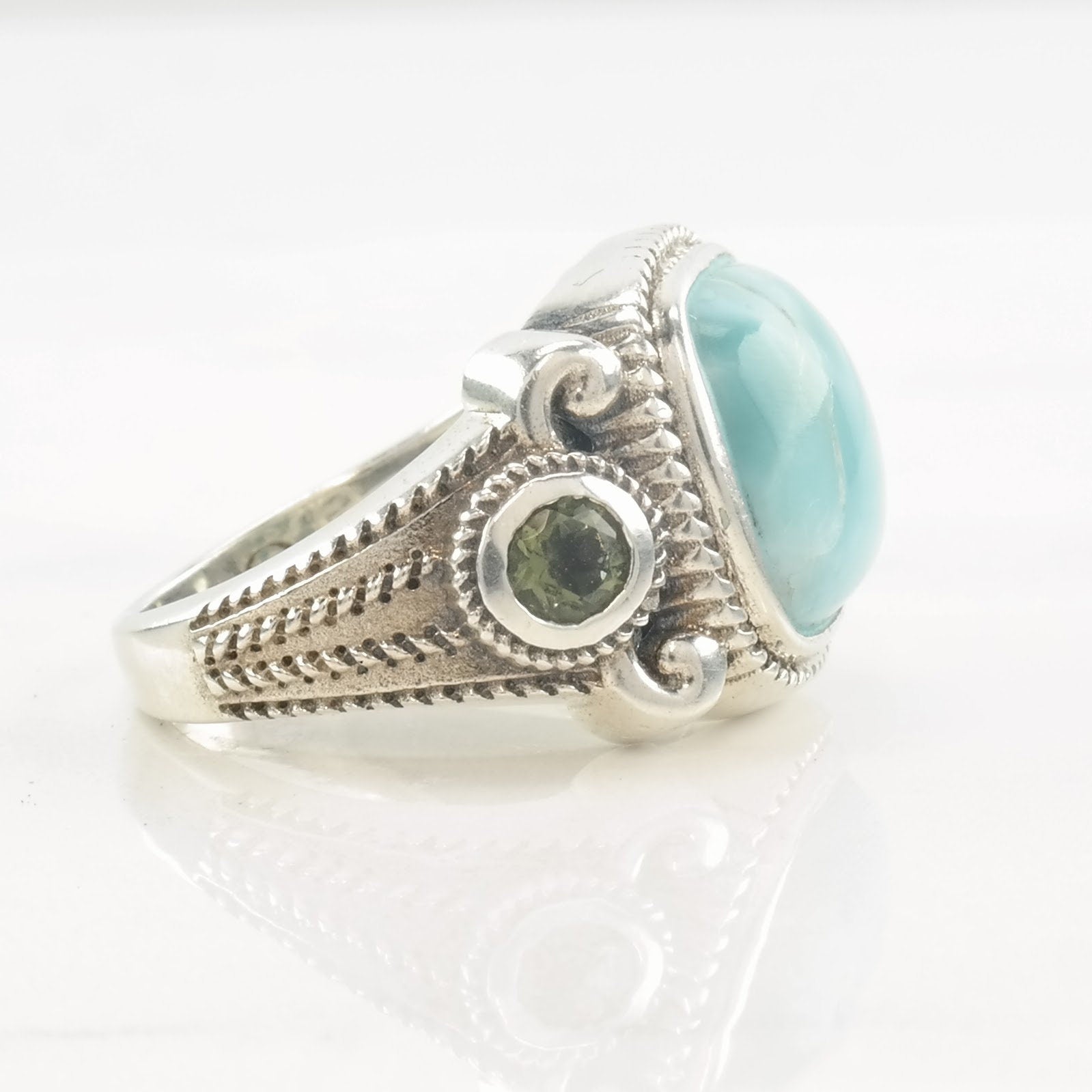 Vintage Designer Ring Larimar, Peridot Sterling Silver Size 6 3/4