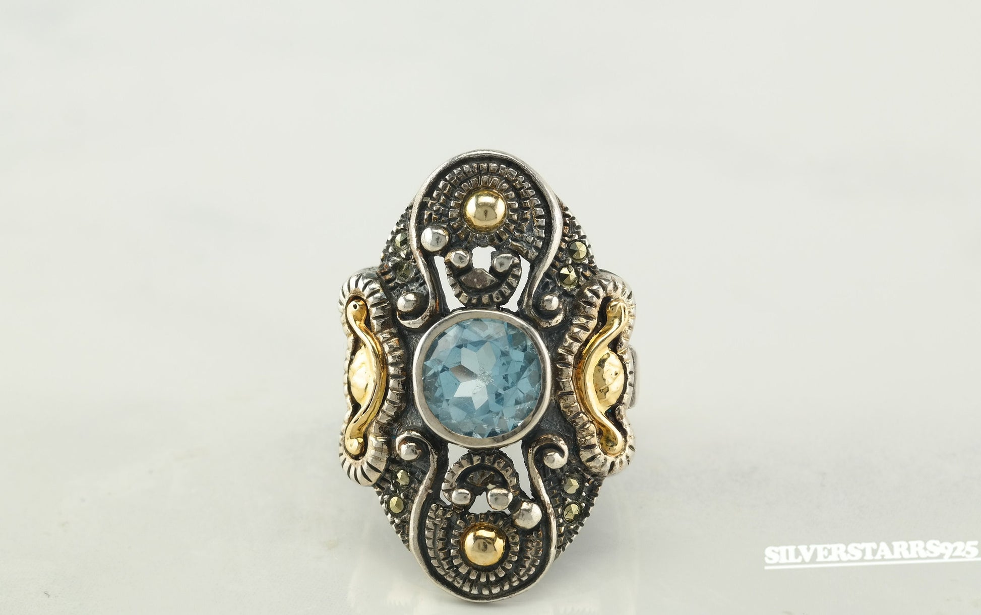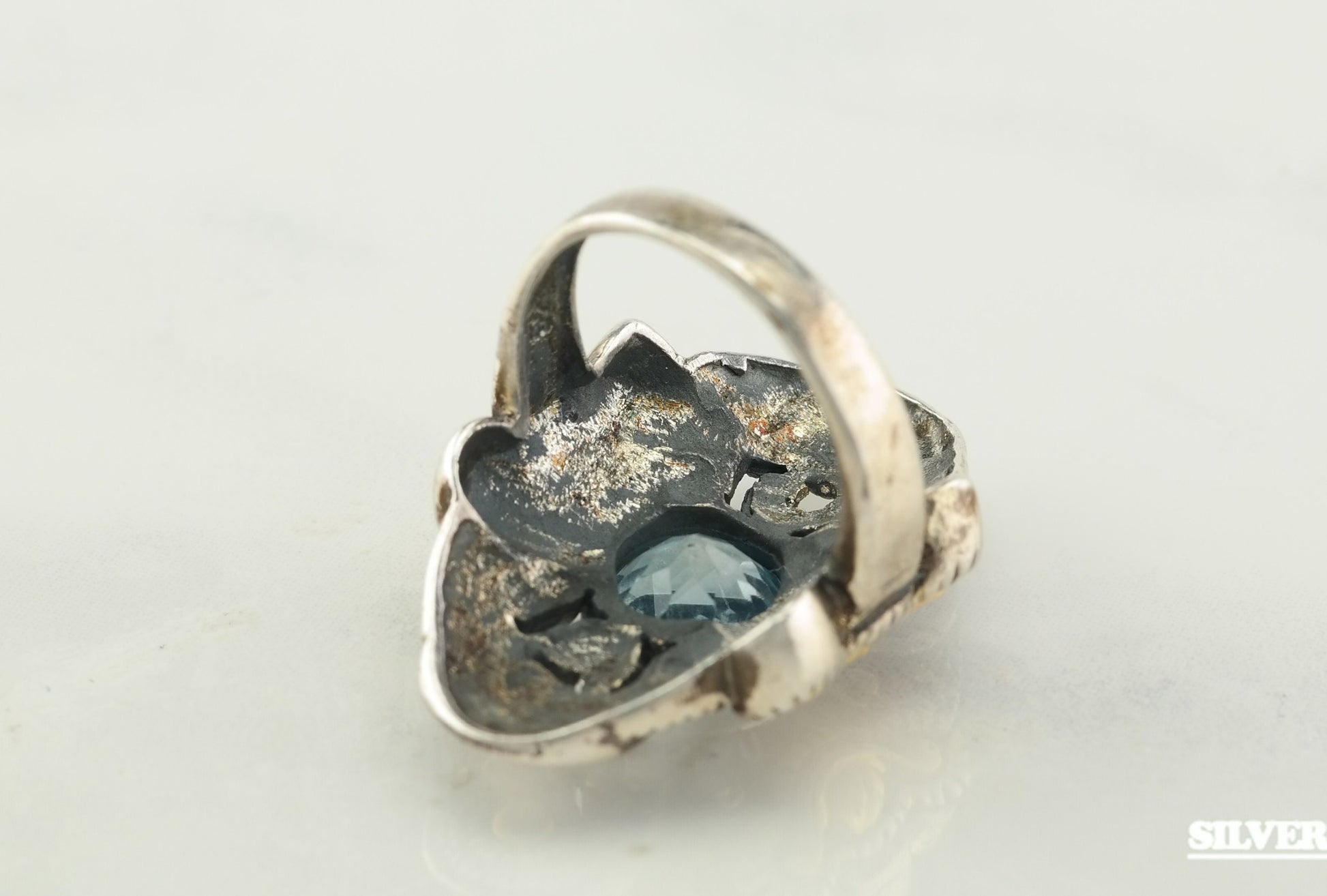 Vintage Designer Sterling Silver Ring Size 6 Blue Topaz