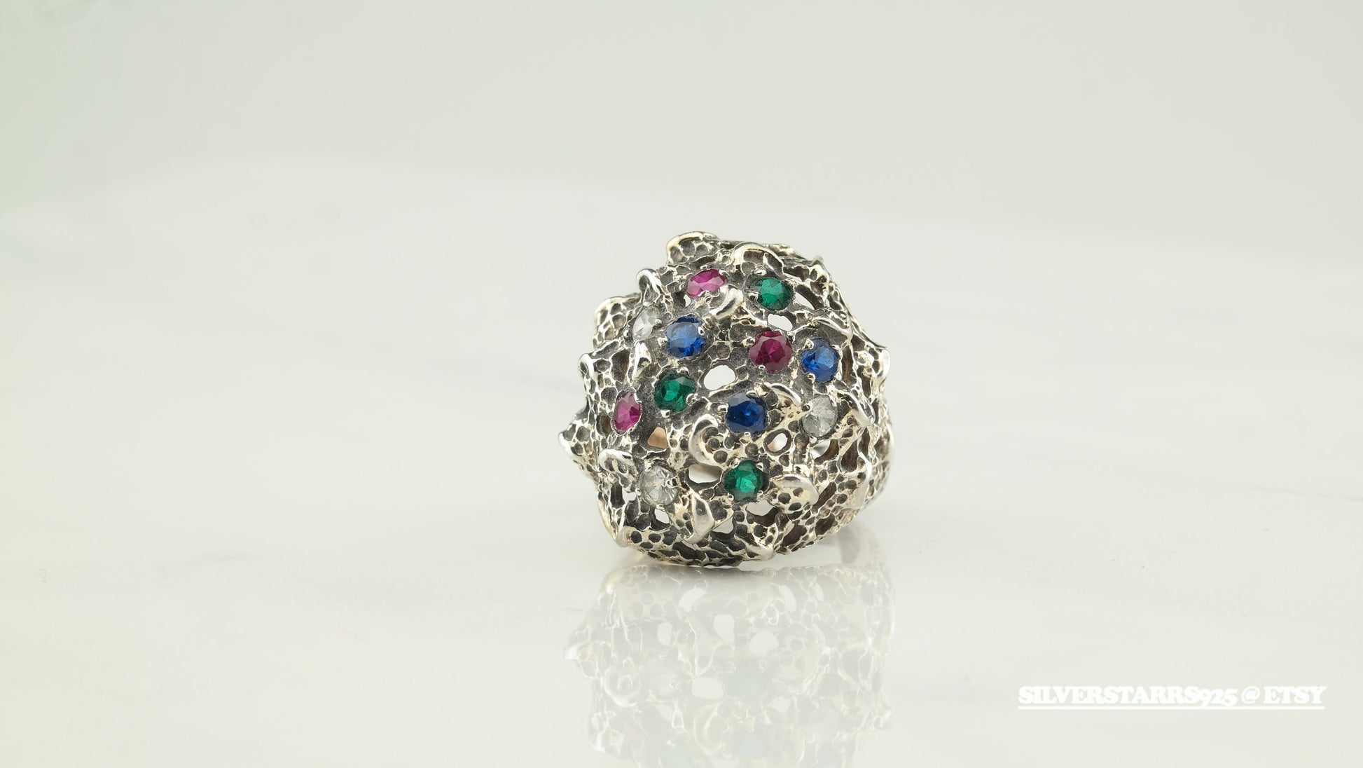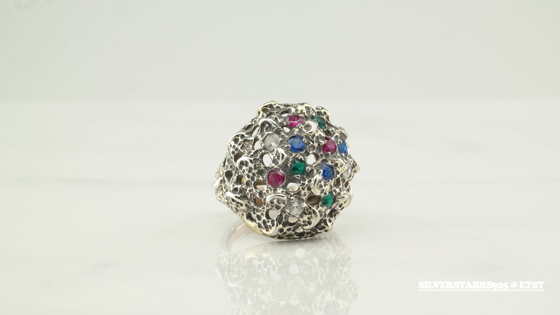 Vintage Dome Silver Ring Ruby, Topaz, Sapphire Sterling Size 7