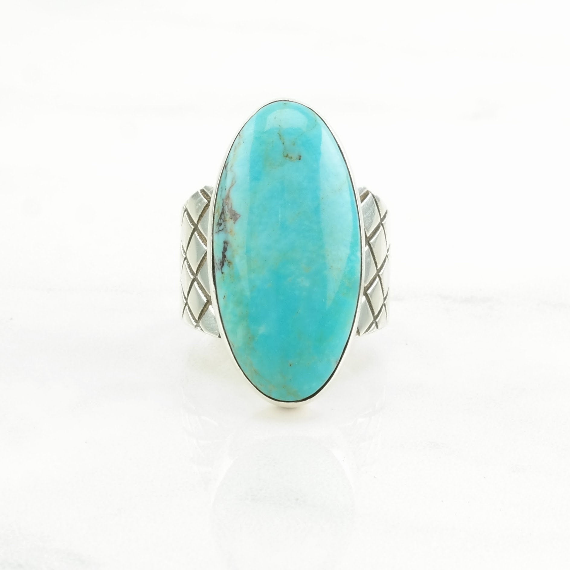 The Stone/Design is Blue Turquoise Stamped Band Natural, industry standard treatment if any