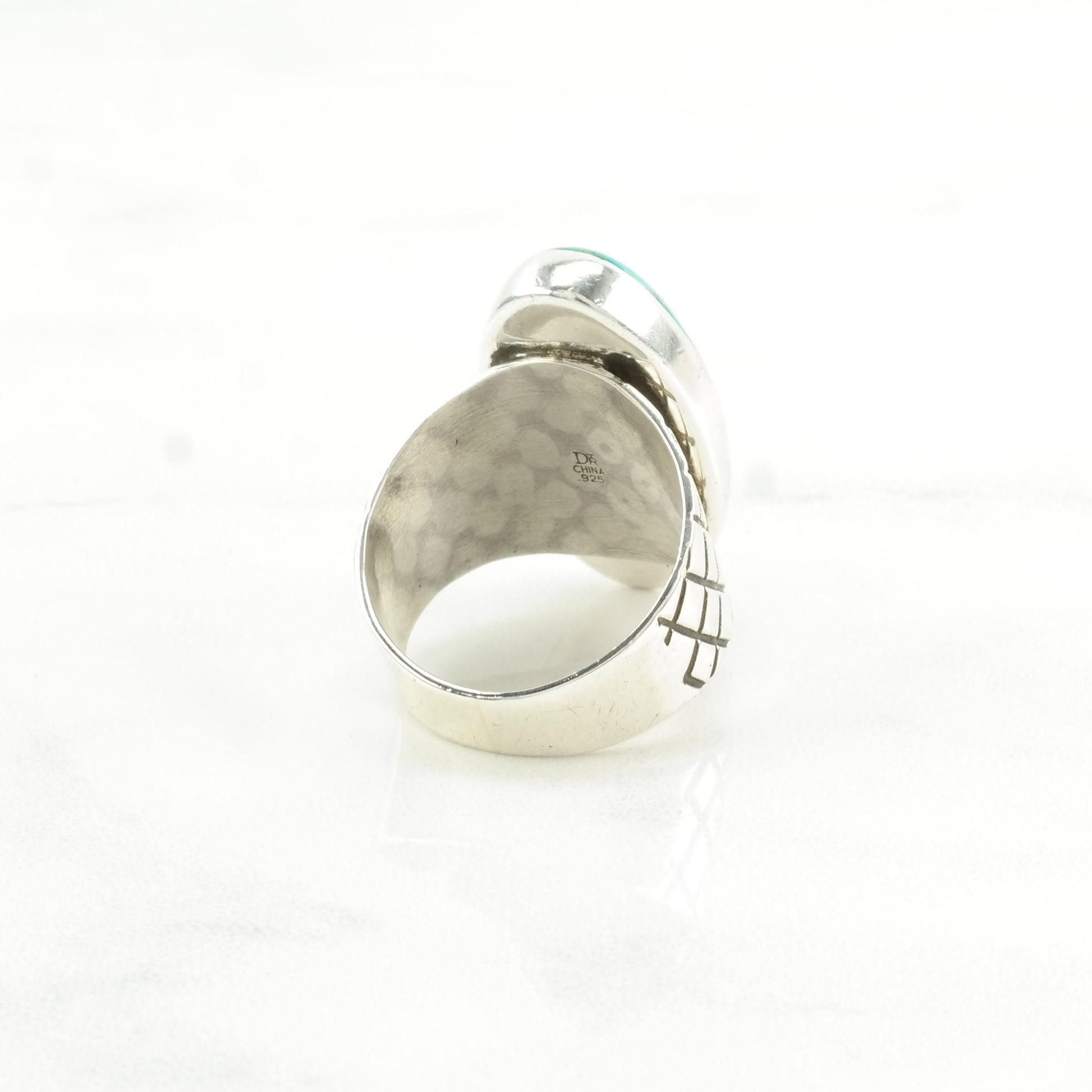 Vintage DTR Silver Ring Turquoise Stamped Band Sterling Blue Size 7 1/4