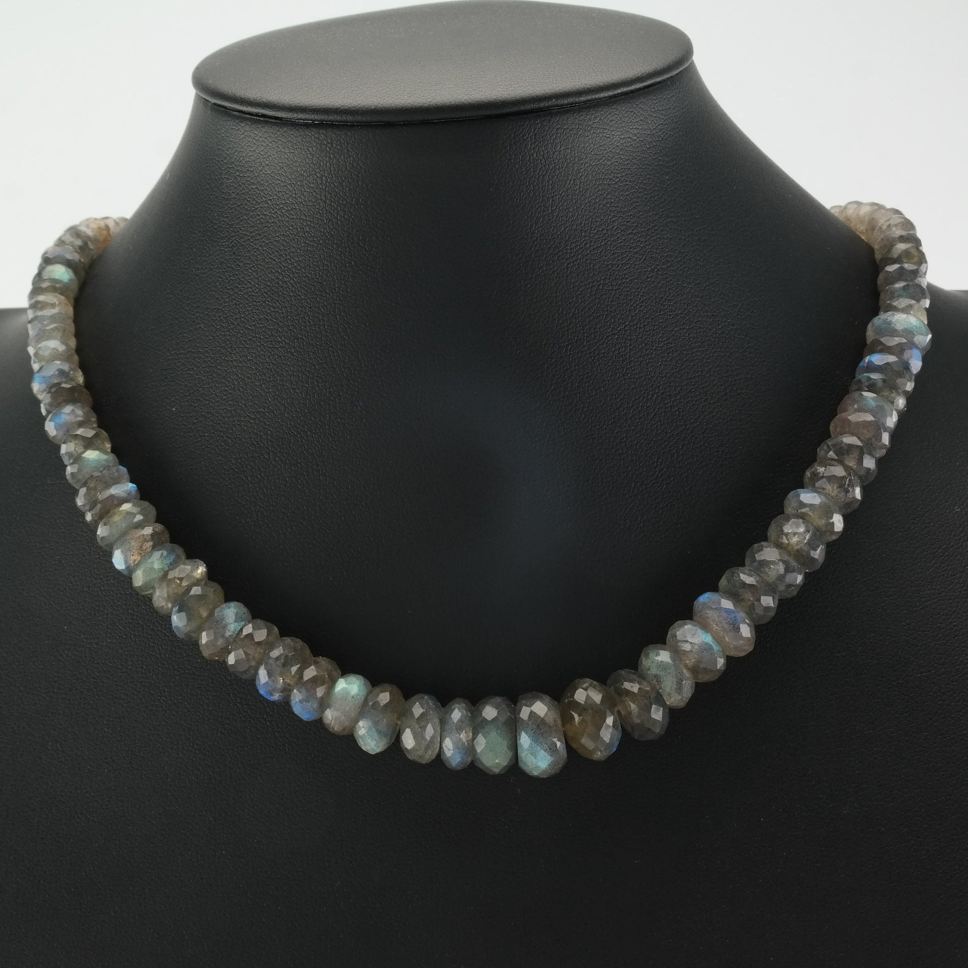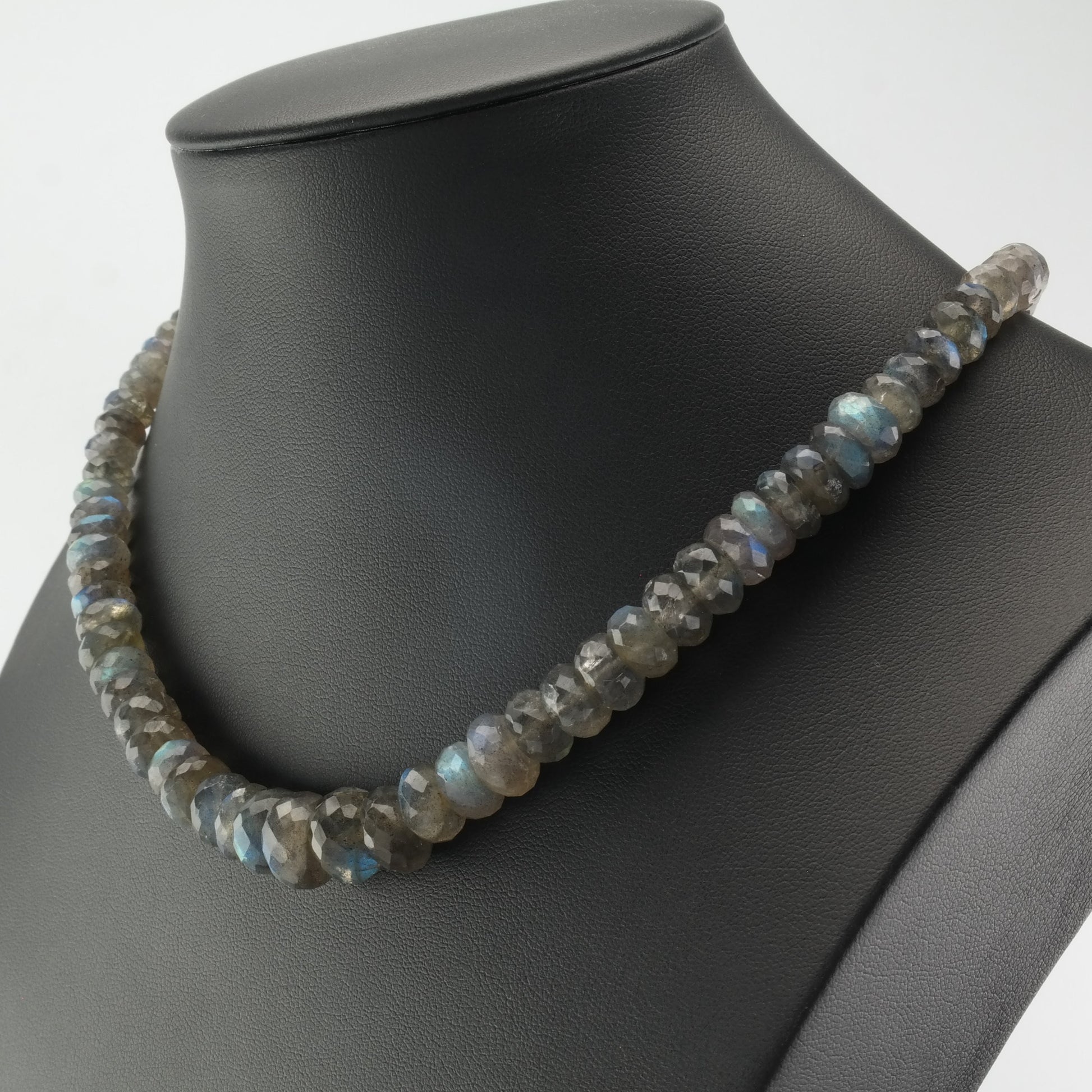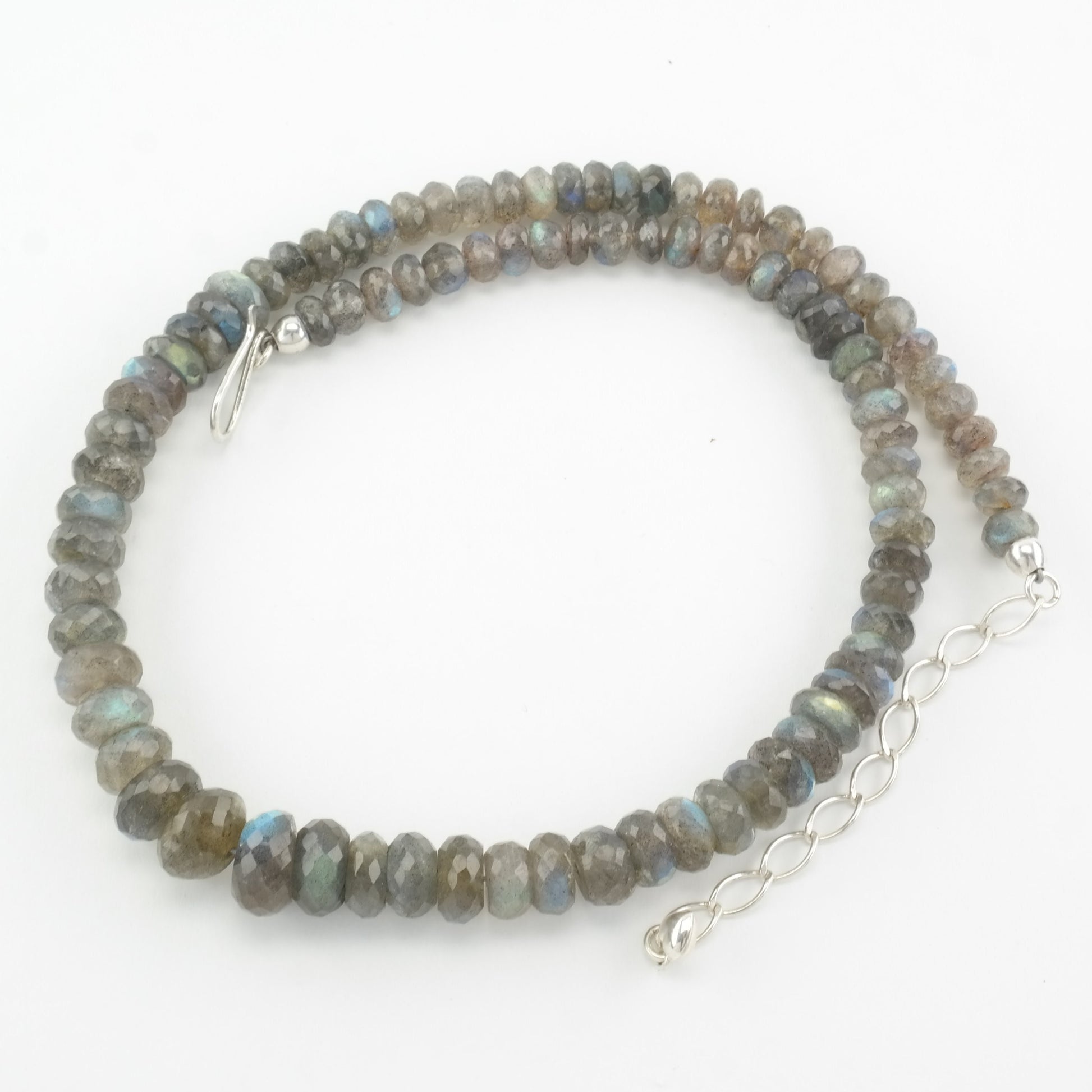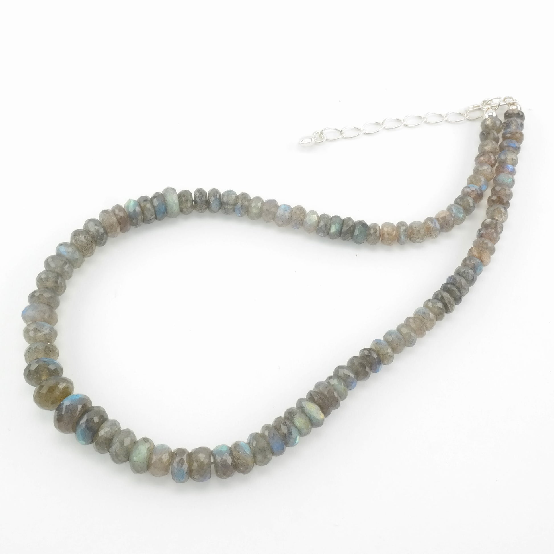Vintage DTR Sterling Silver Iridescent Labradorite Faceted Necklace