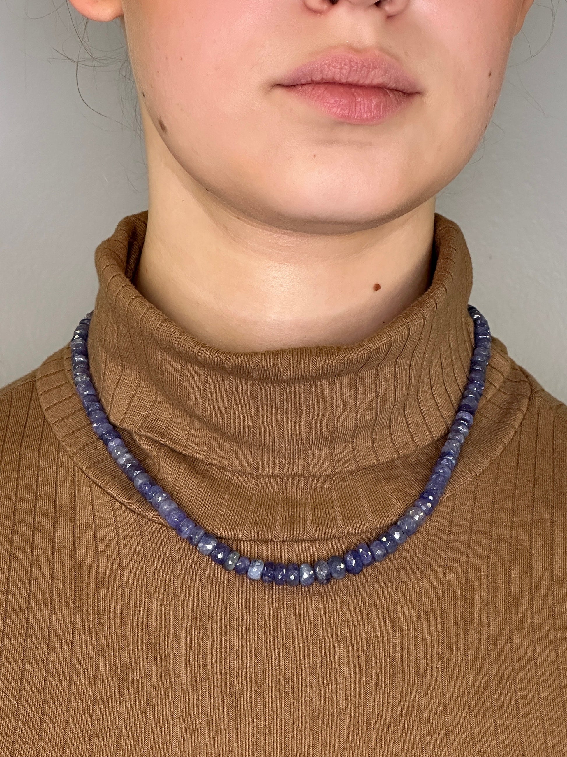 Vintage DTR Sterling Silver Opaque Tanzanite Faceted Necklace
