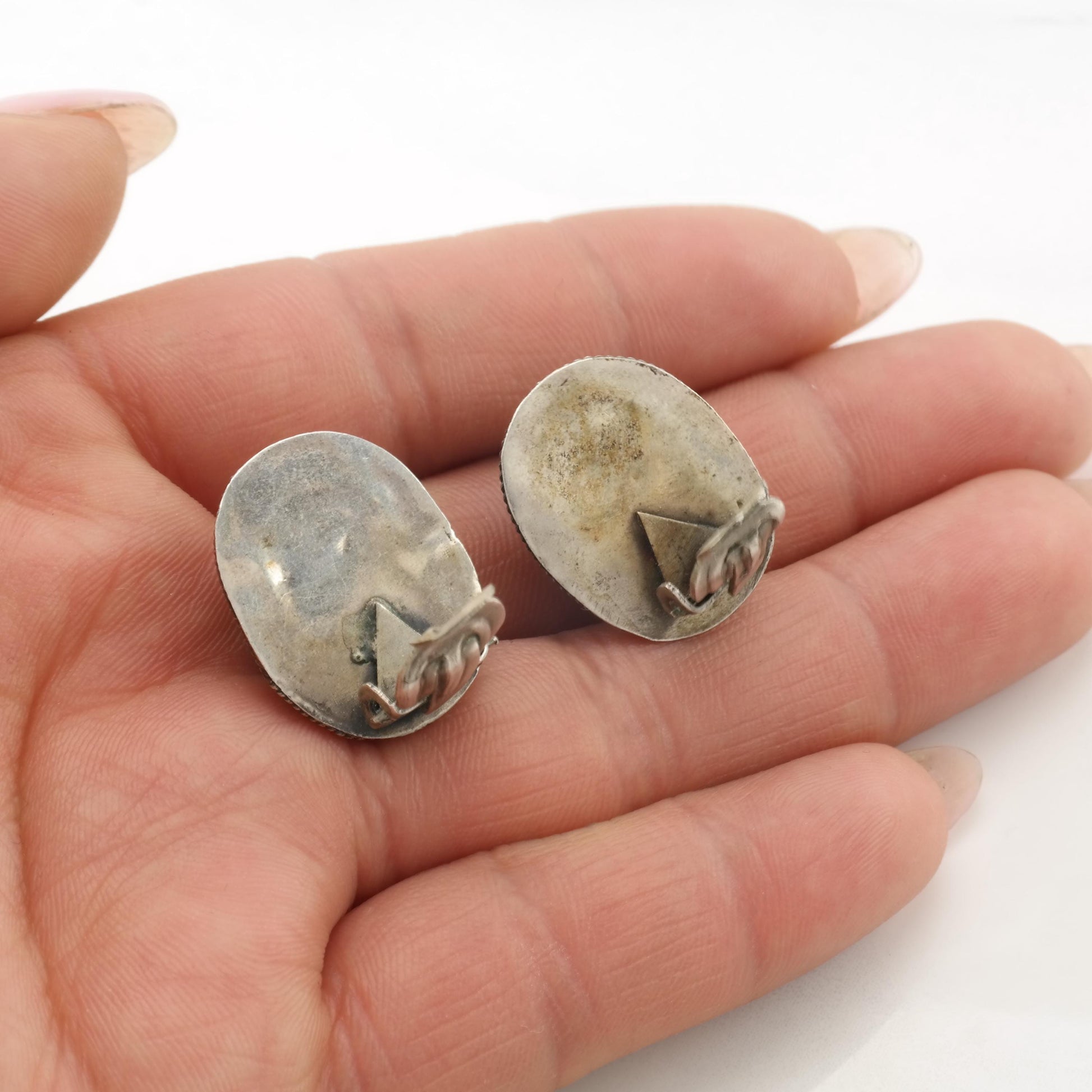 These vintage sterling silver earrings are 7/8" long, 11/16" wide