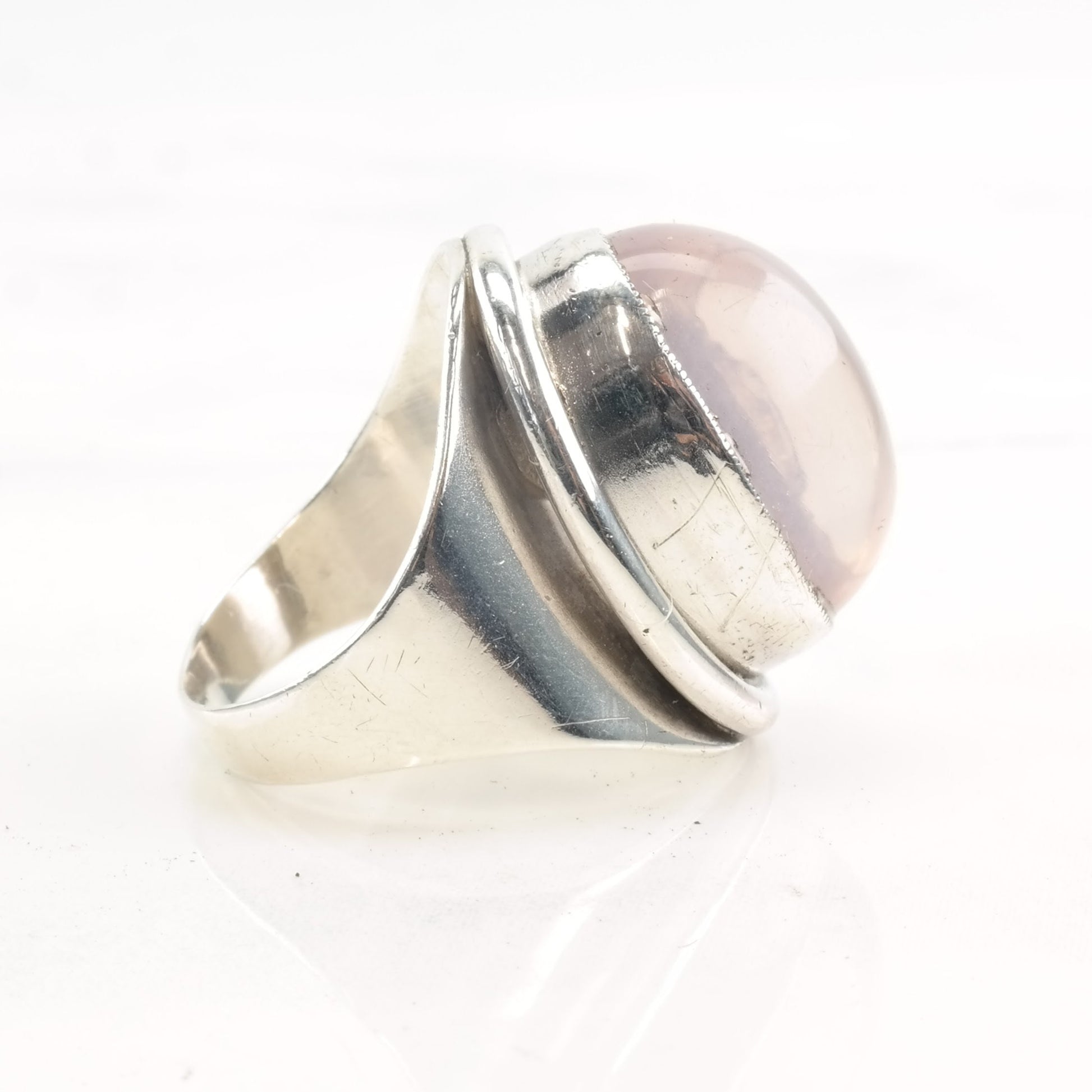 Vintage European Modernist Silver Ring Rose Quartz Size 6 3/4