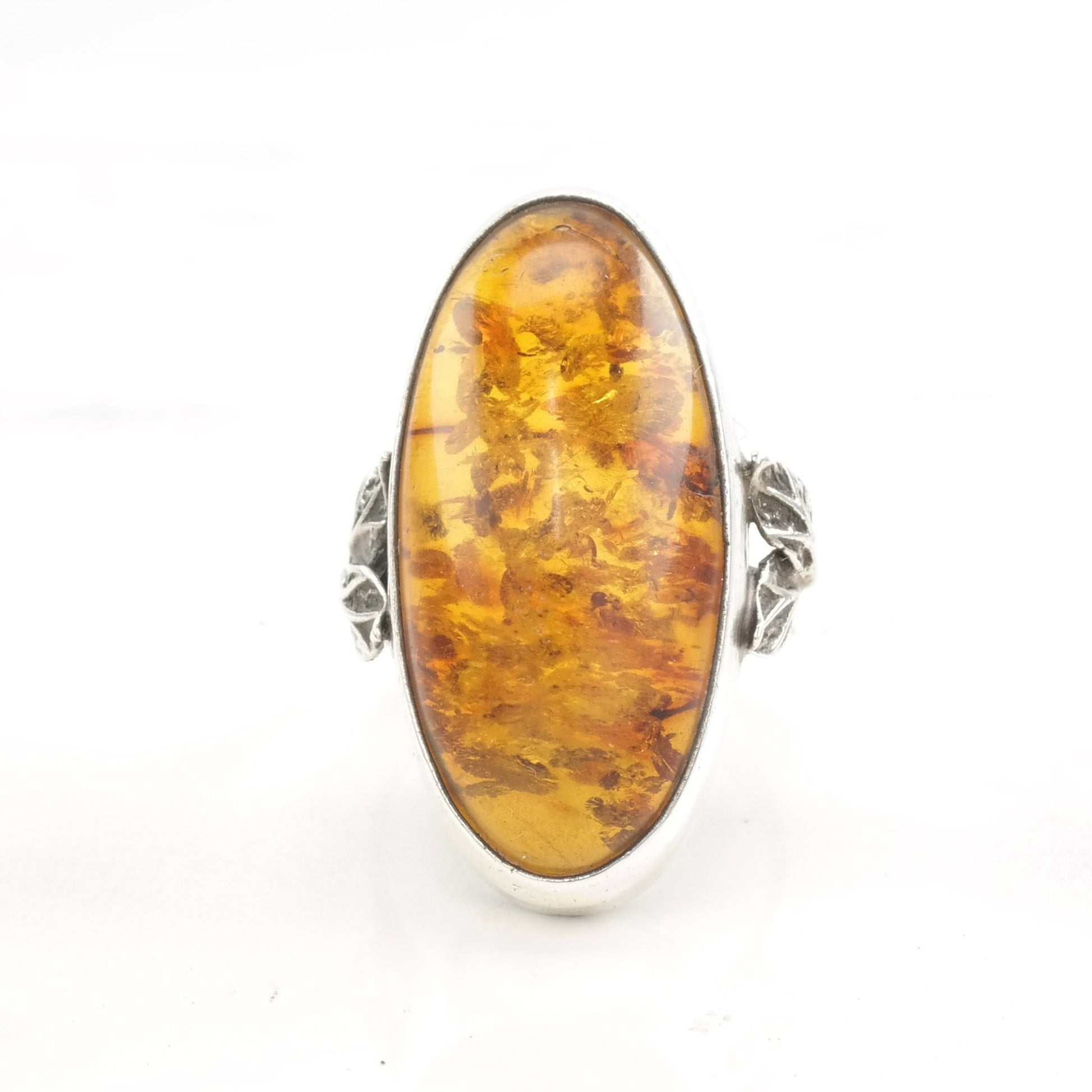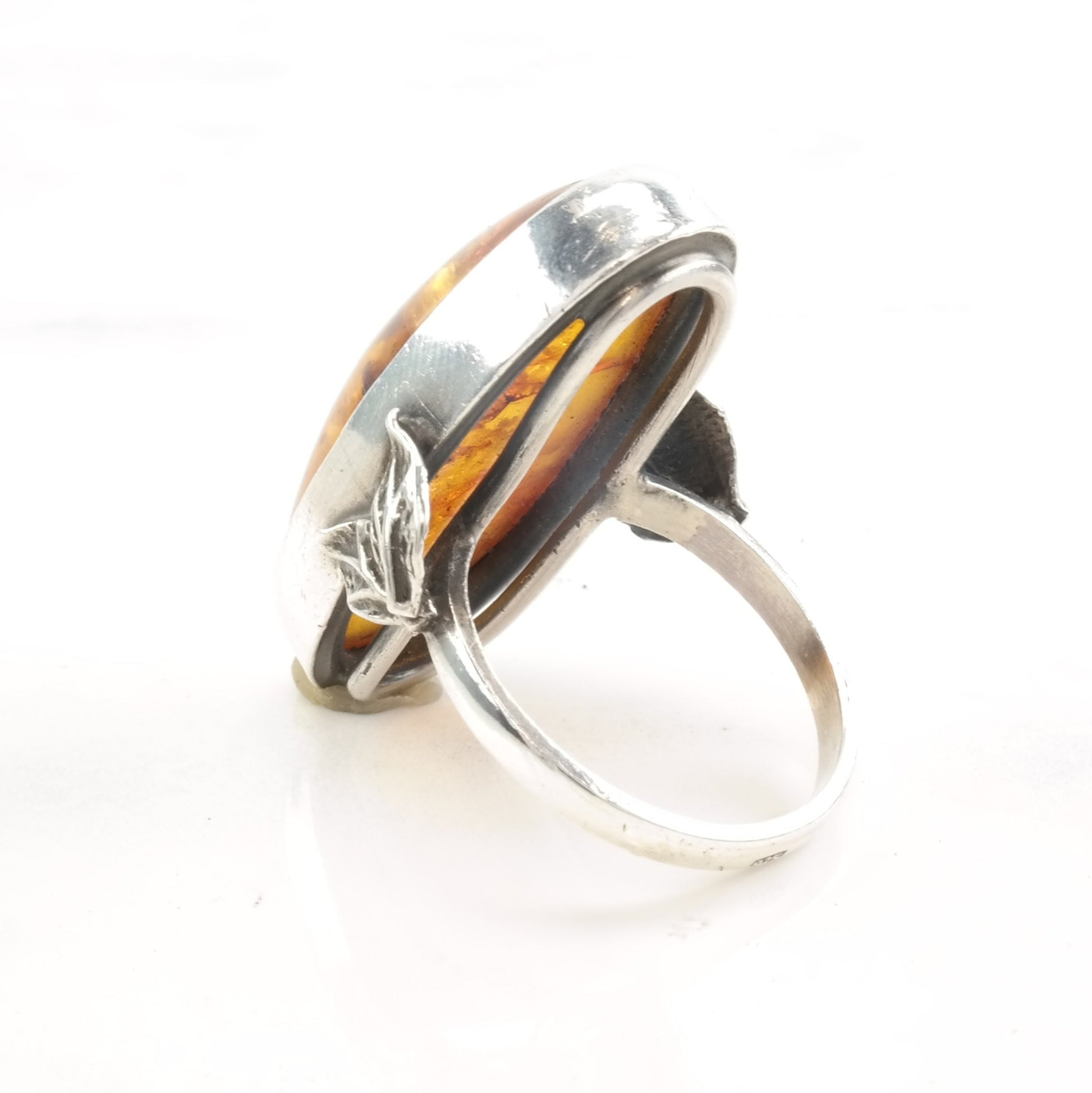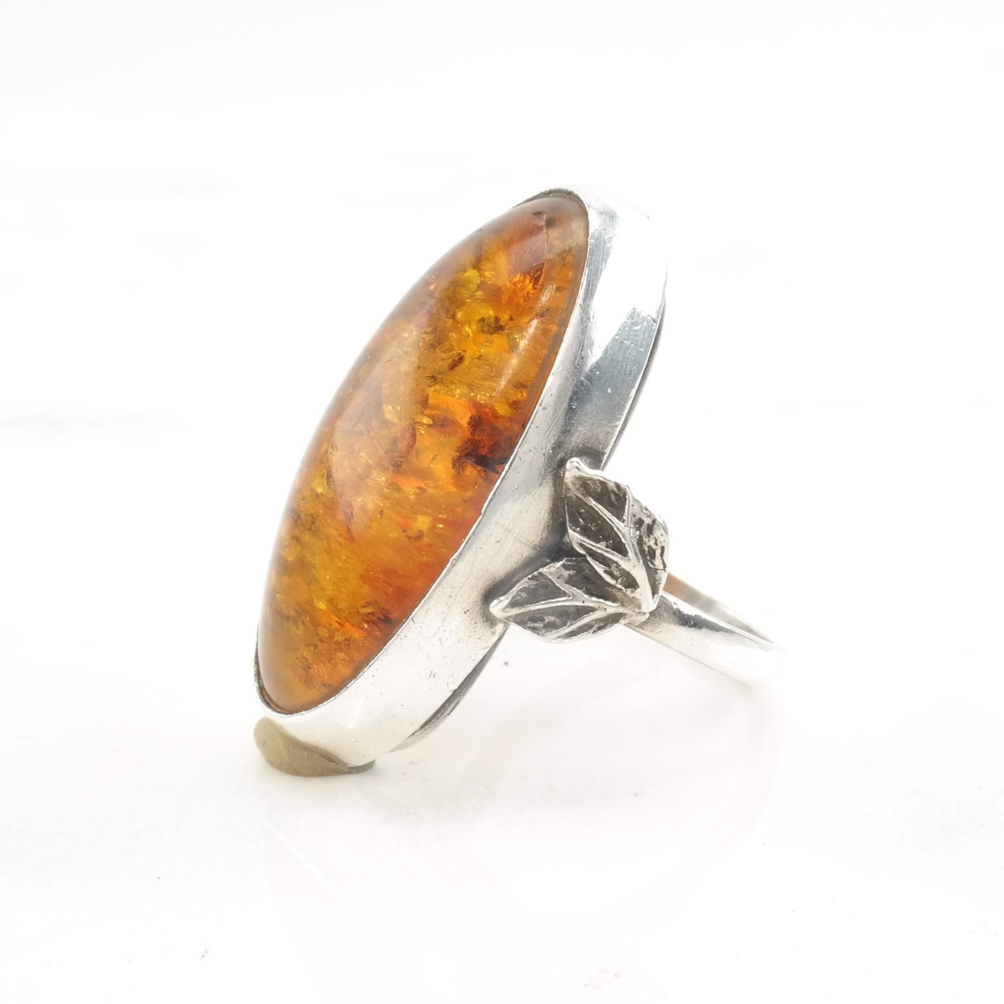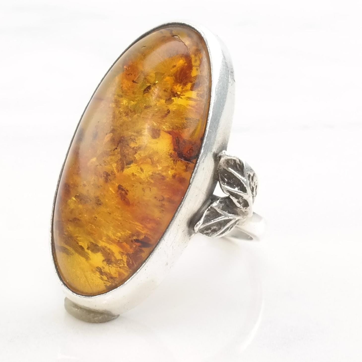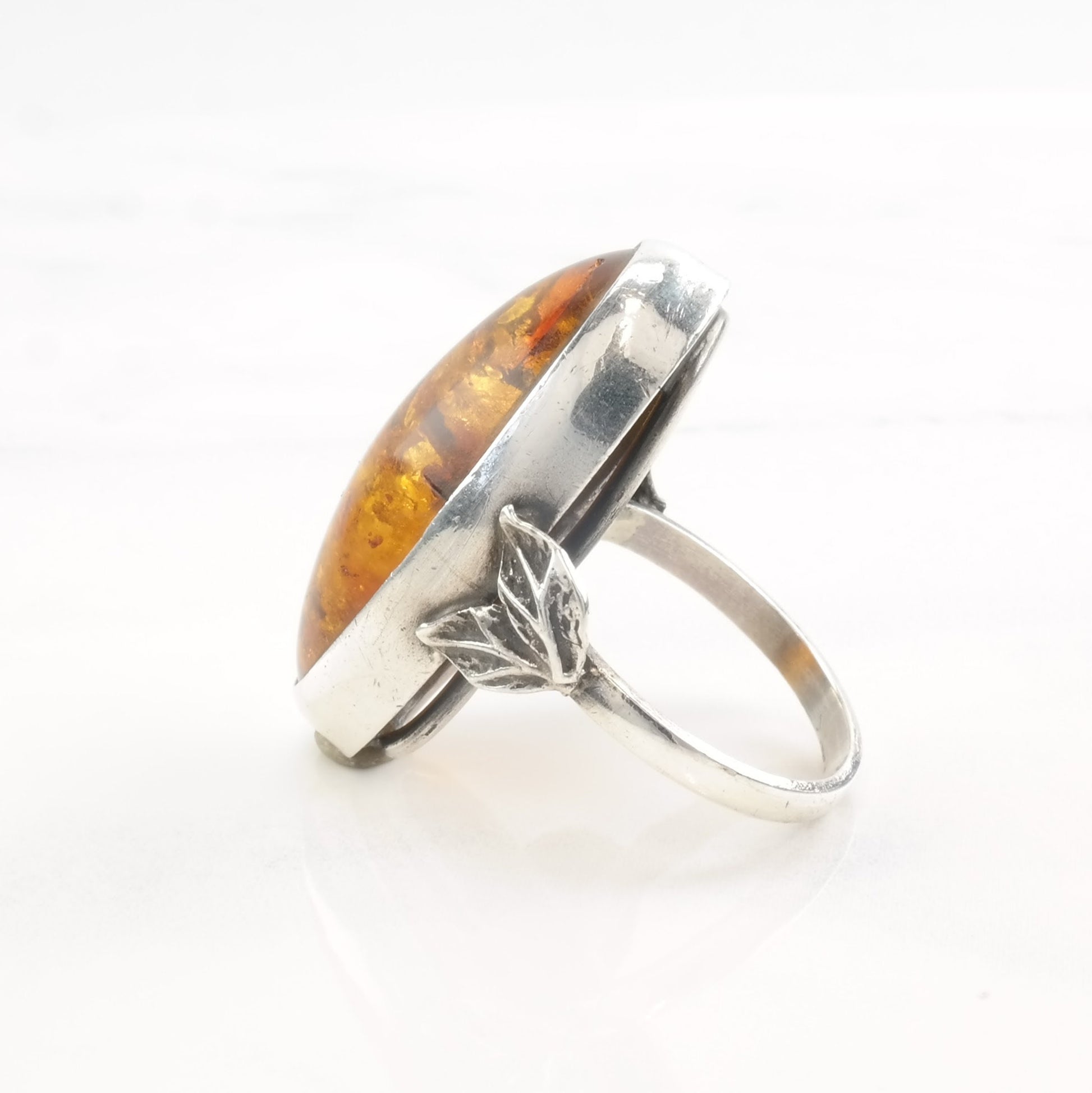 Vintage European Silver Ring Amber Leaf Size 8 1/2
