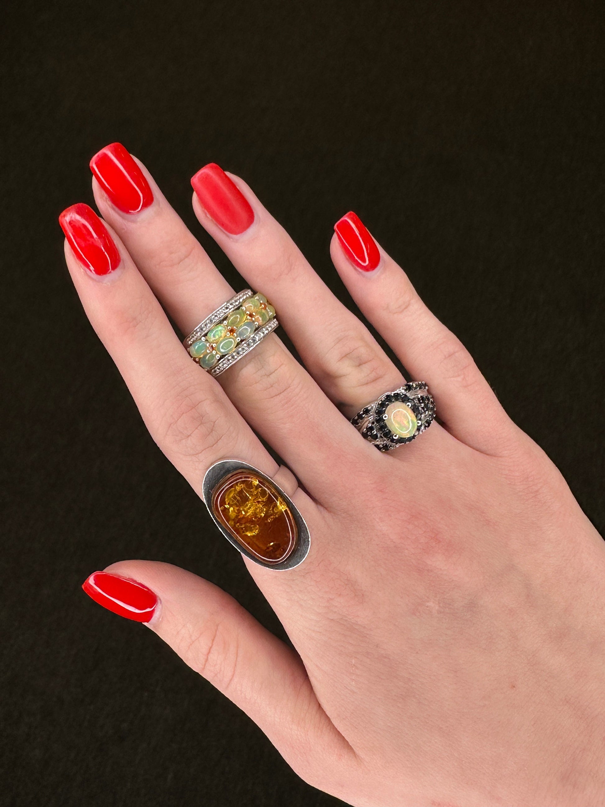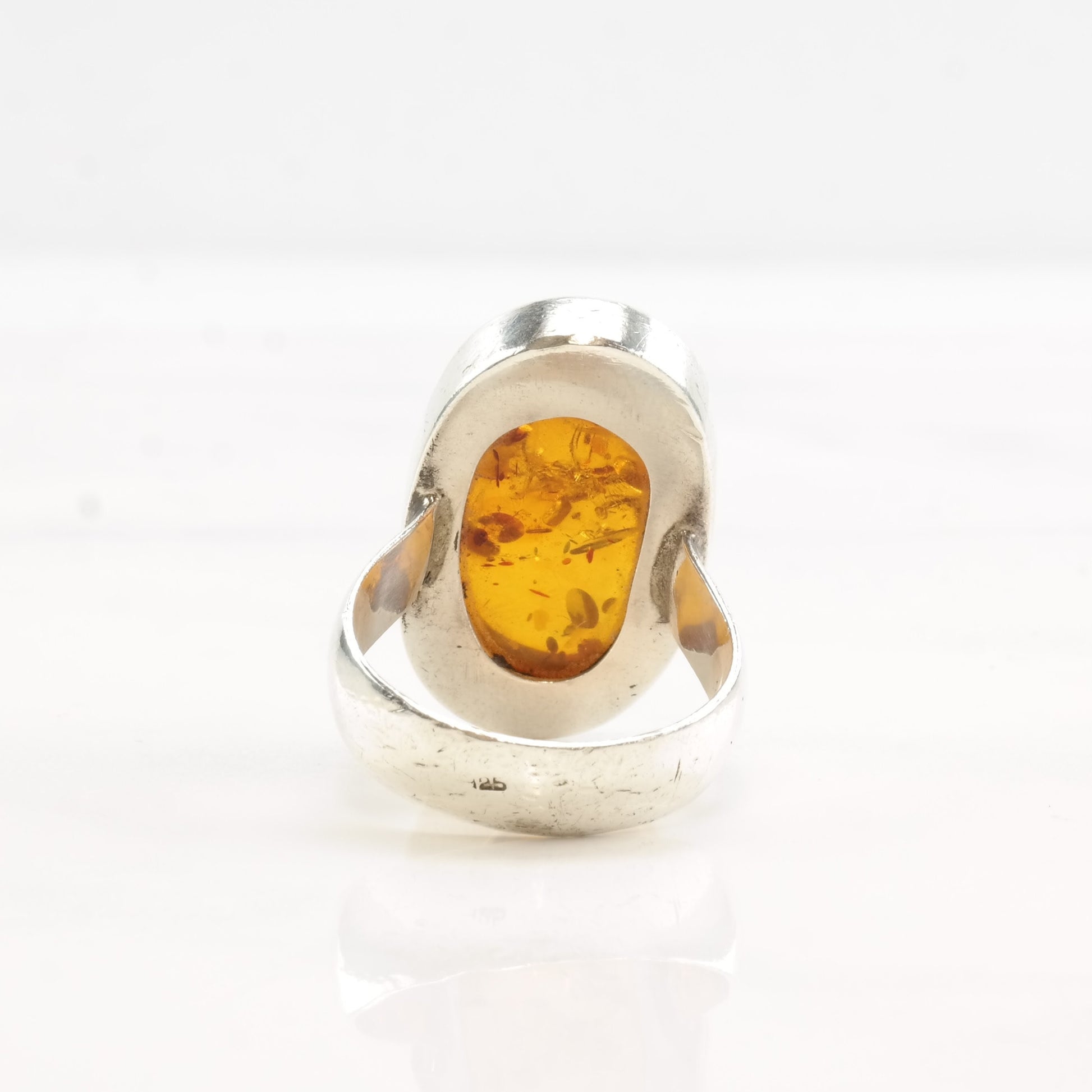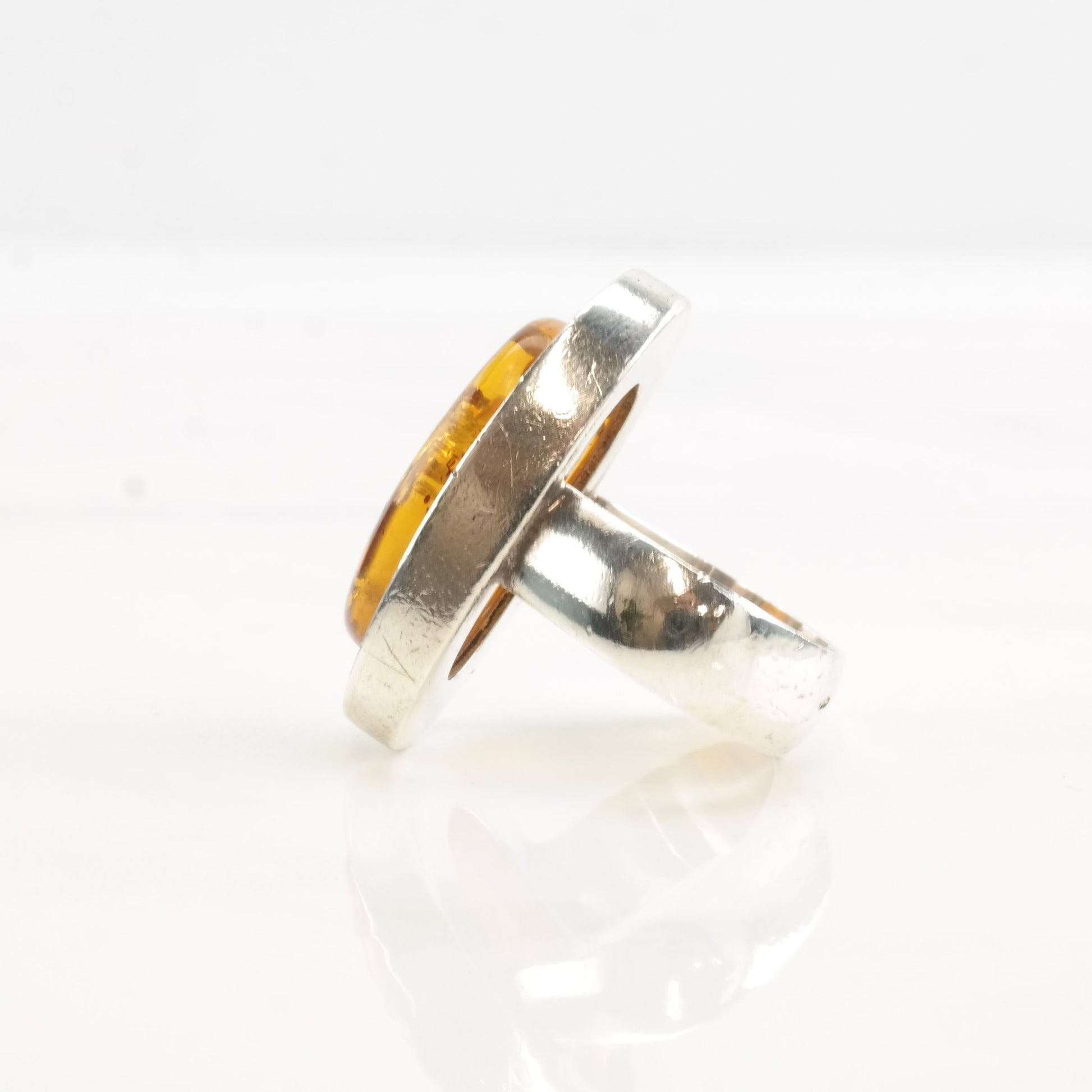 Vintage European Silver Ring Amber Oval Sterling Size 6 1/4