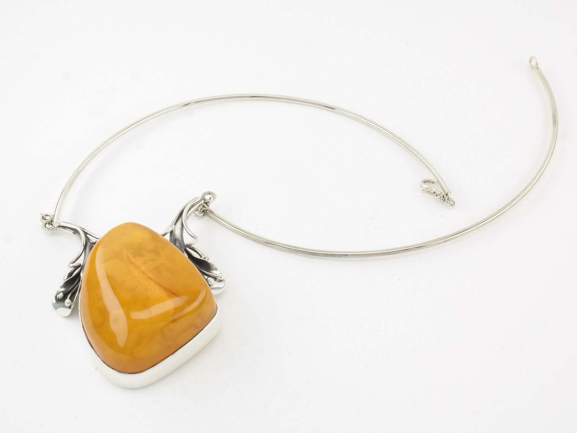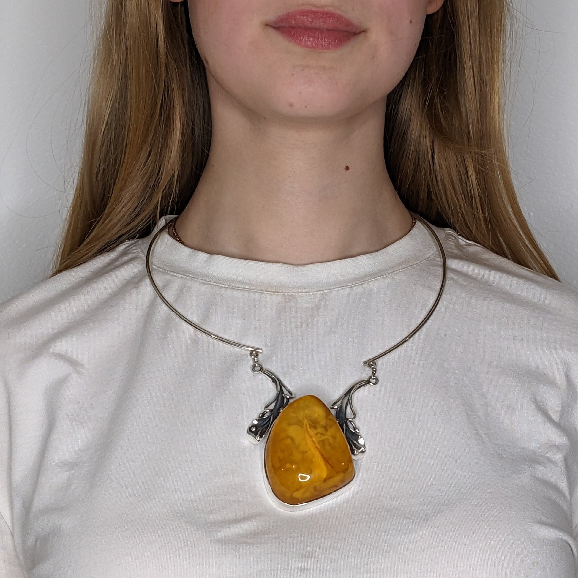 Vintage European Sterling Silver Yellow Amber Floral Necklace Choker