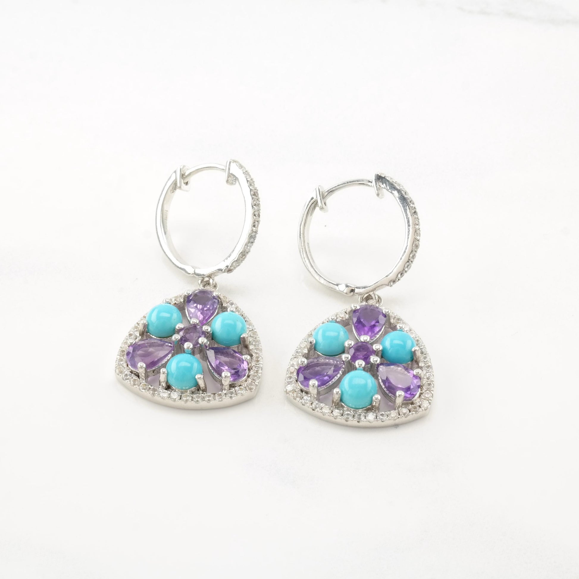 The Stone/Theme is White, Purple, Blue Spinel, Turquoise, Amethyst Floral Natural, industry standard treatment if any