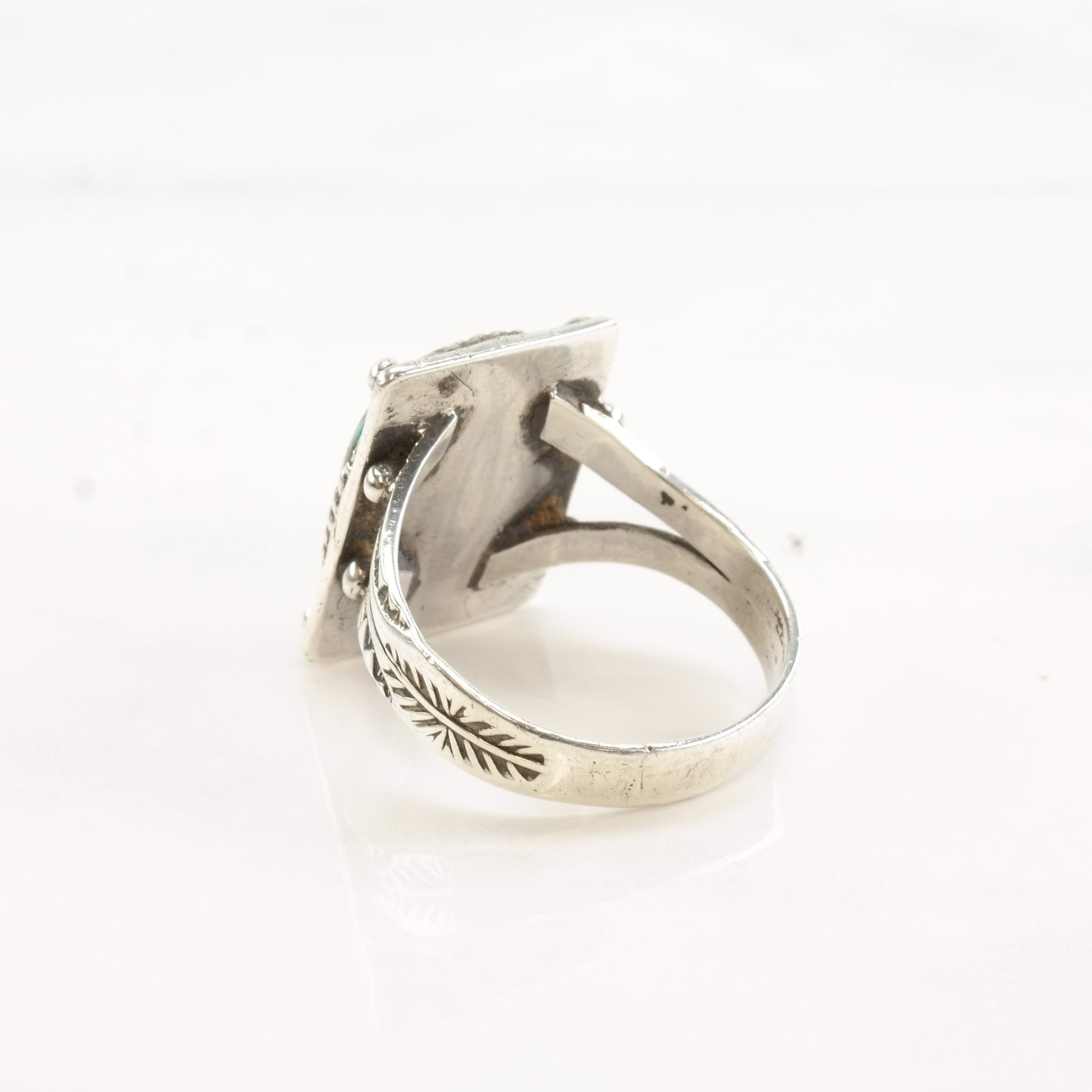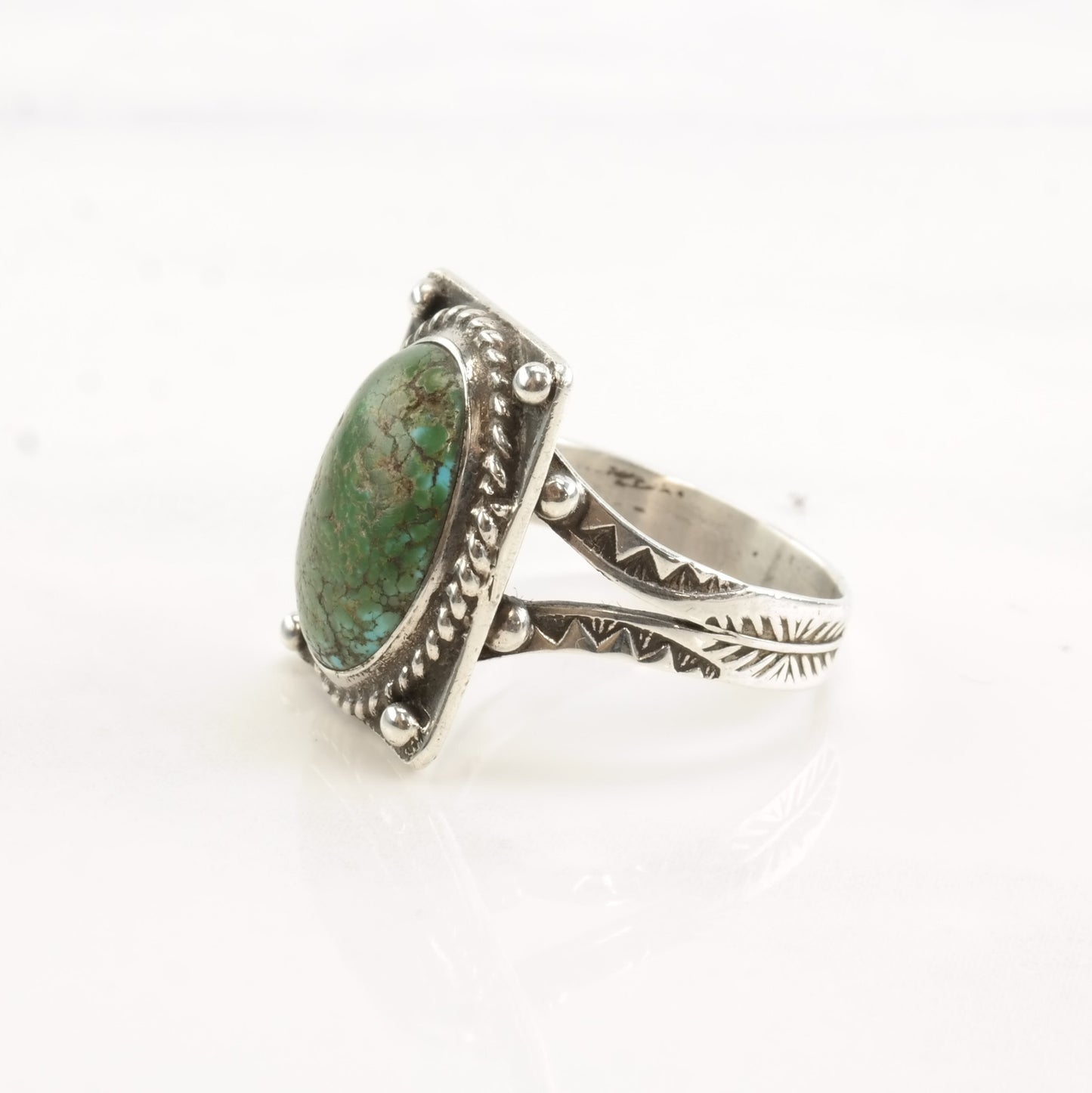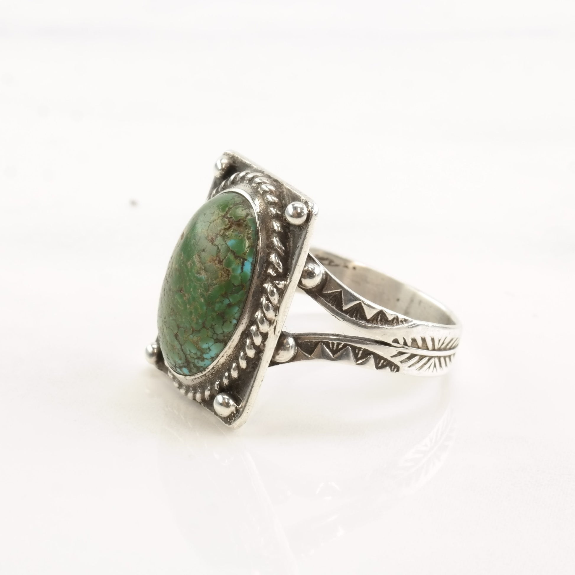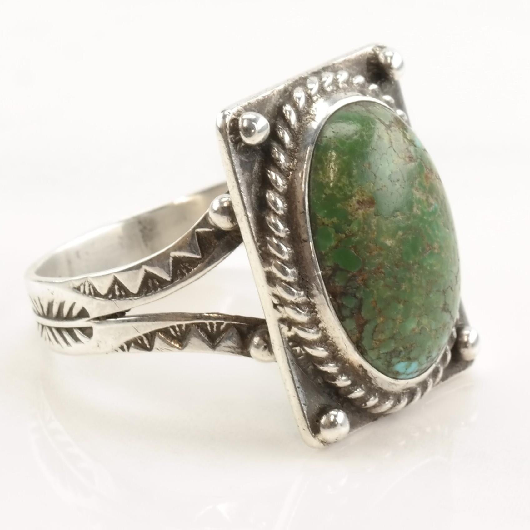 Vintage Fred Harvey Era Silver Ring Cerrillos Turquoise Oval Sterling Size 9 1/2