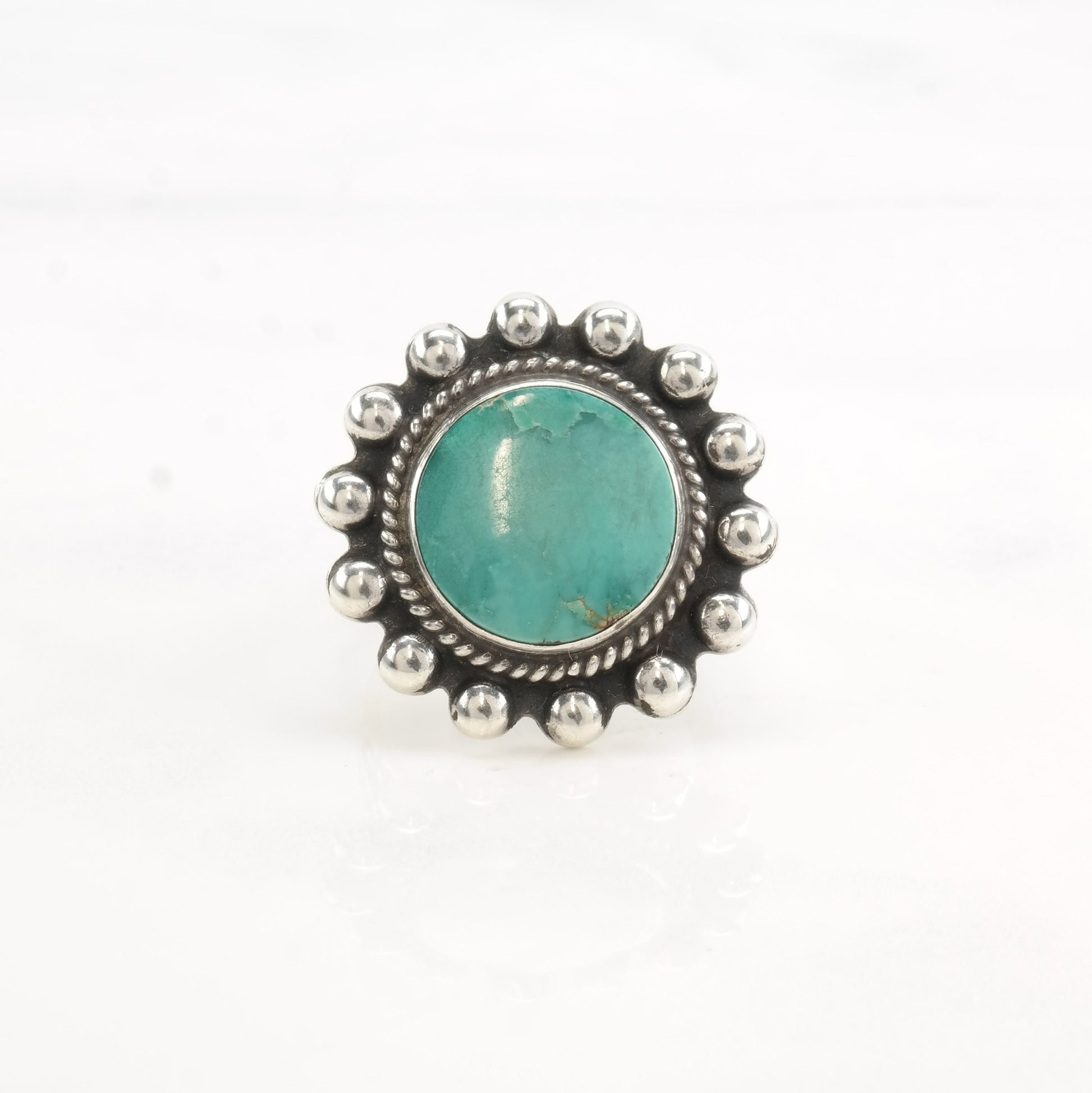 Vintage Fred Harvey Era Silver Ring Turquoise Circle Sterling Size 6 3/4