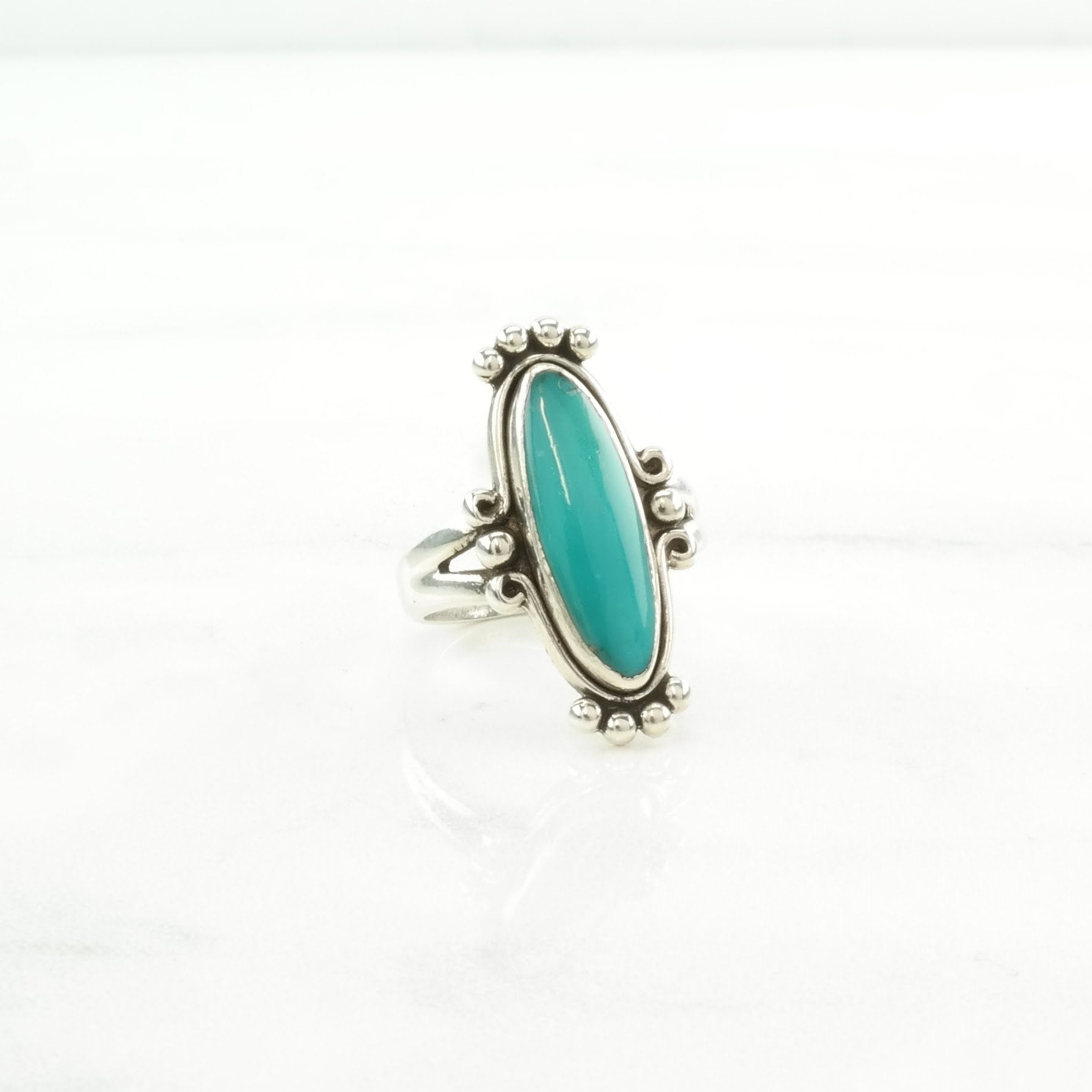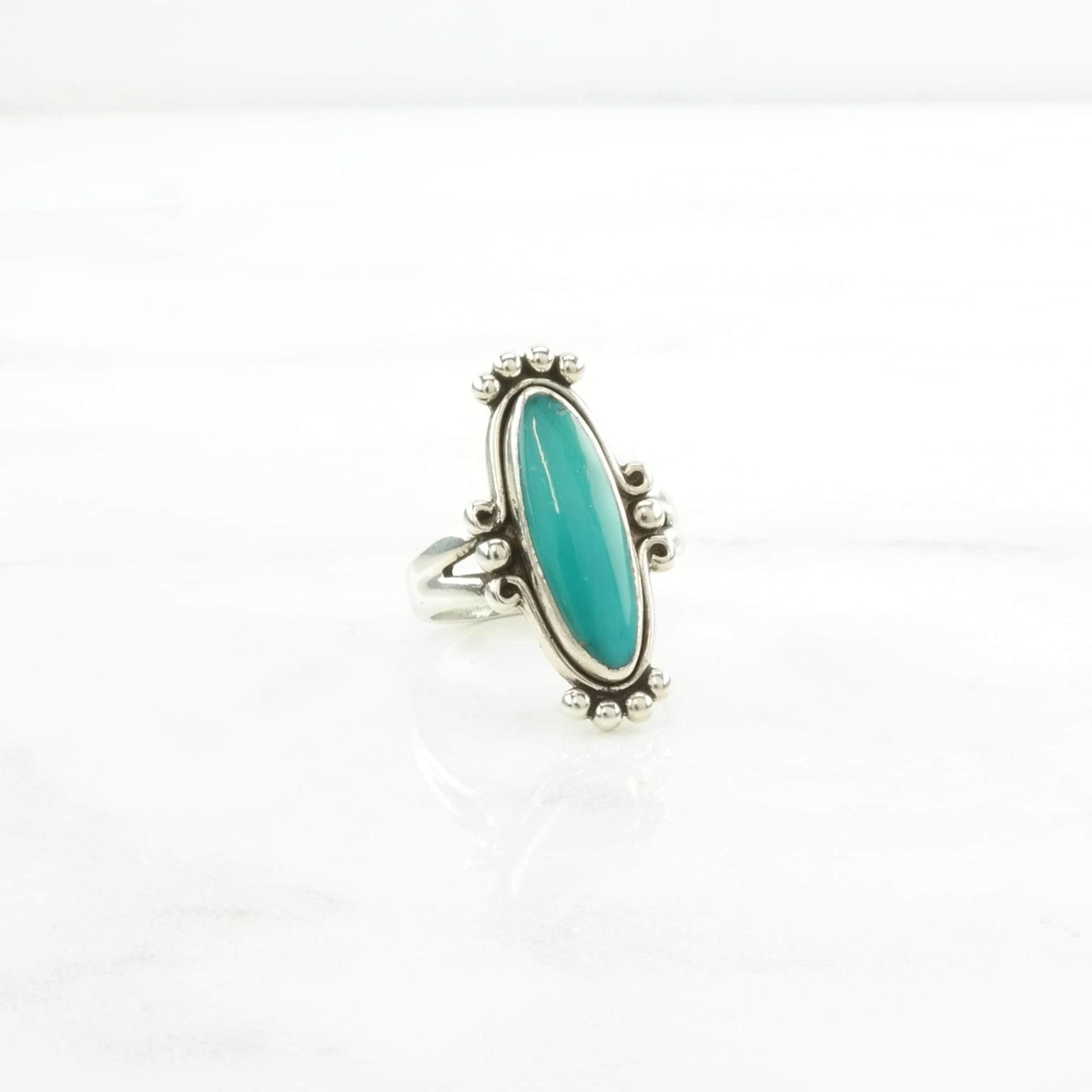 Vintage Fred Harvey Era Silver Ring Turquoise Navette Sterling Blue Size 5