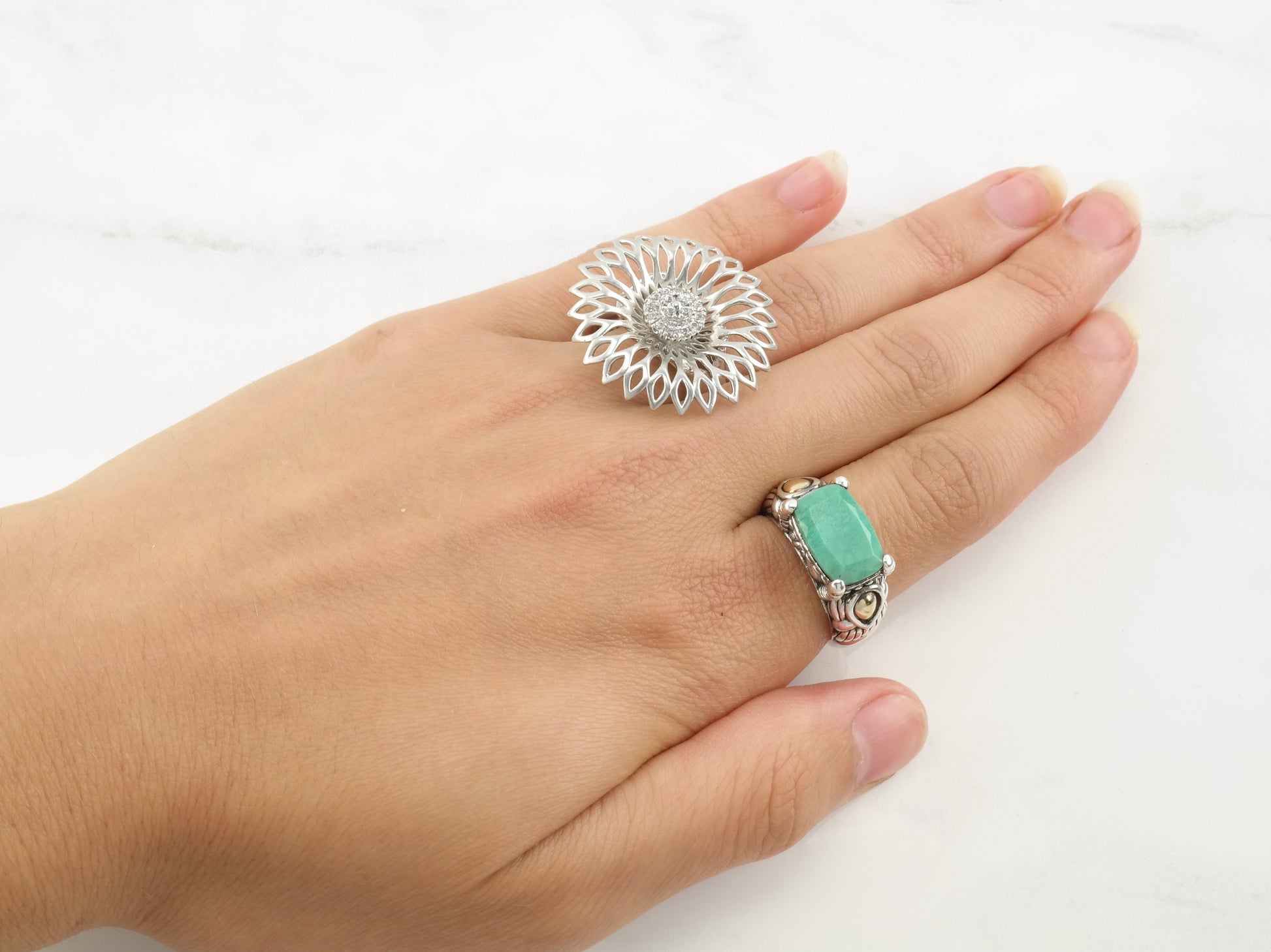 Vintage Gabriel & Co. Silver Ring White Topaz Flower Sterling Size 7