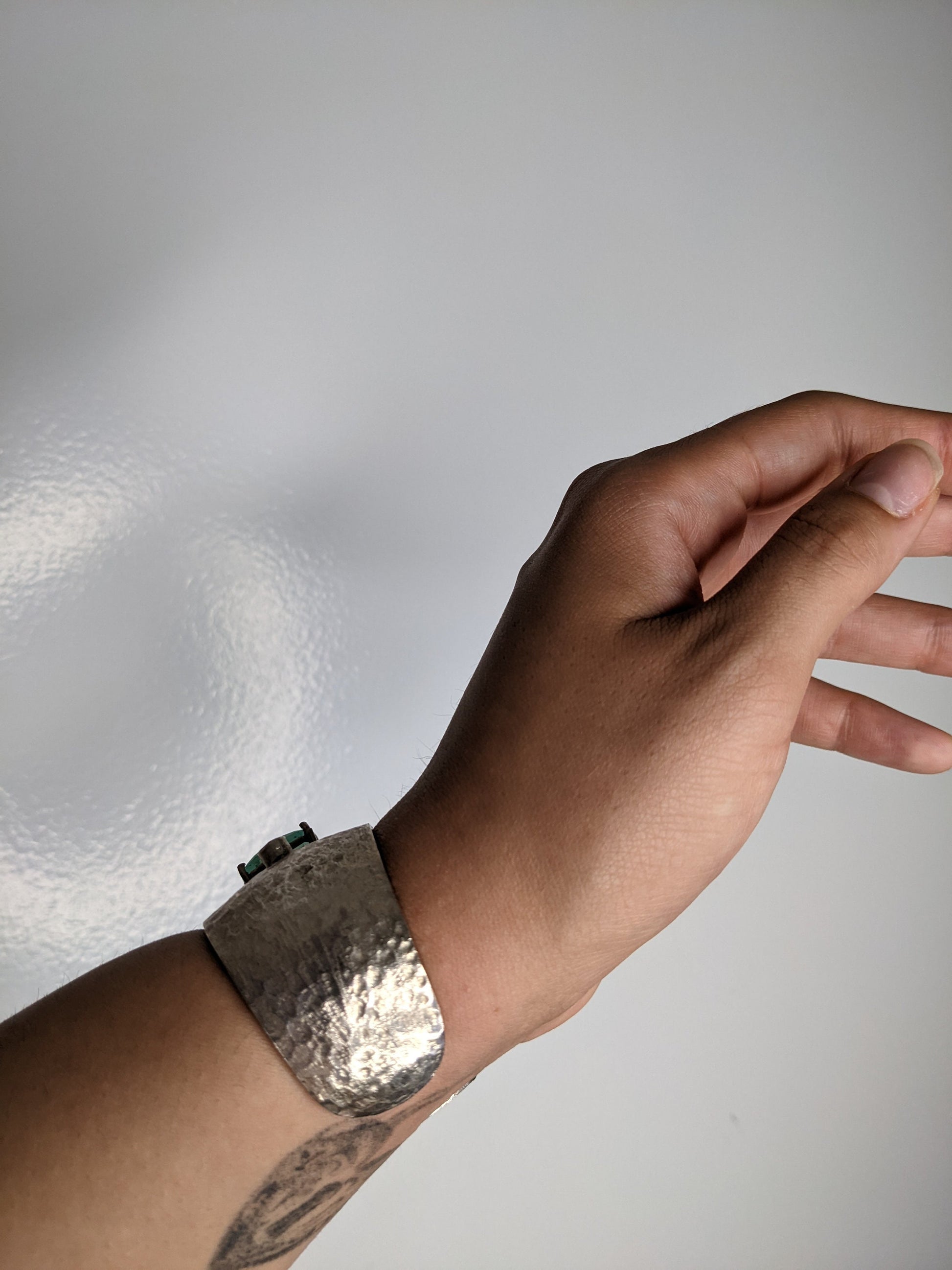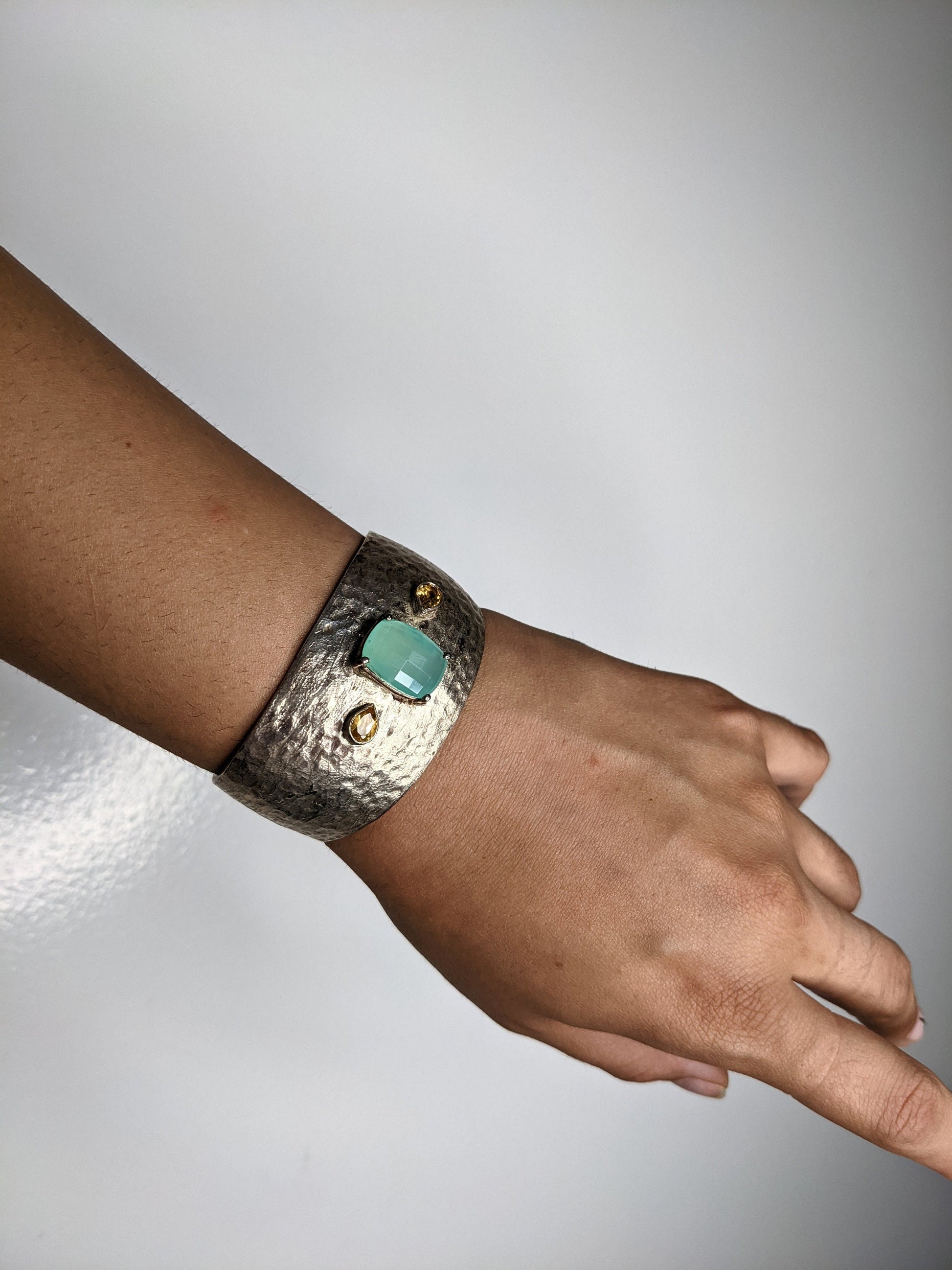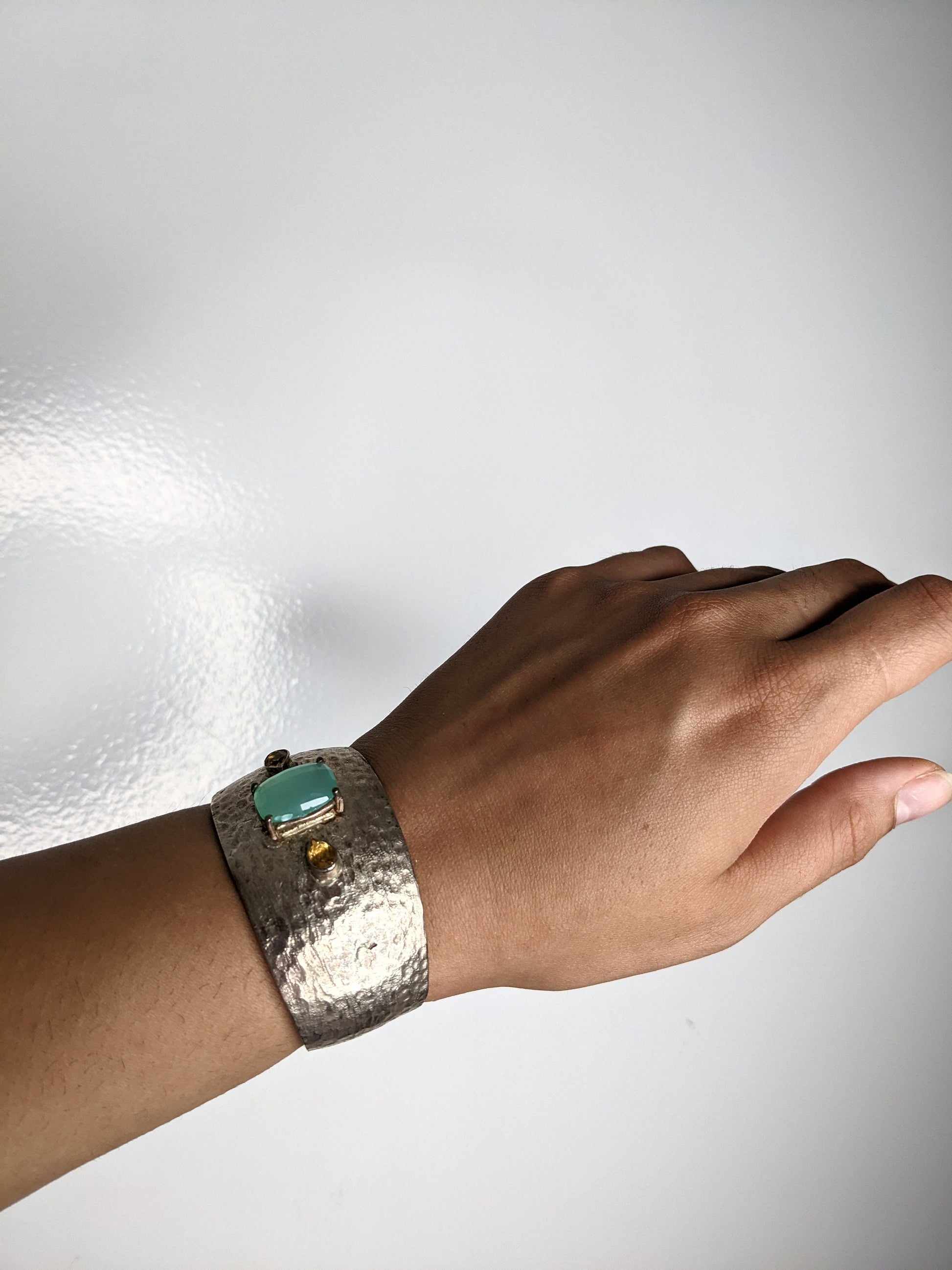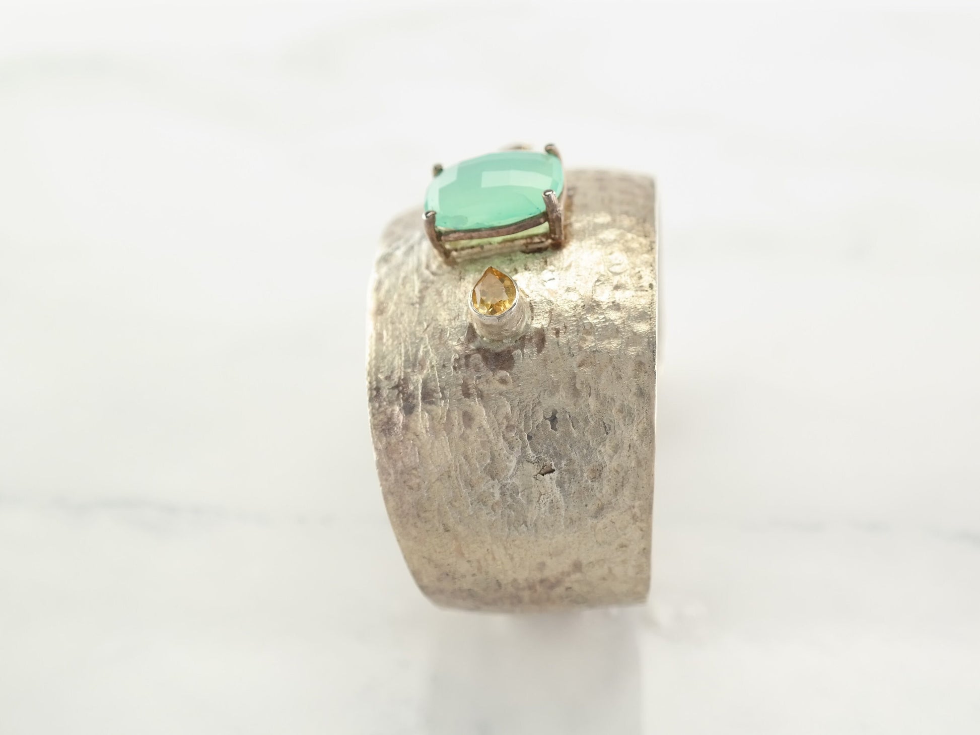 Vintage Hammered Sterling Silver Cuff with Citrine and Chalcedony